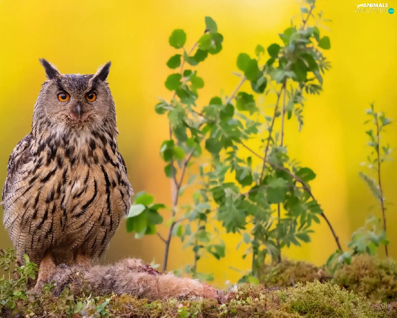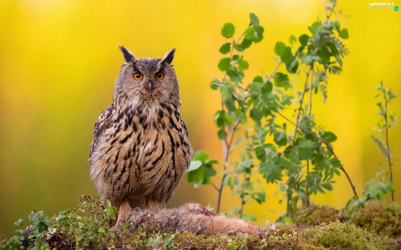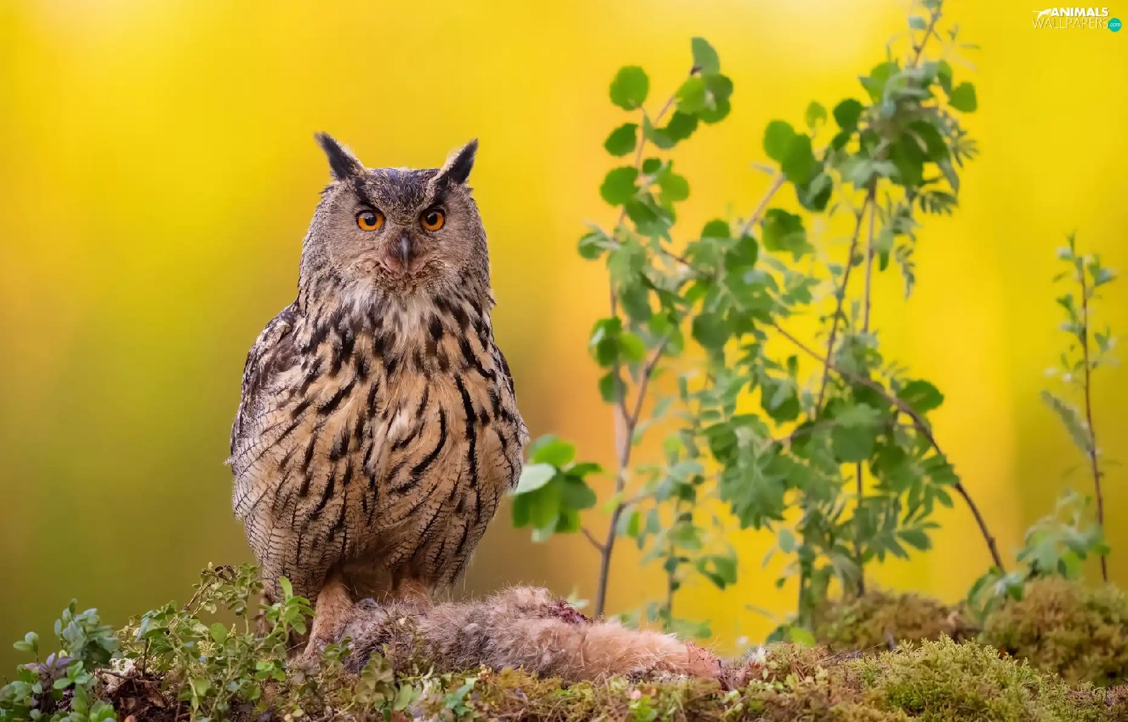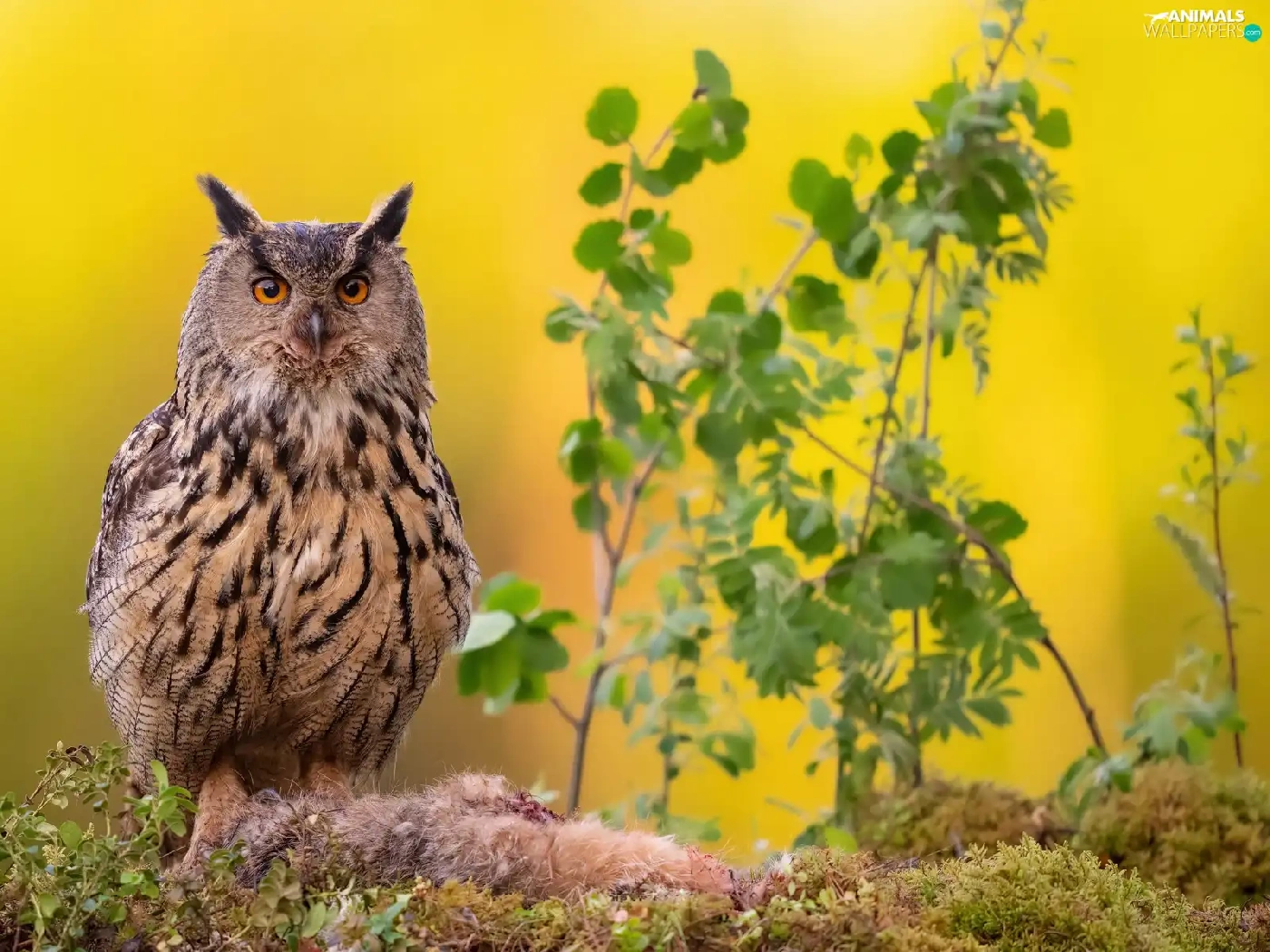 Bird, Eurasian Eagle-Owl, Plants, owl