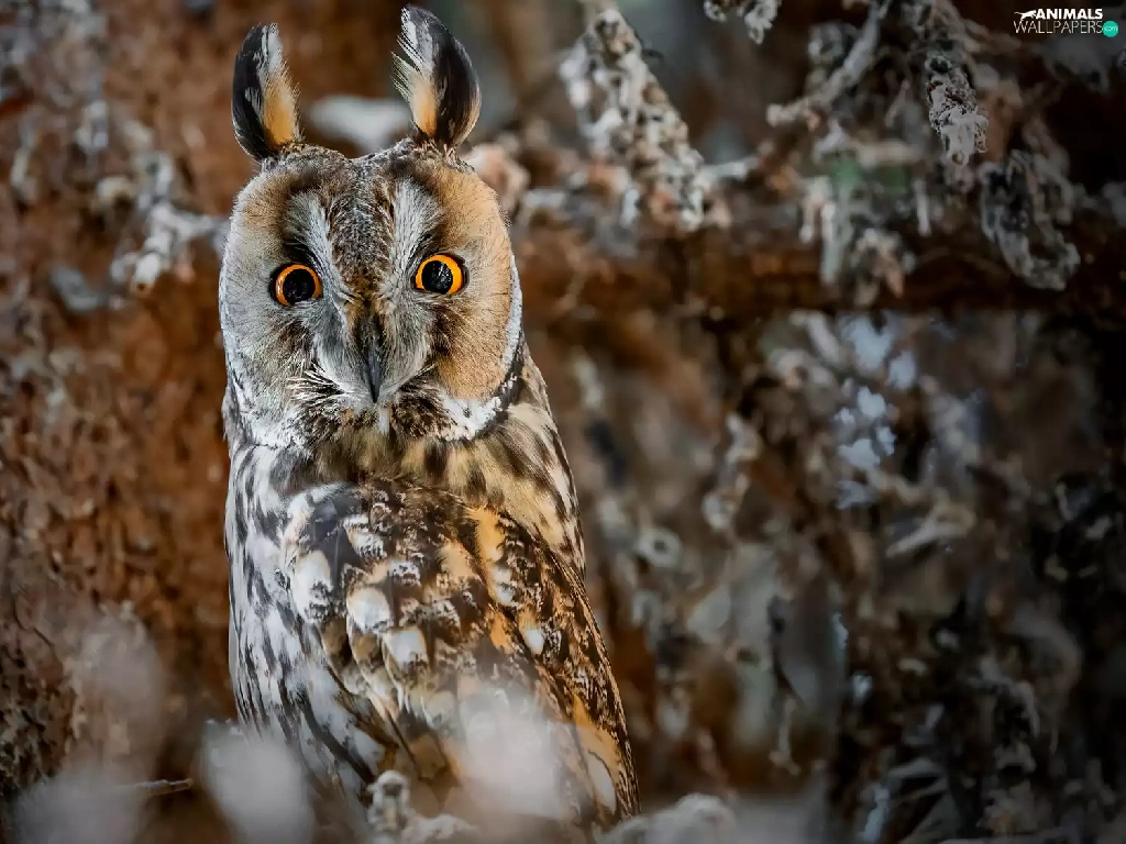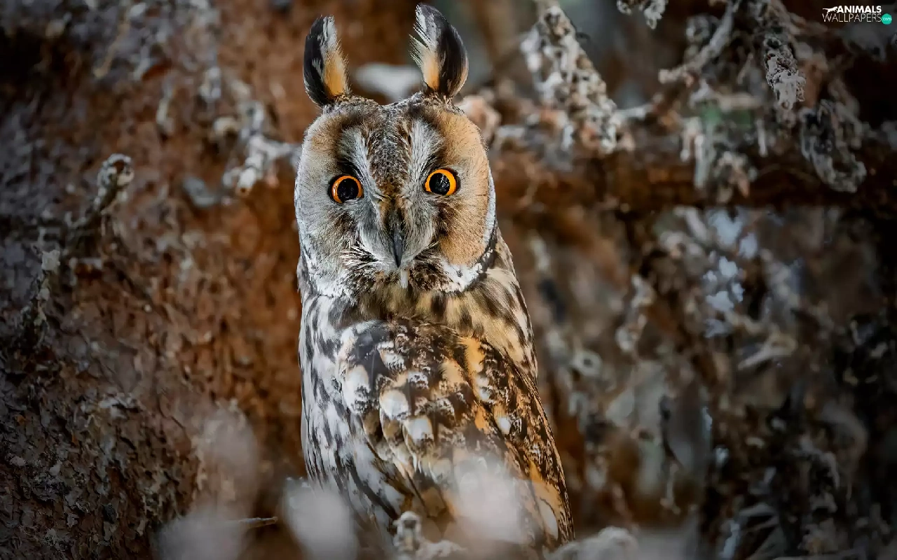 Bird, Long-eared Owl, trees, owl