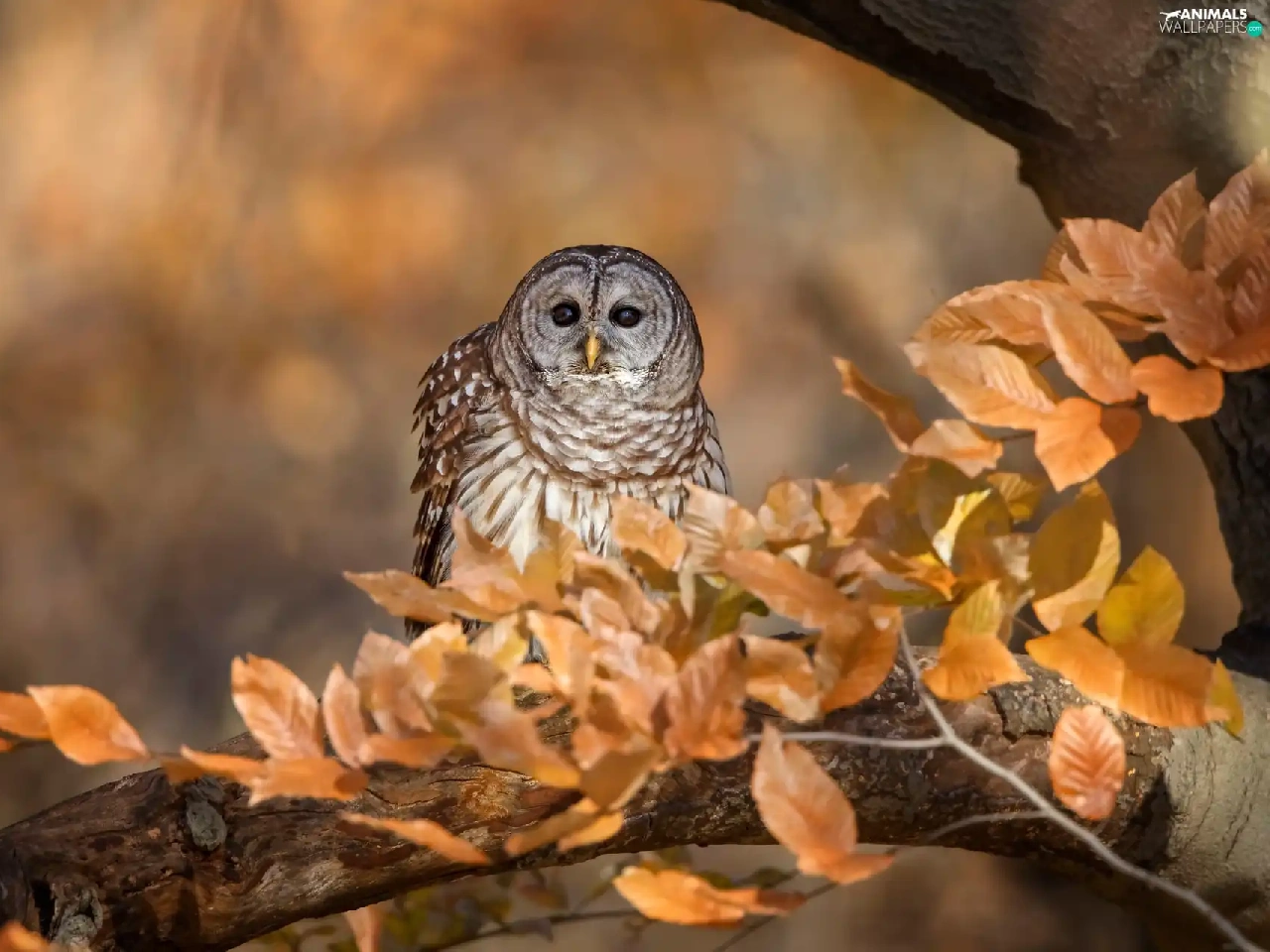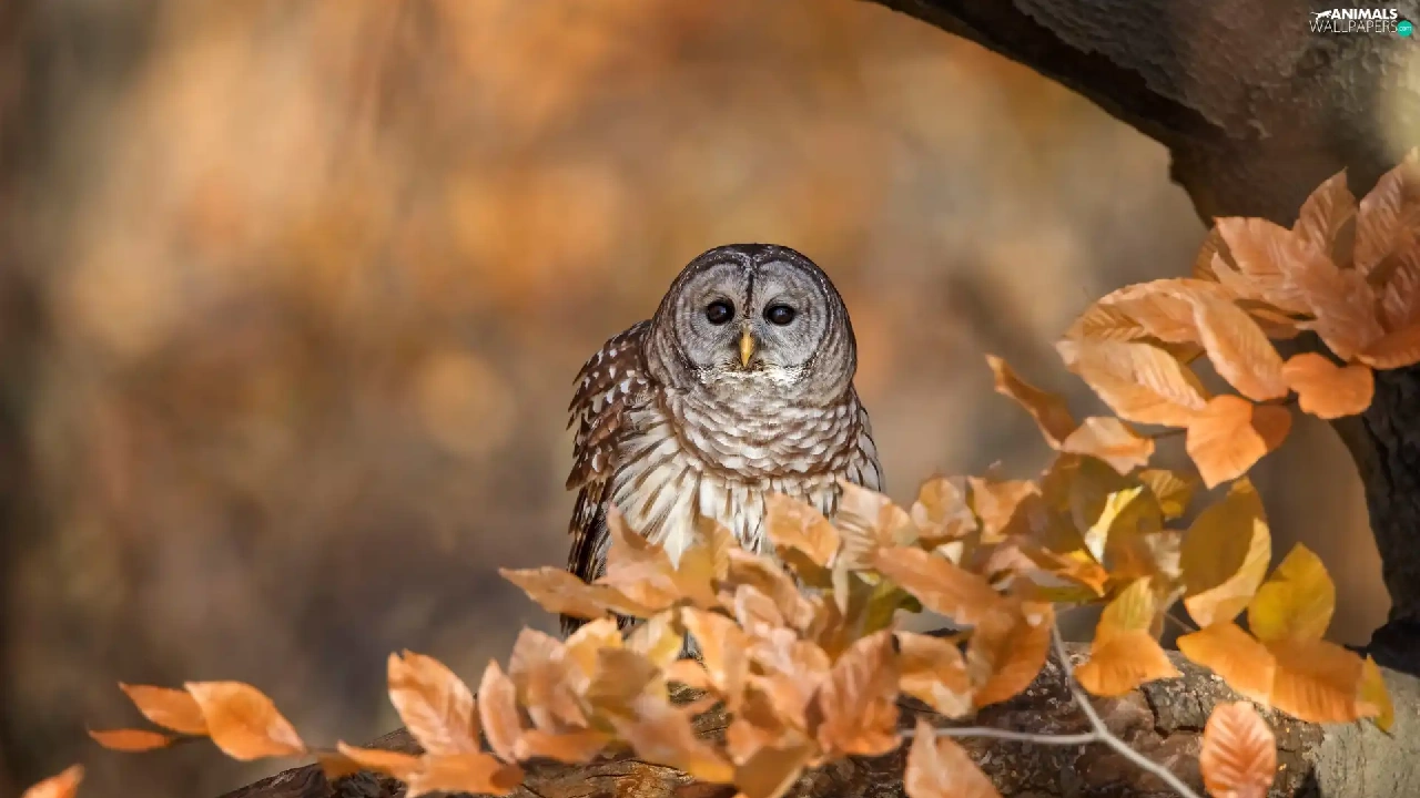 owl, branch, Leaf, Owl