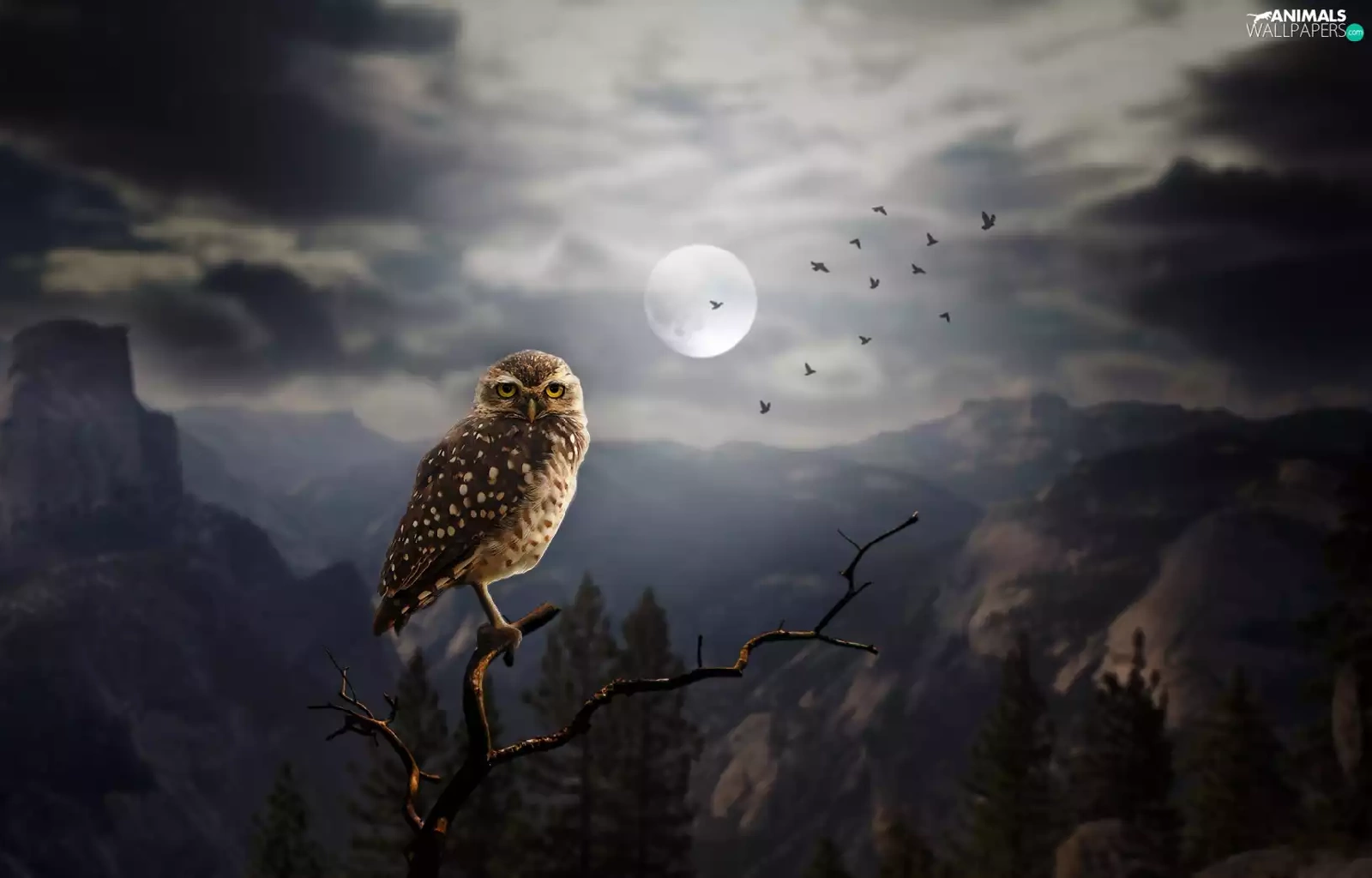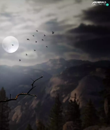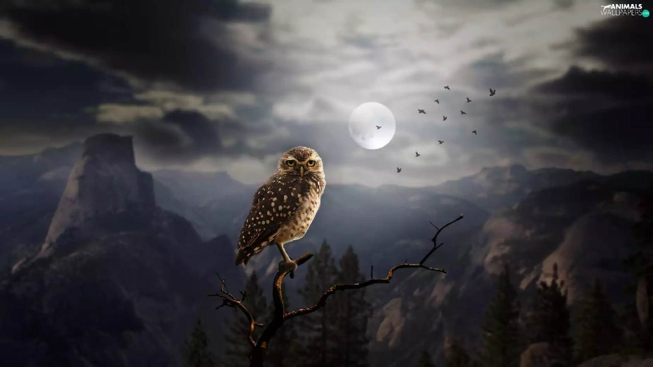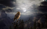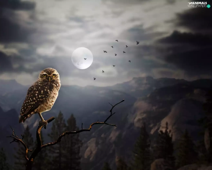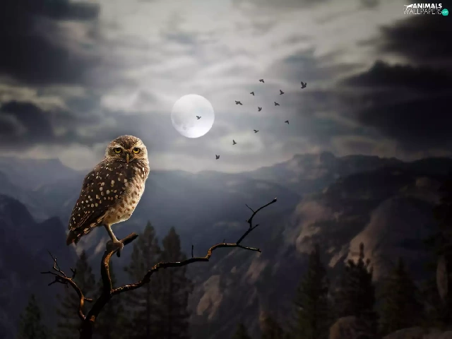 moon, Mountains, Little Owl, Night, owl