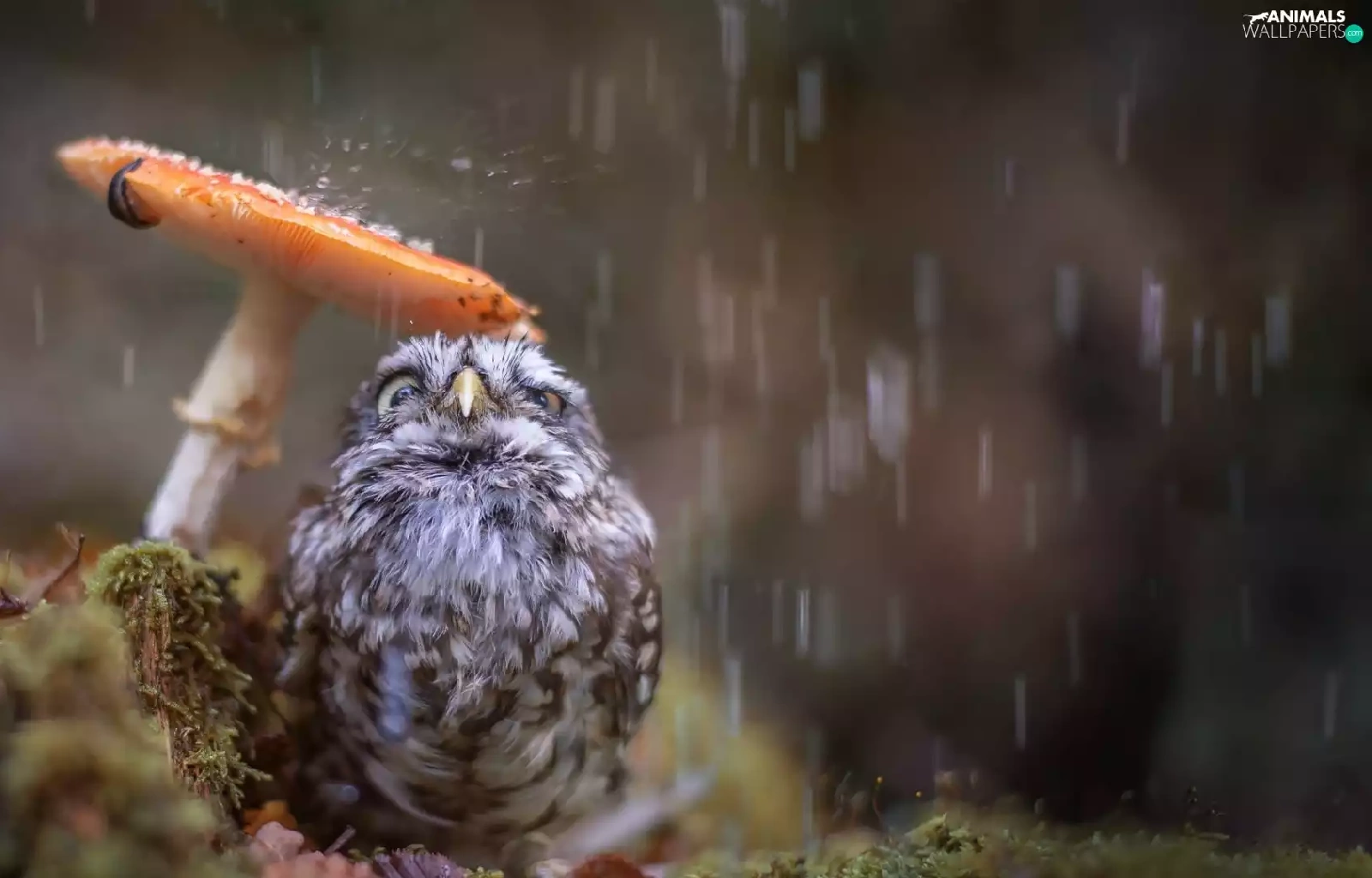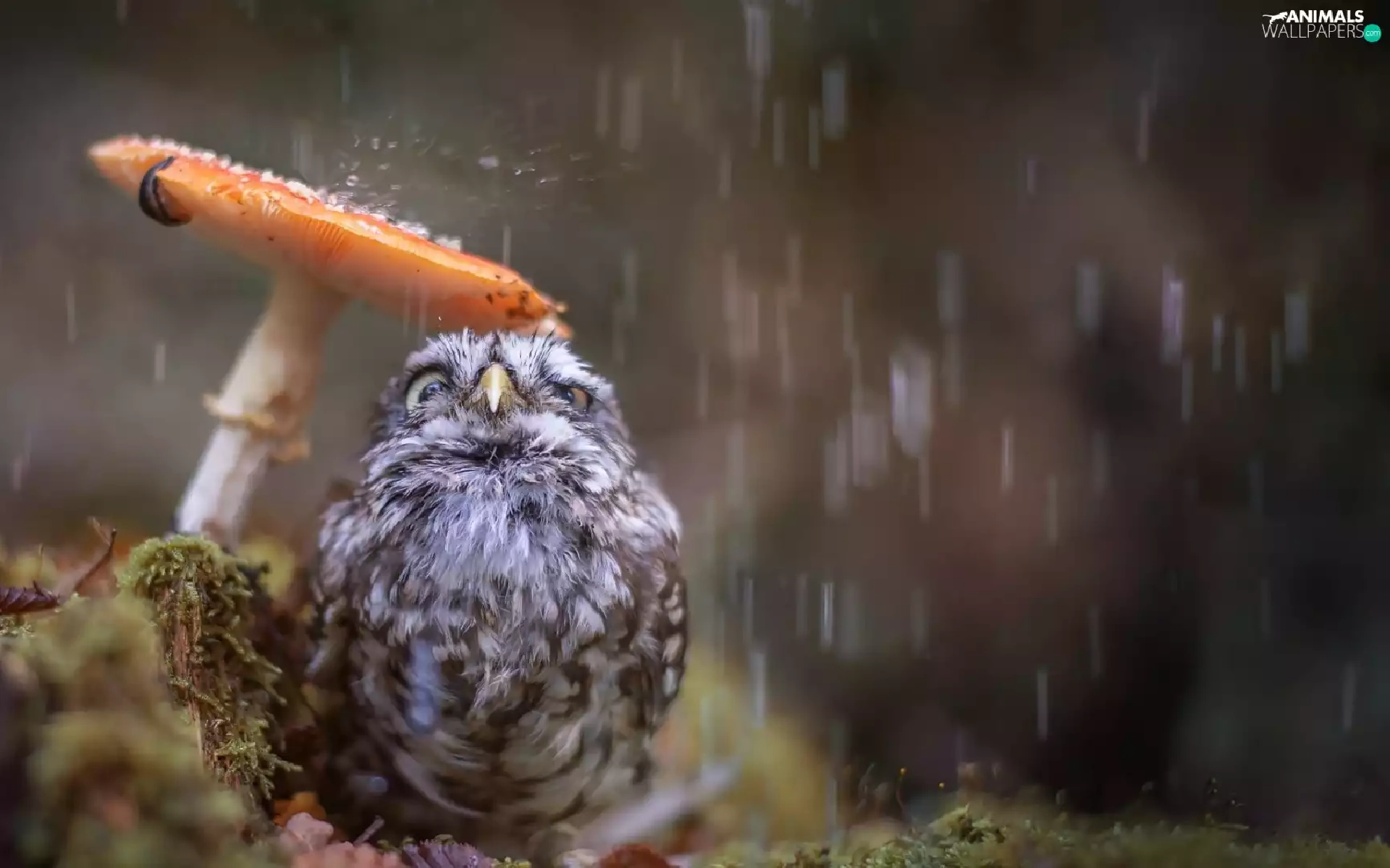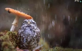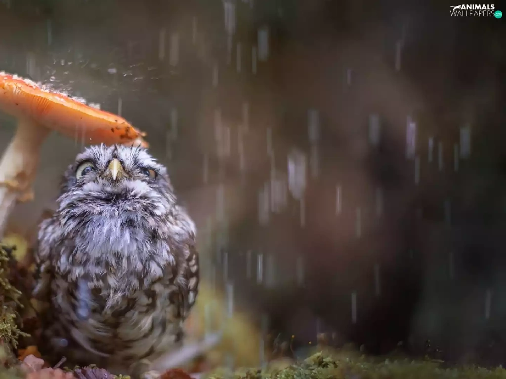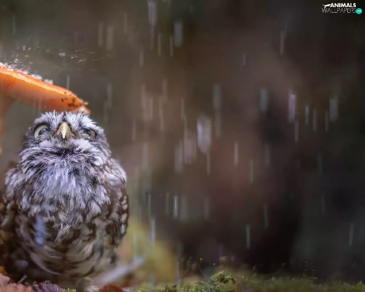 Rain, owl, Mushrooms, owl