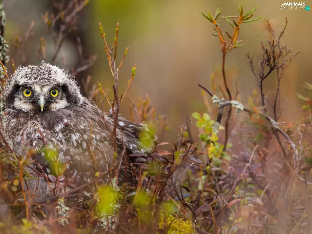 owl, trees