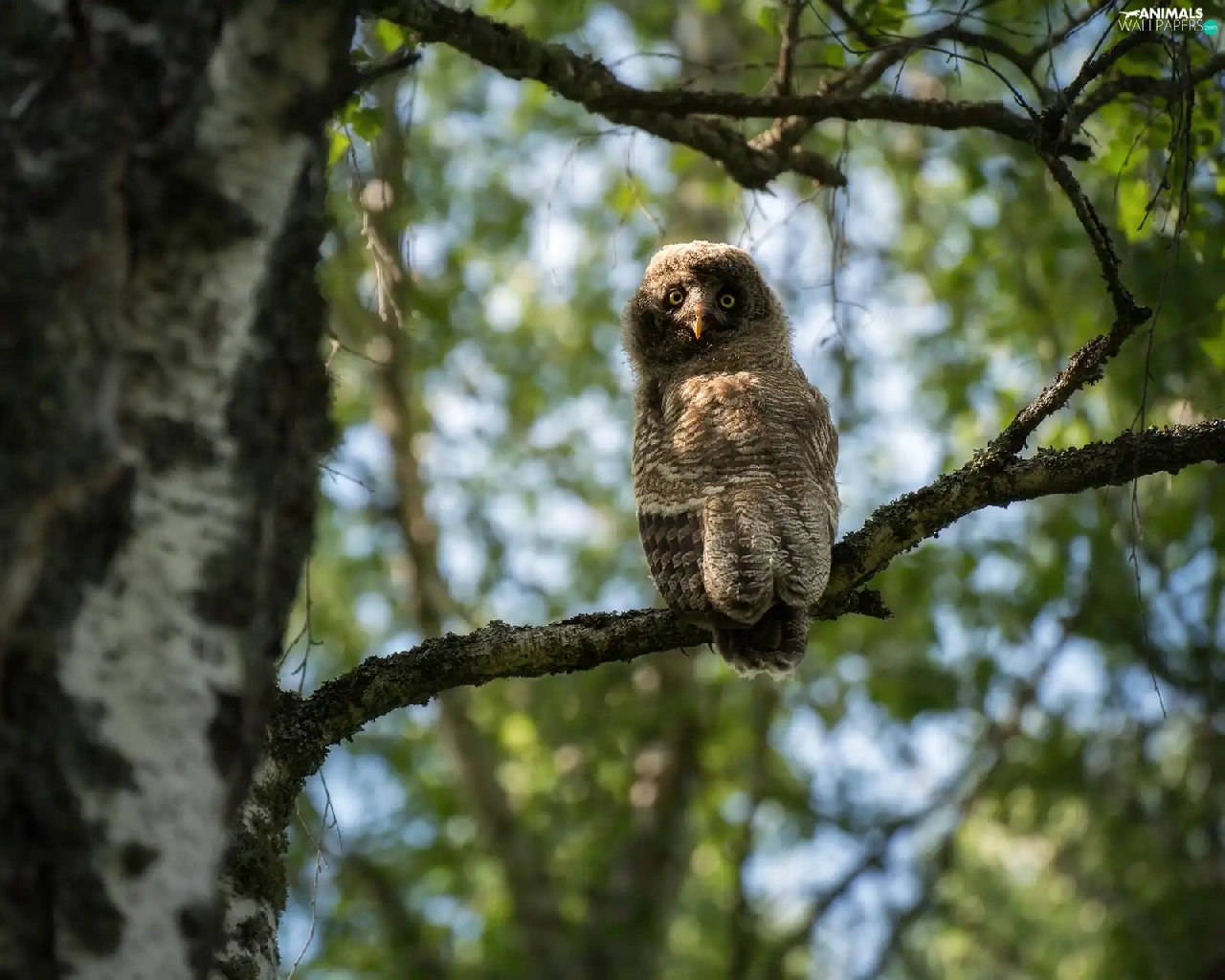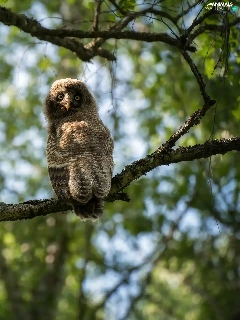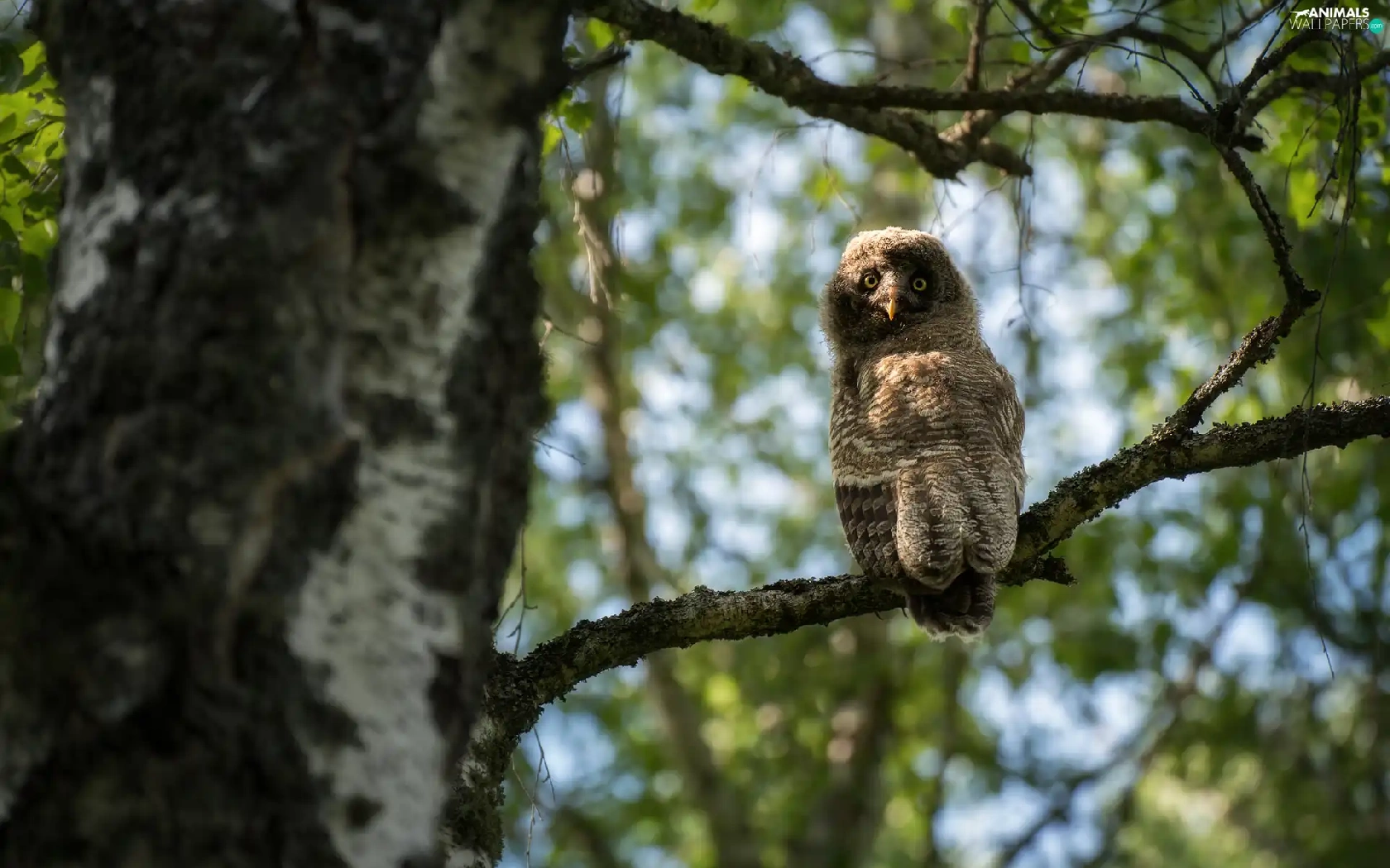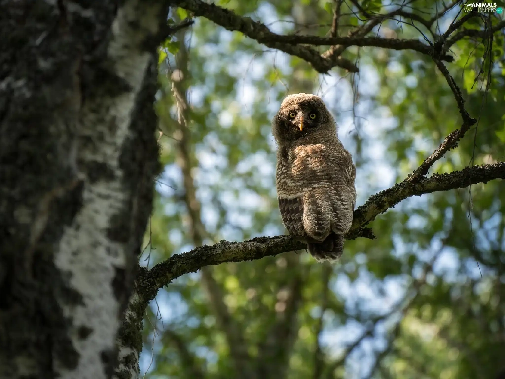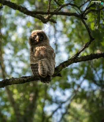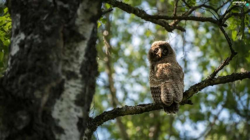 owl, trees, twig, Tawny owl great gray owl