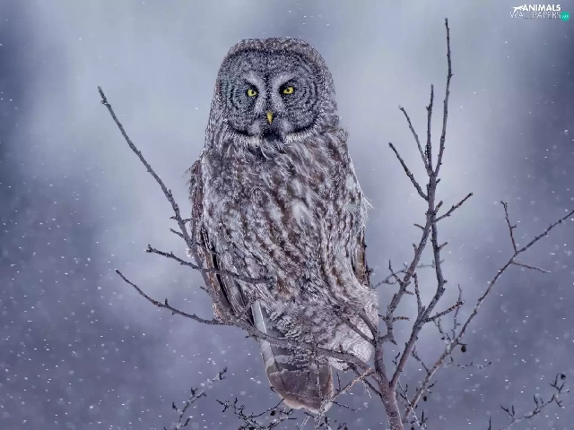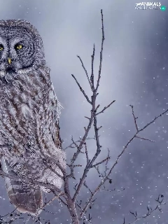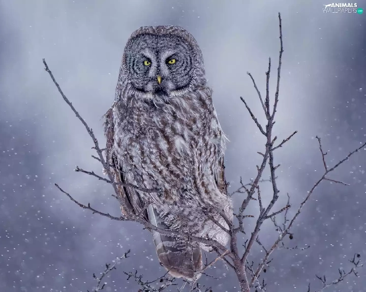 owl, Bird, Twigs, Tawny owl great gray owl