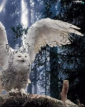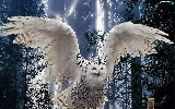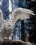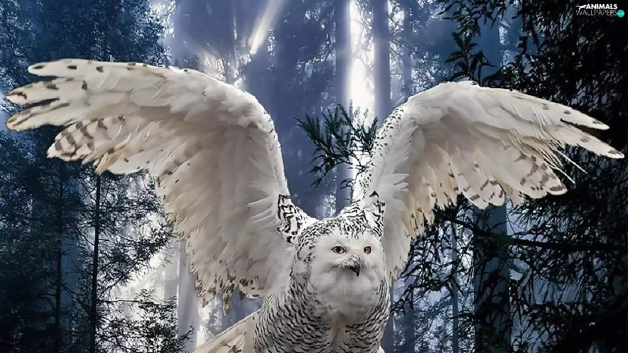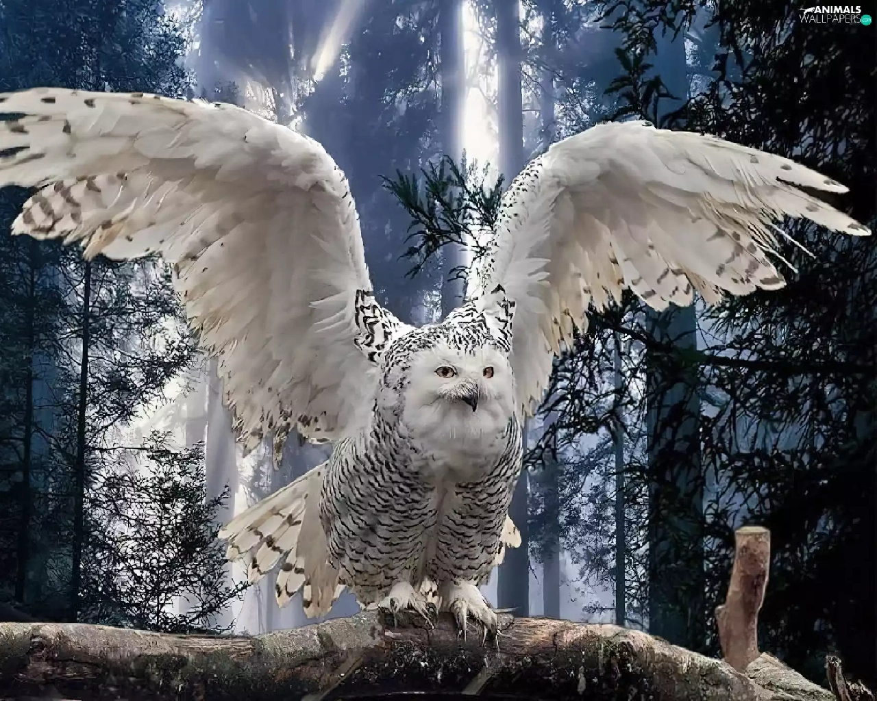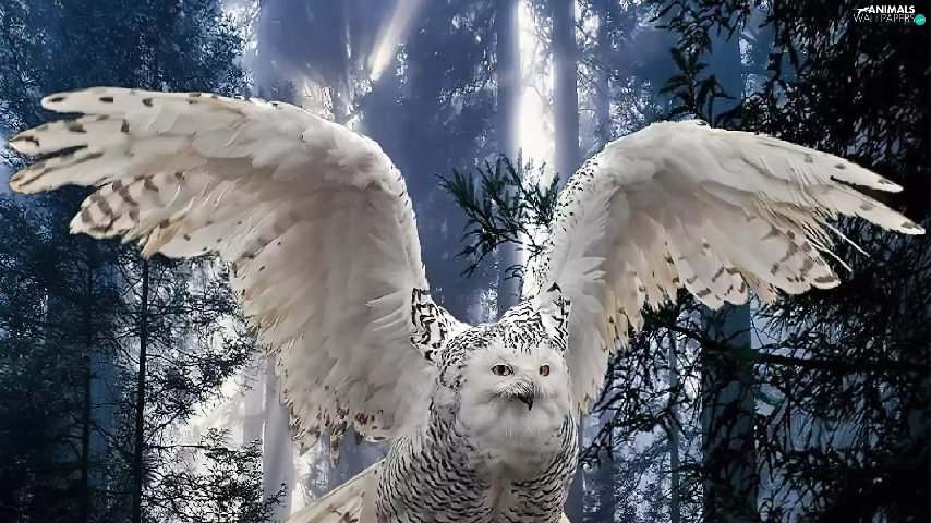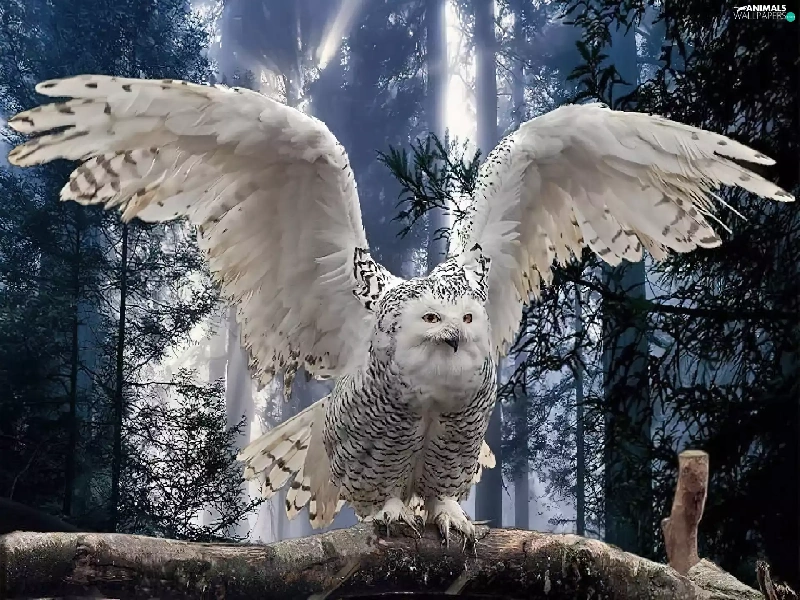 White, forest, branch, owl