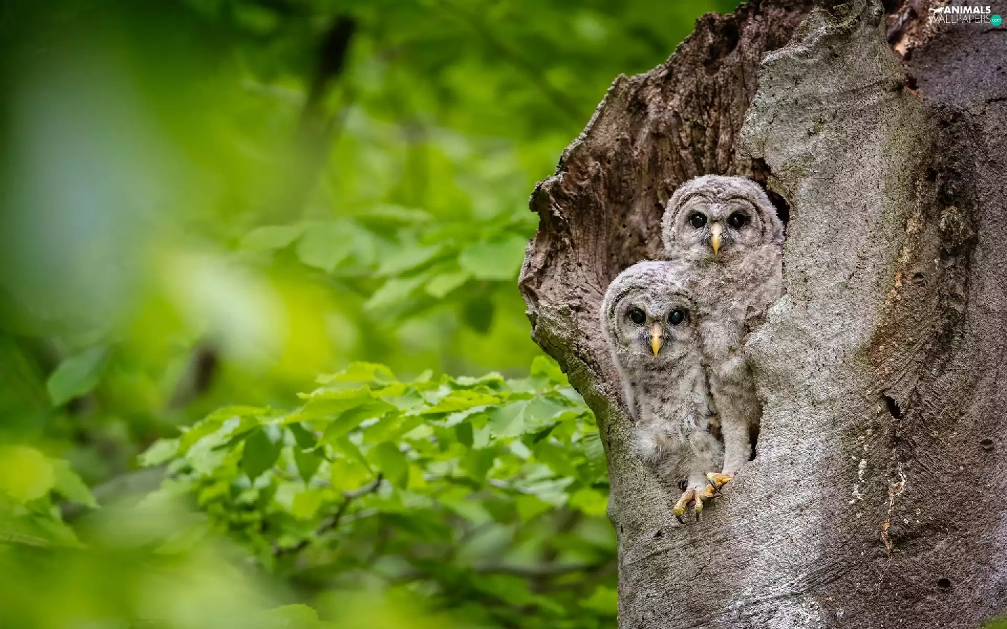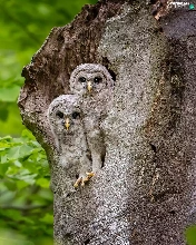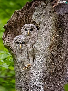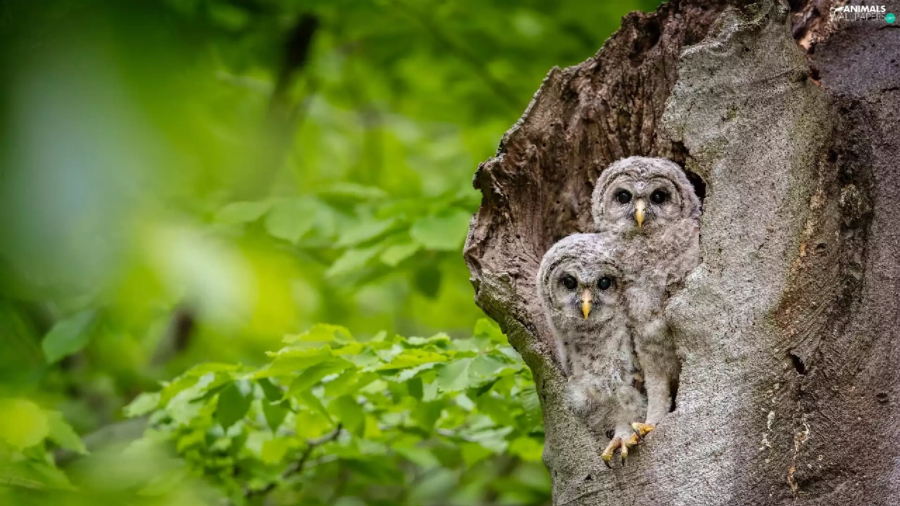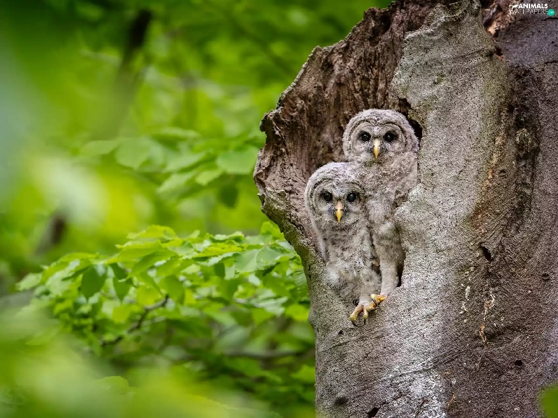 Two, trees, Owls, owls, young, hollow