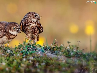 birds, Owls, Little Owl, Two