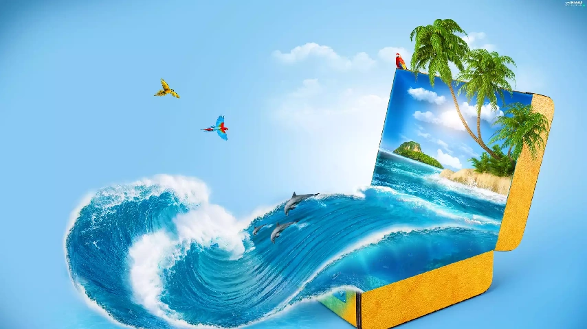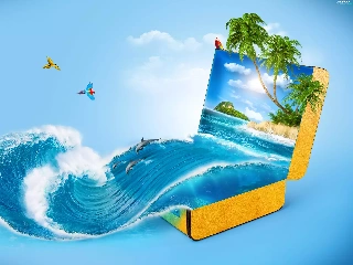 Ocean, summer, holiday, Palms, Parrots, case