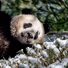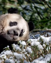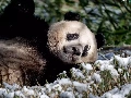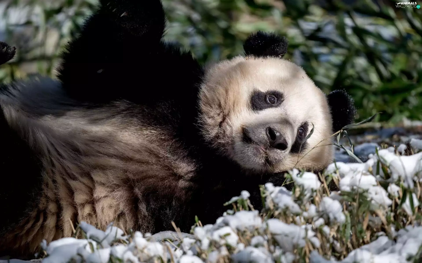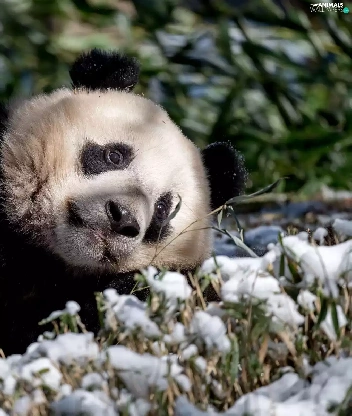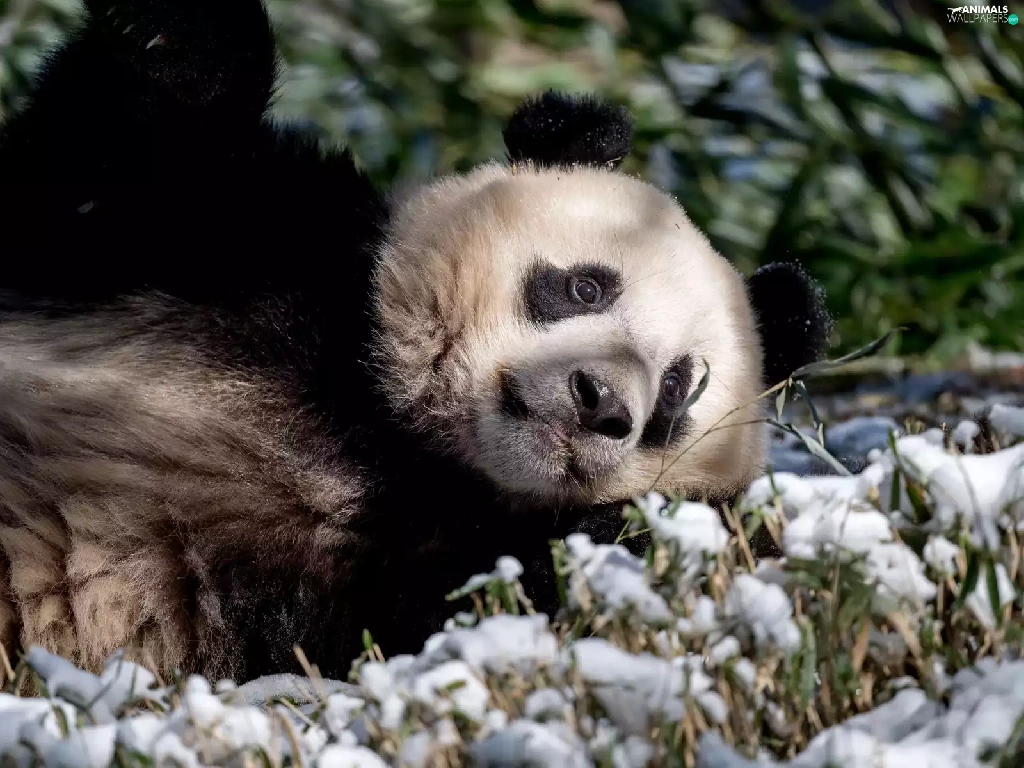 laying, grass, snow, Panda