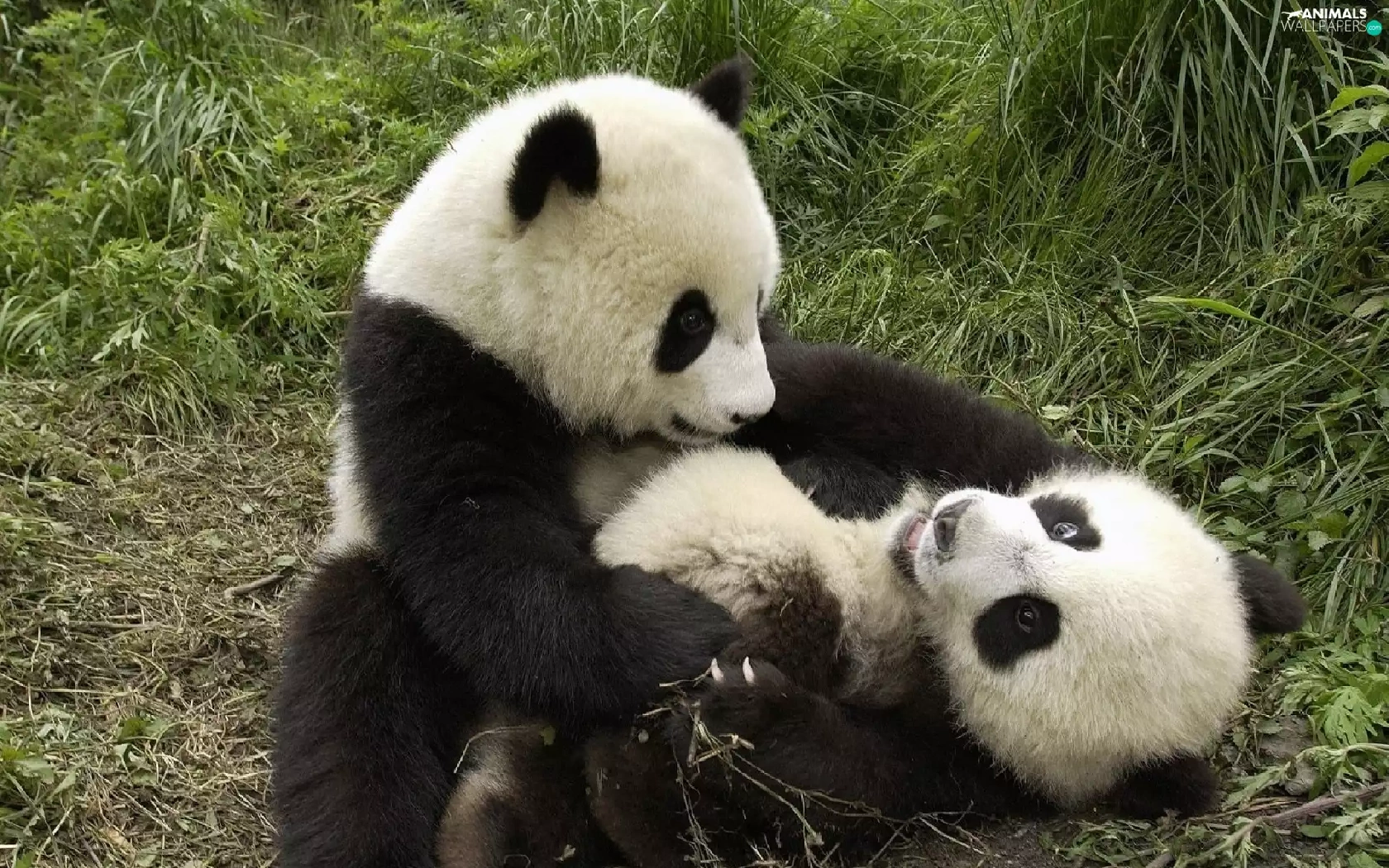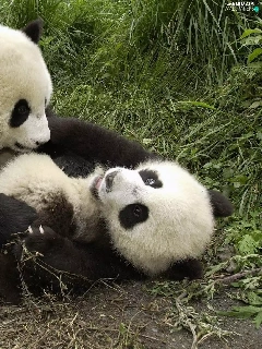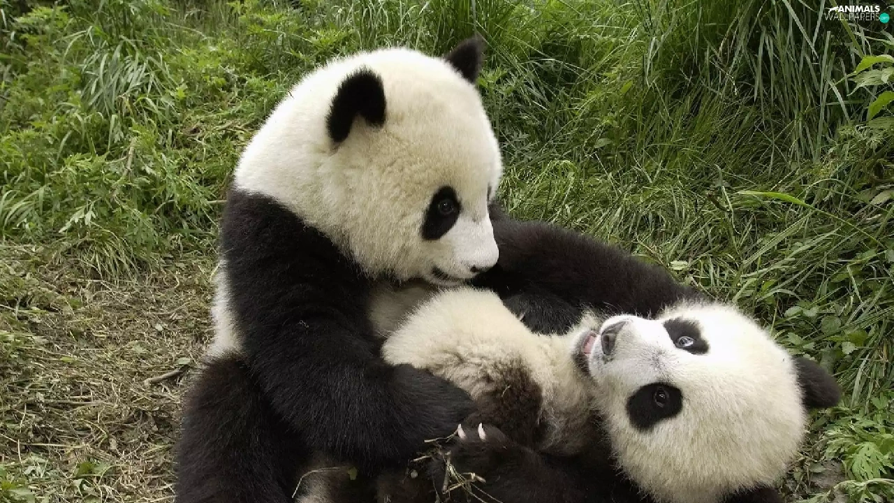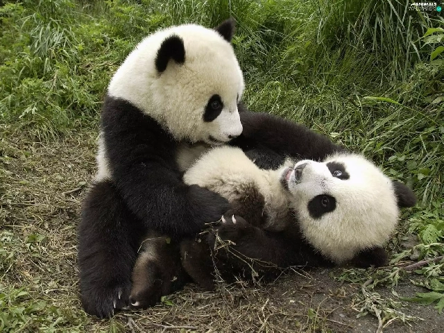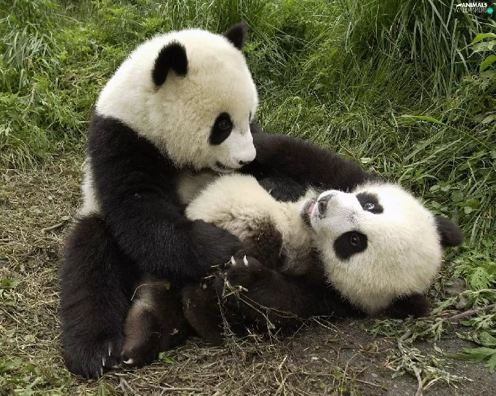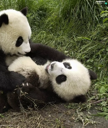 pandas, grass