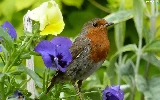pansies, robin, Plants
