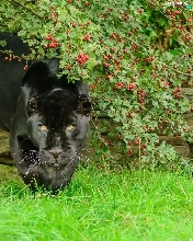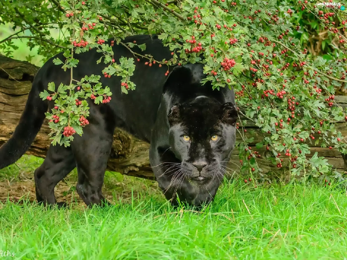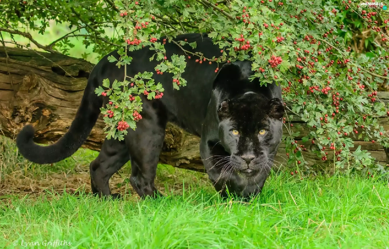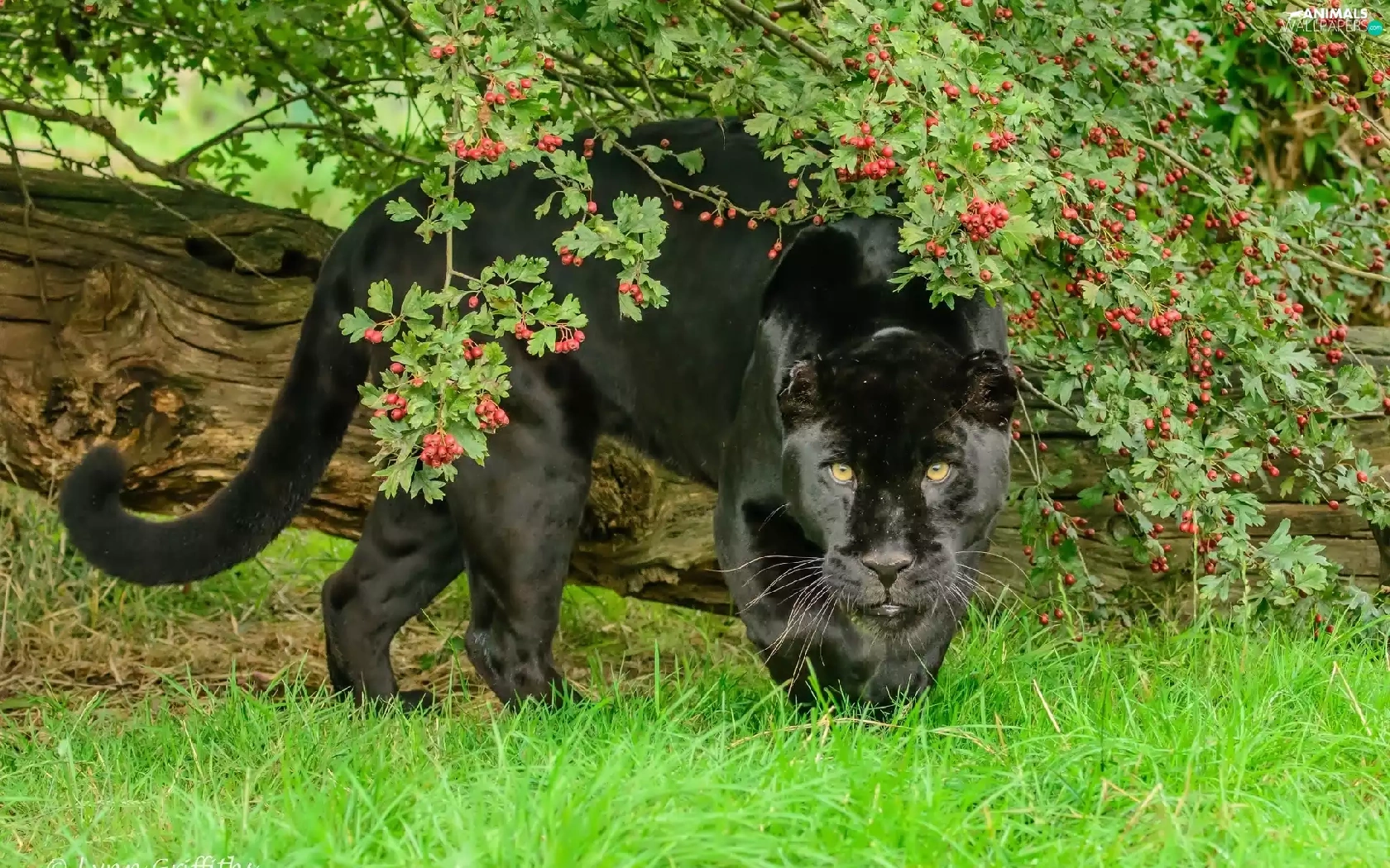black, log, grass, Panther