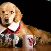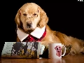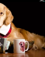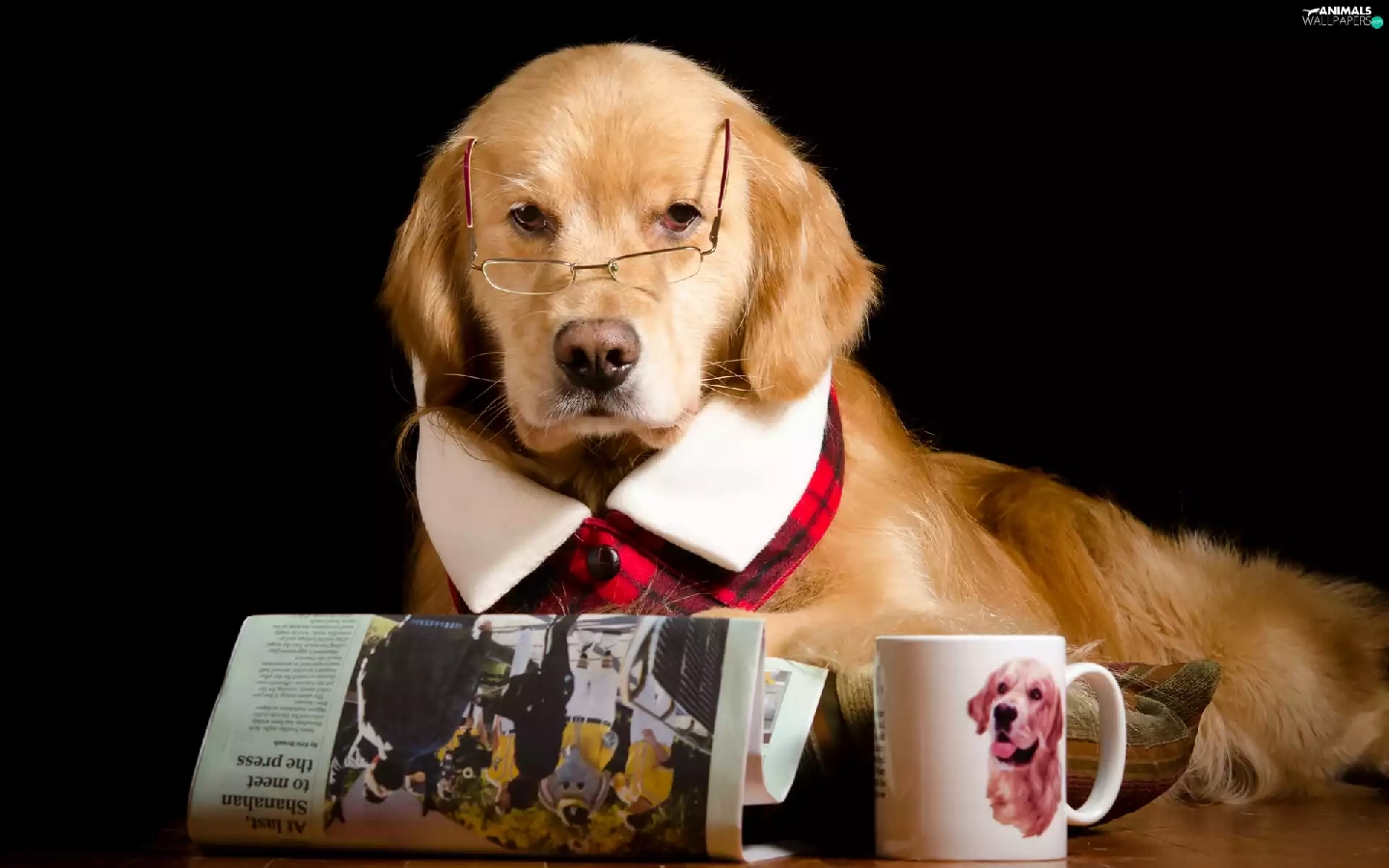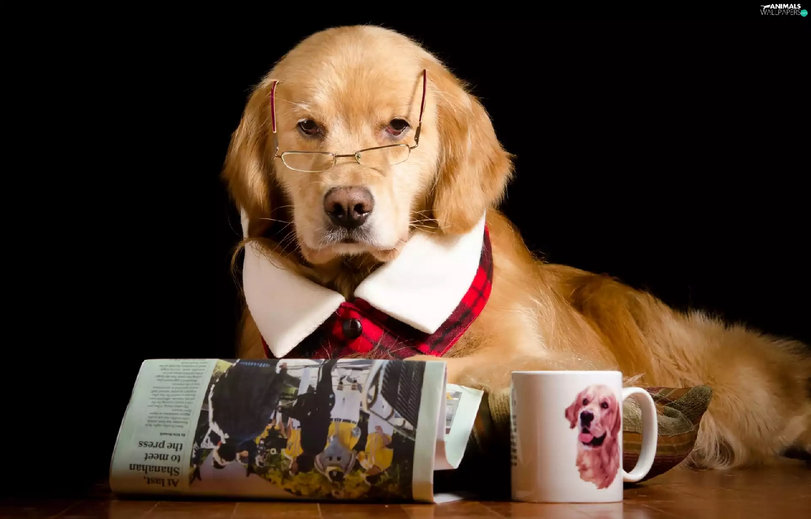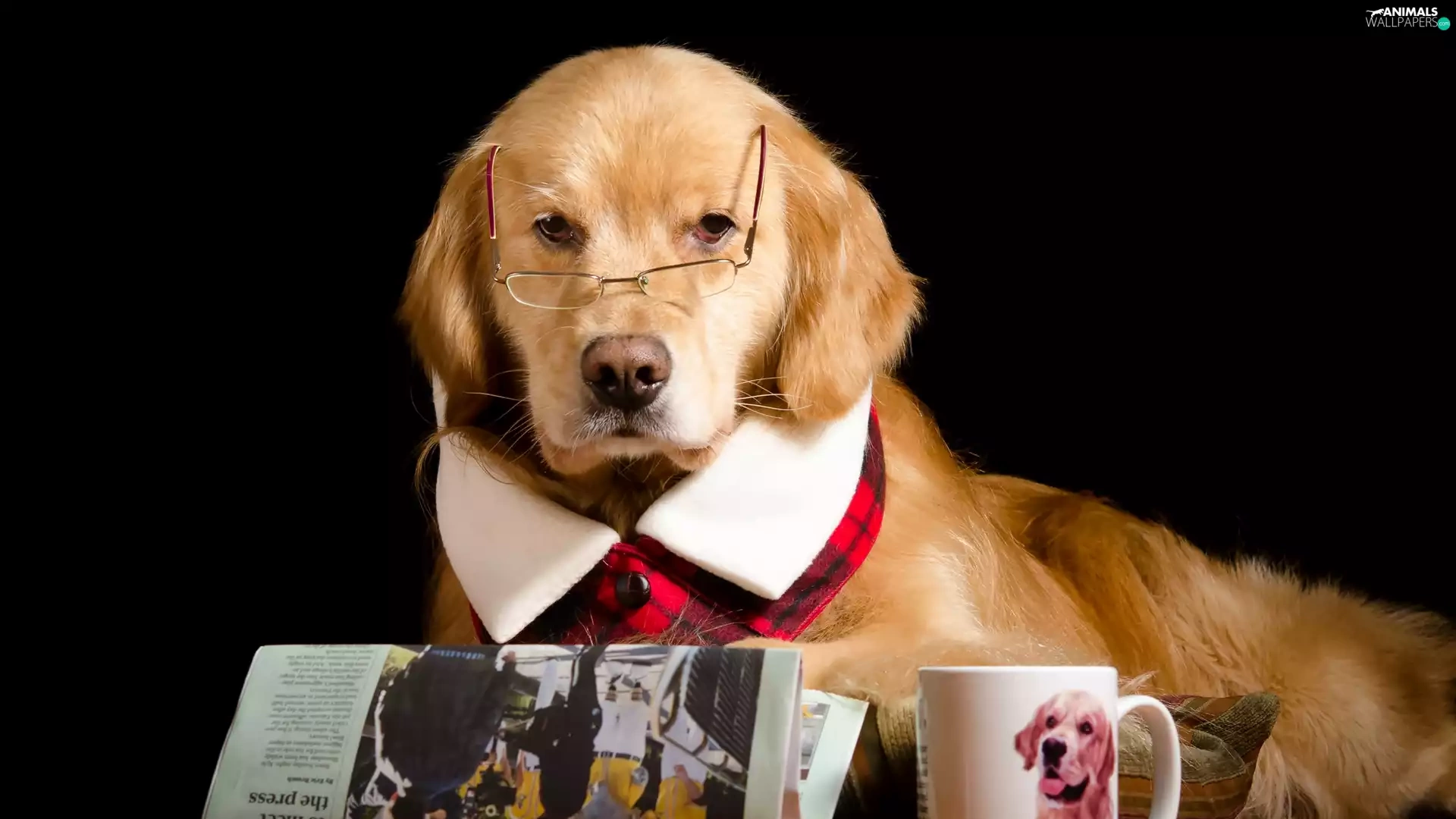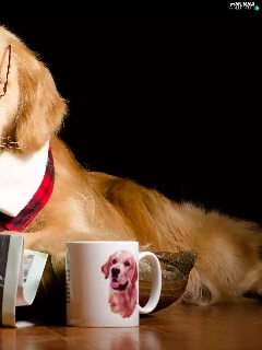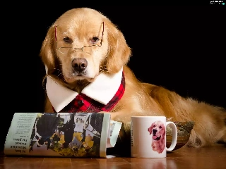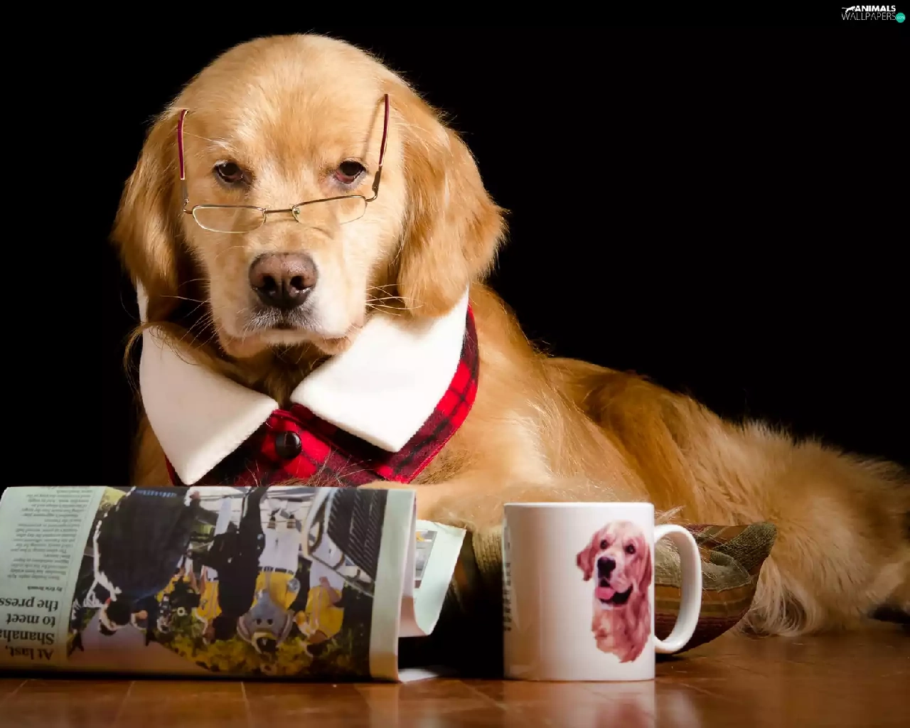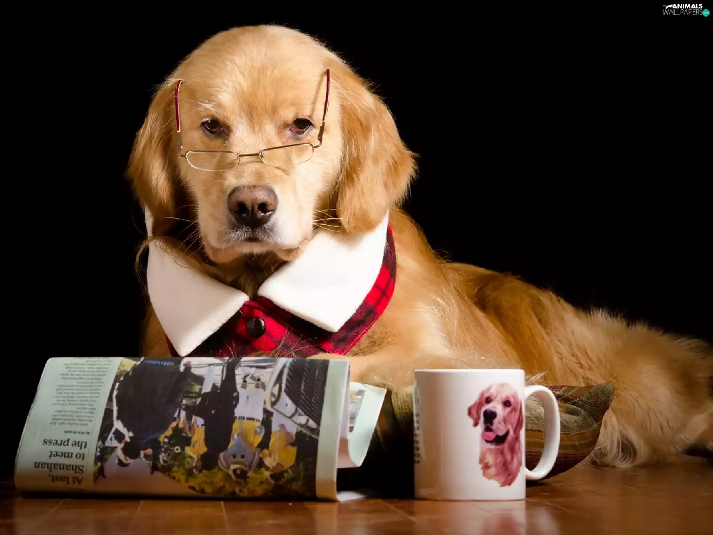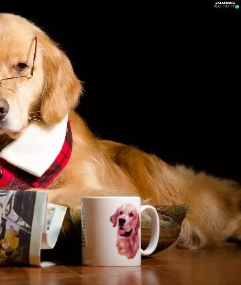 Cup, Funny, Glasses, Paper, Golden Retriever