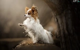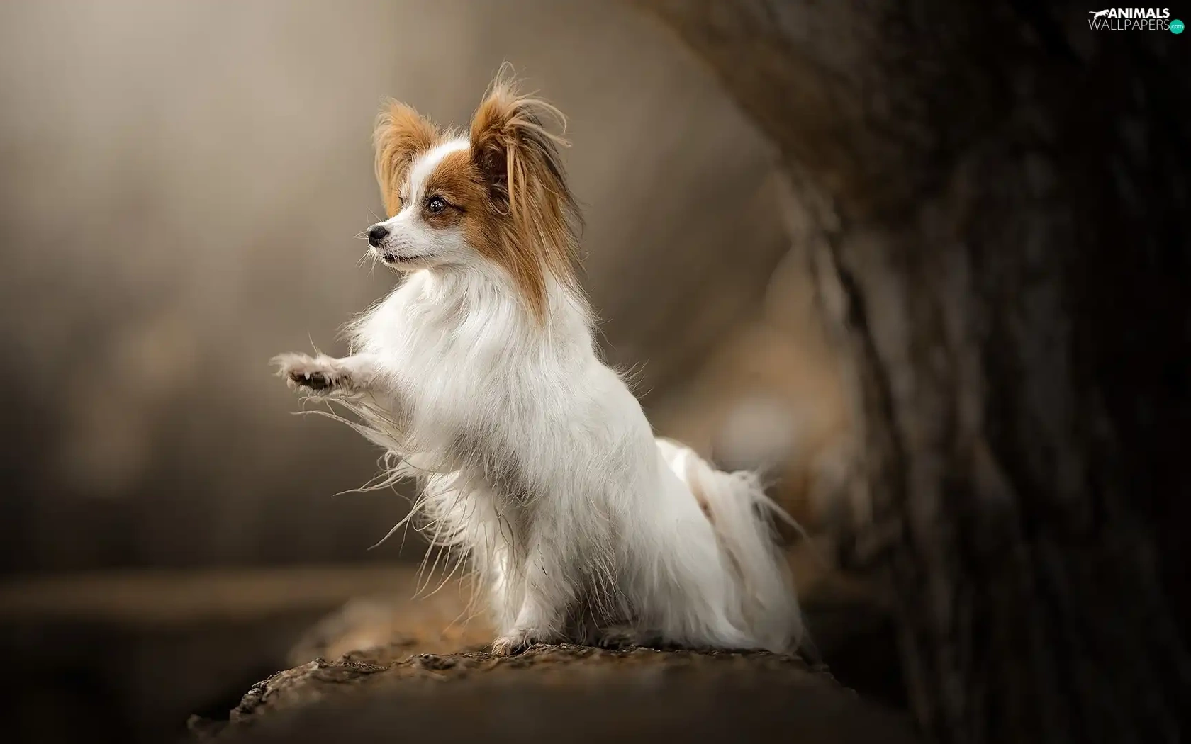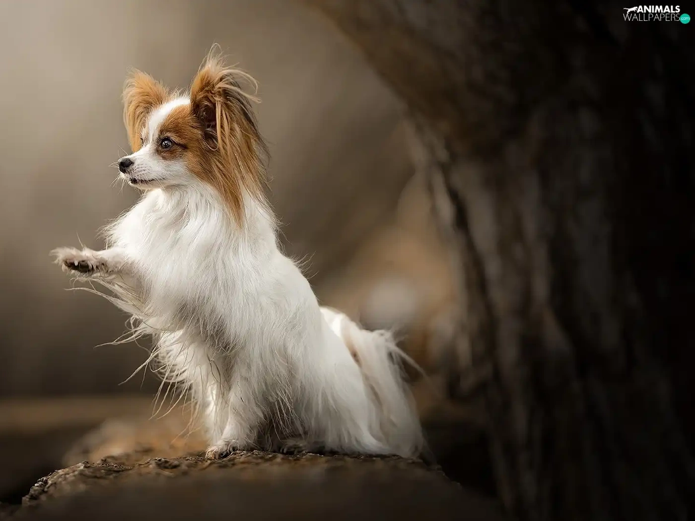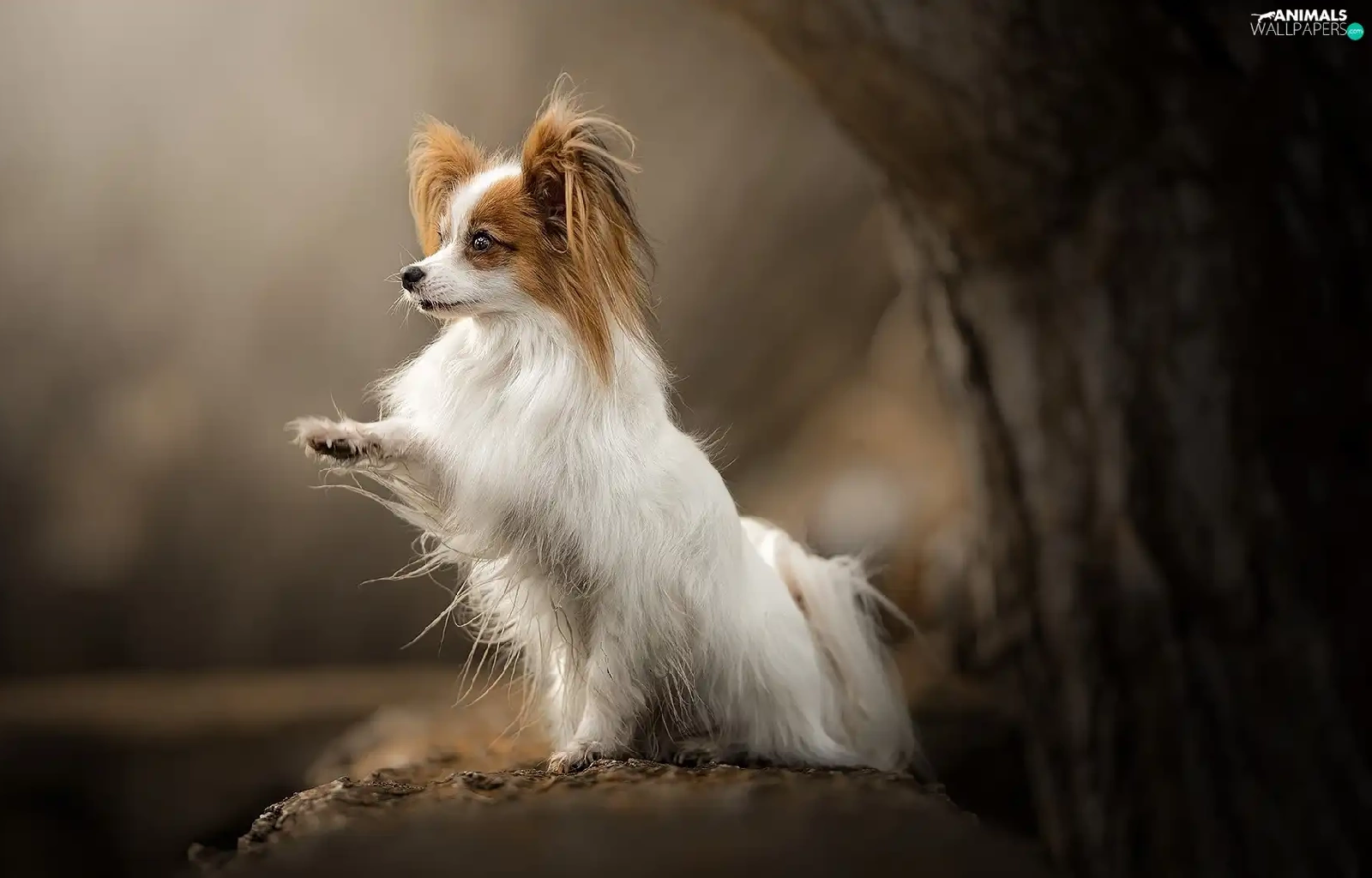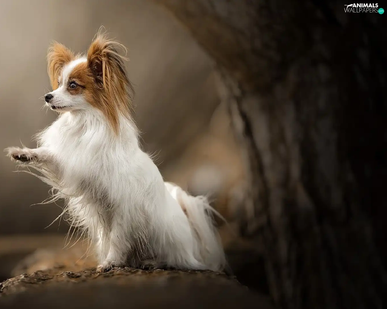 Papillon, Continental Toy Spaniel, fuzzy, Miniature, dog, trees, background