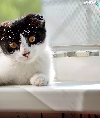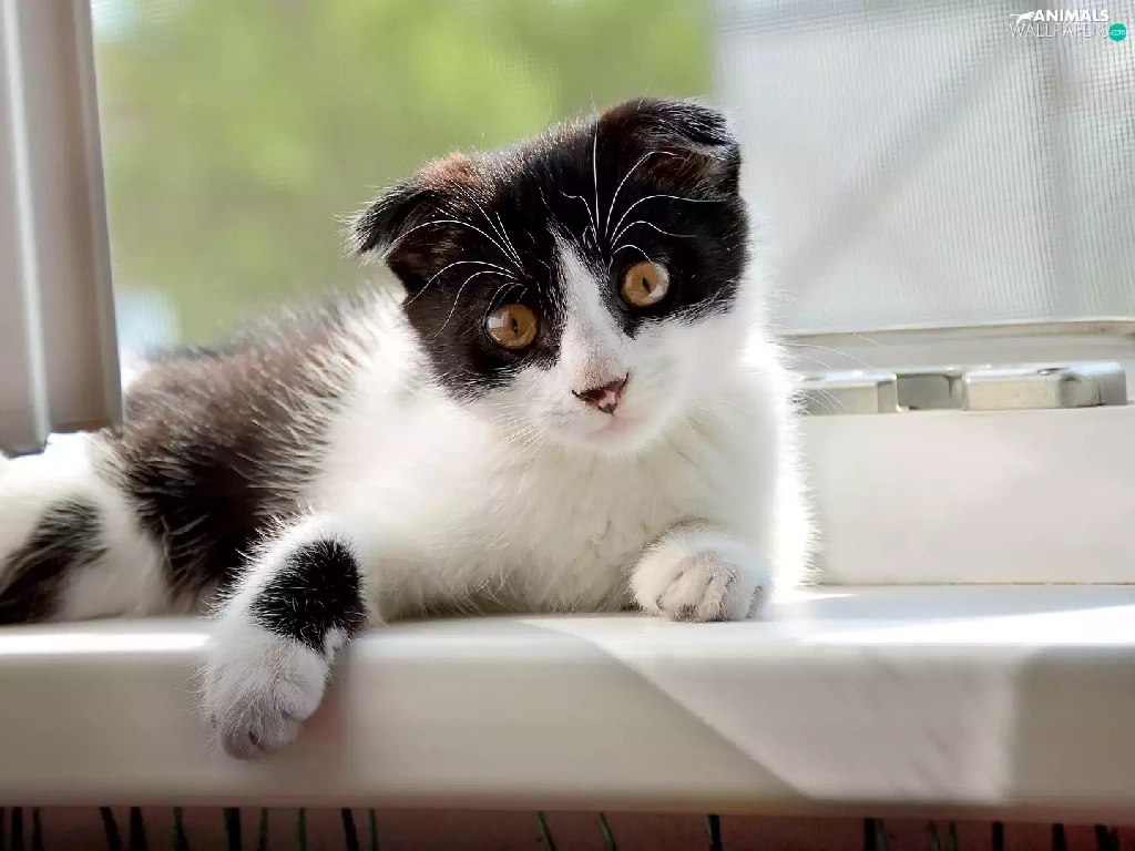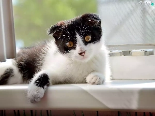 black and white, parapet, Window, cat