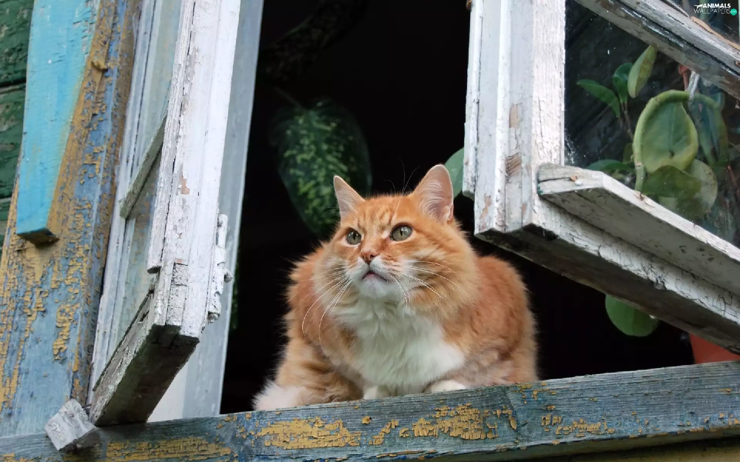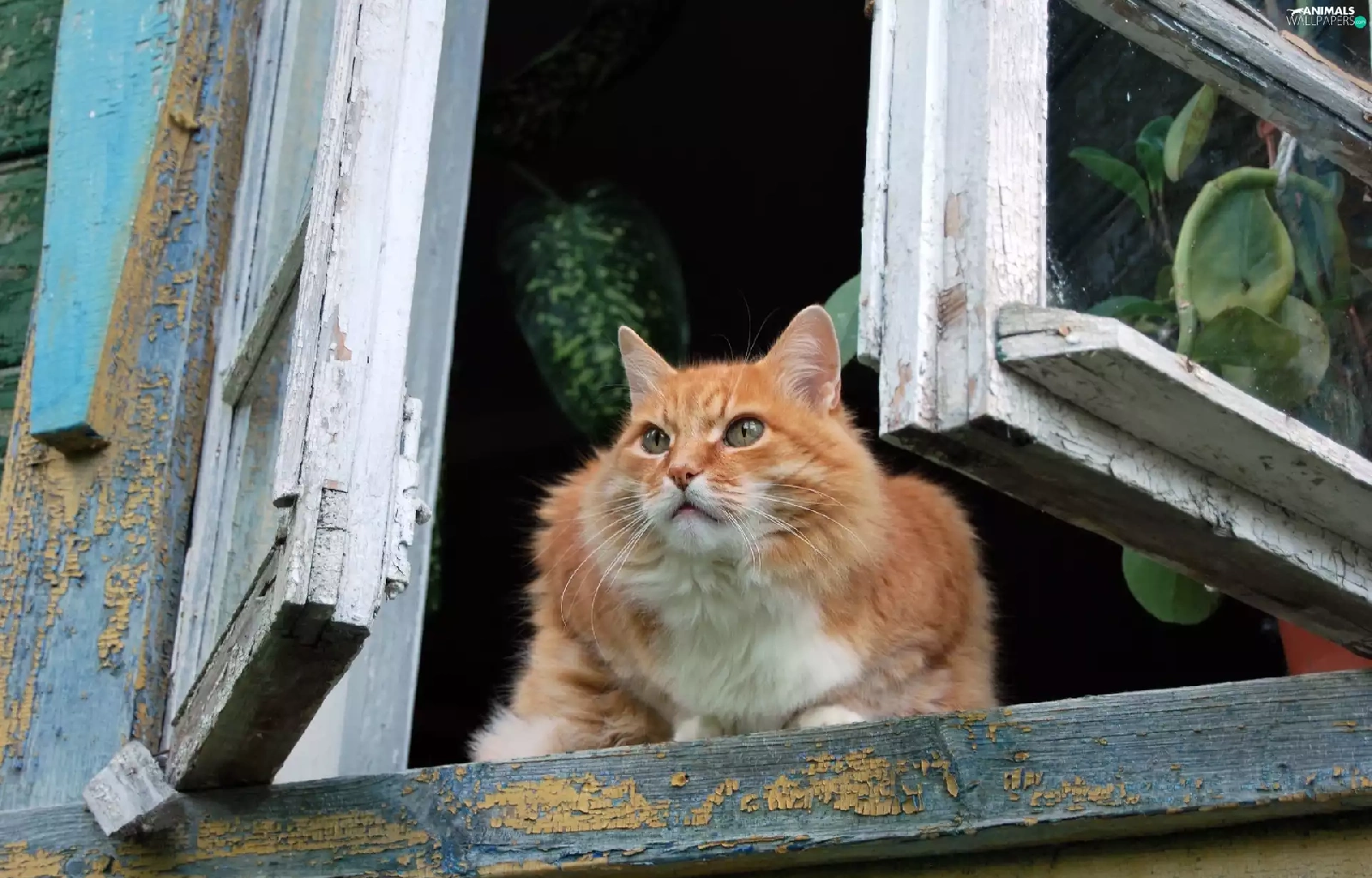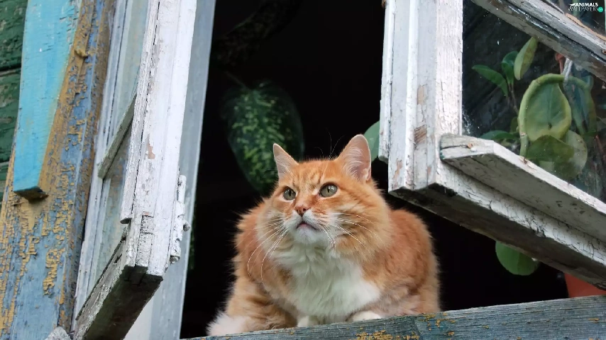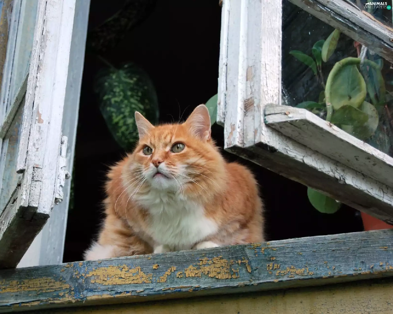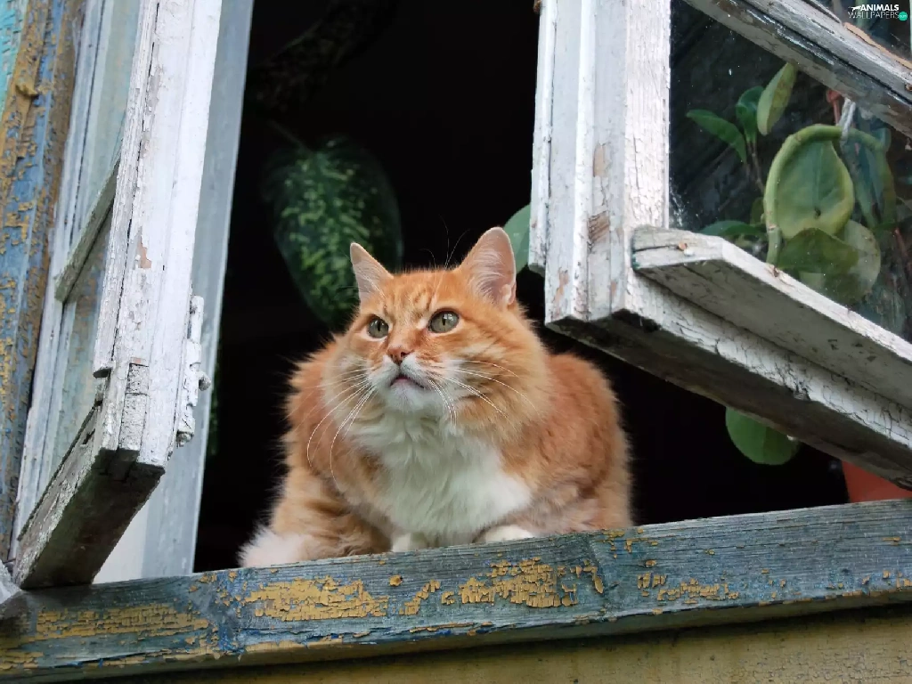 cat, old, Window, parapet