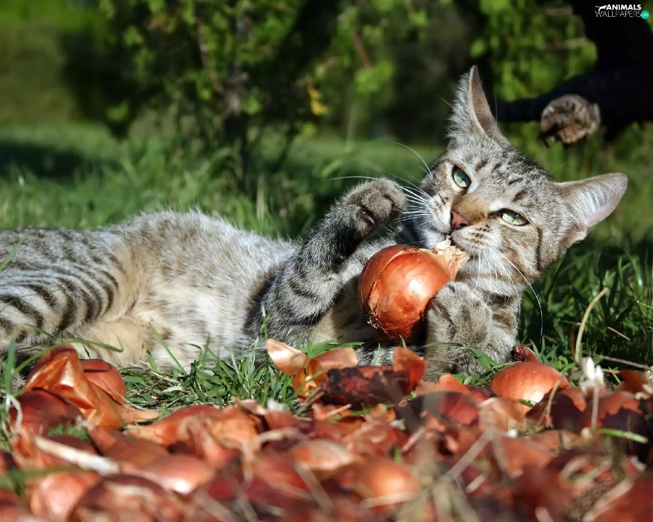 parings, cat, onion