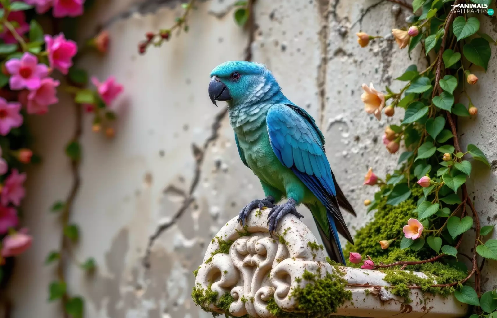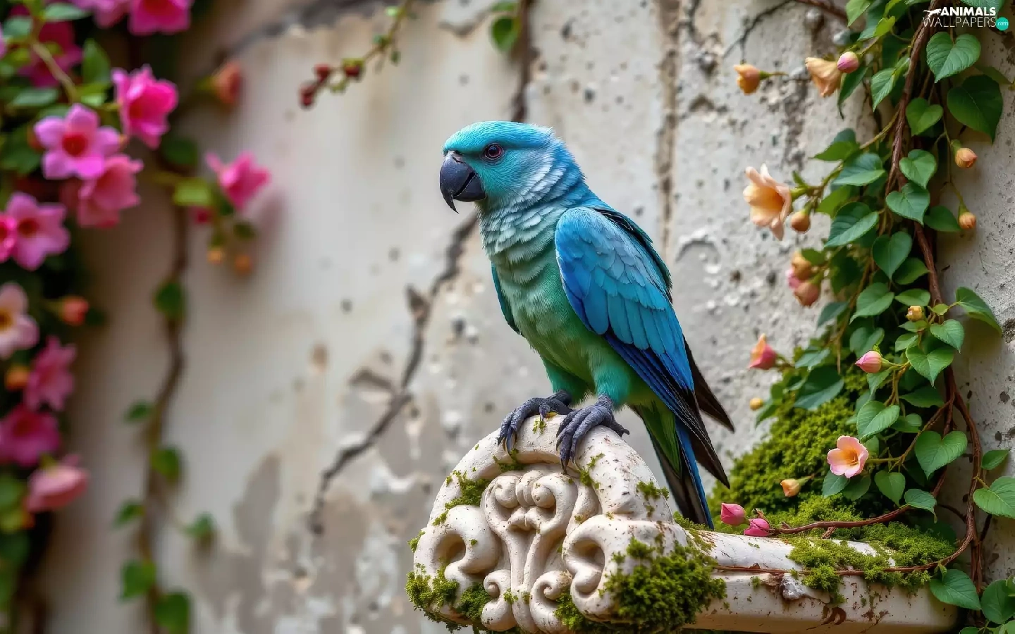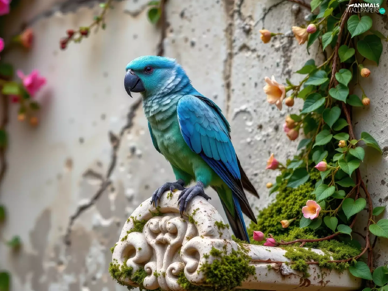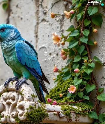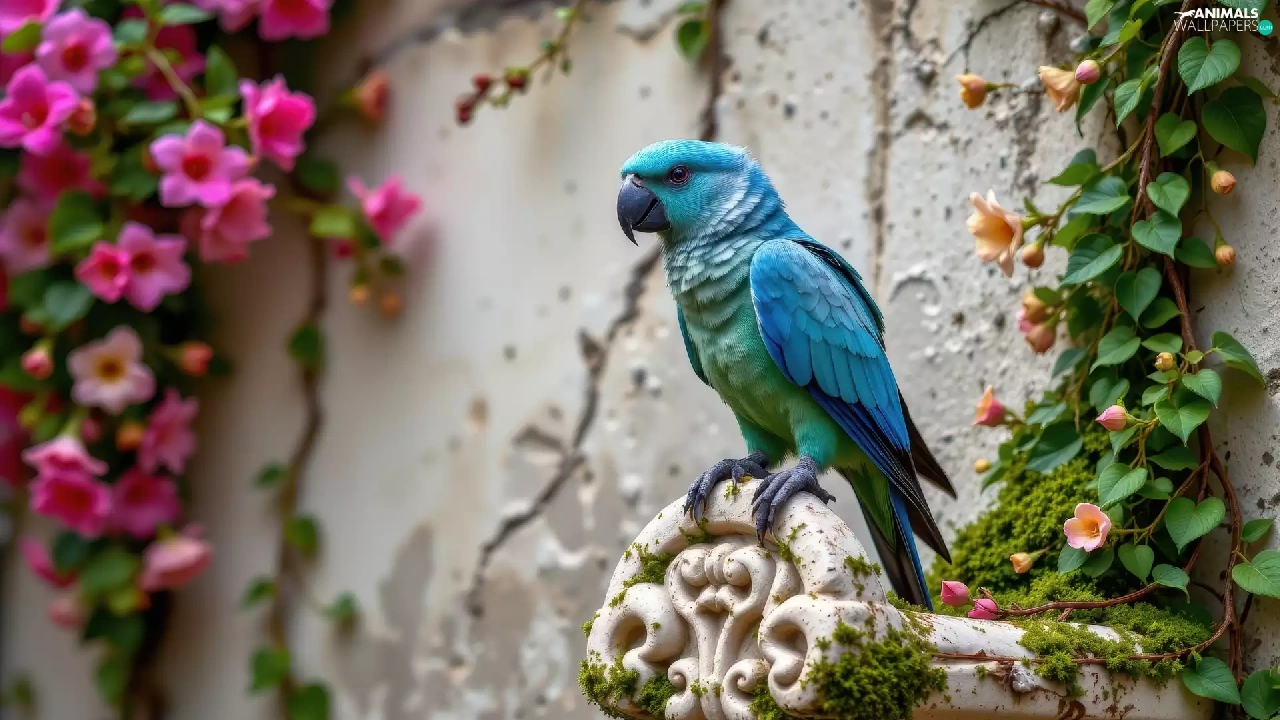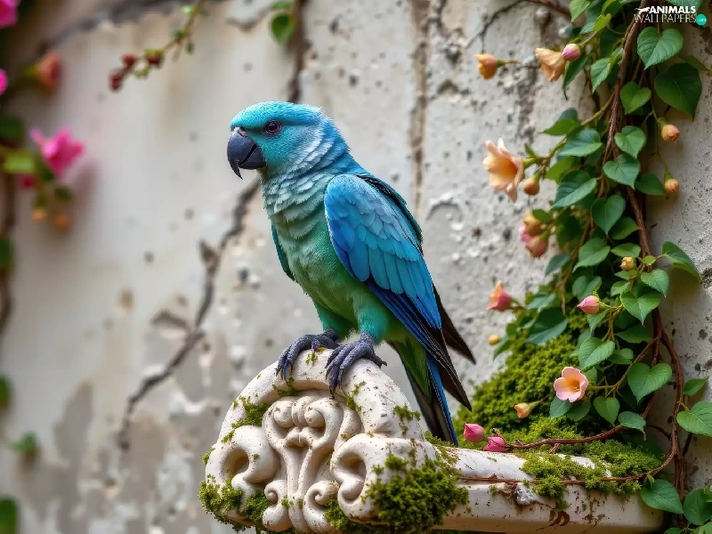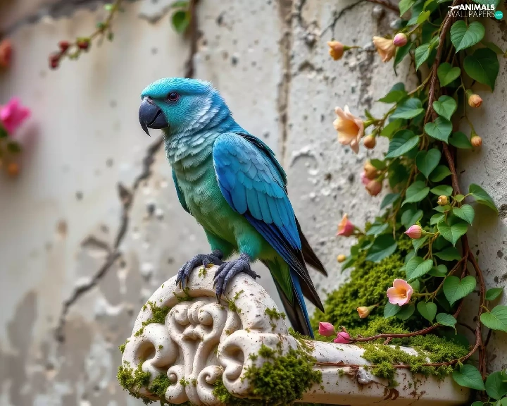 wall, Blue, Climbers, parrot, Bird, flourishing, Ai
