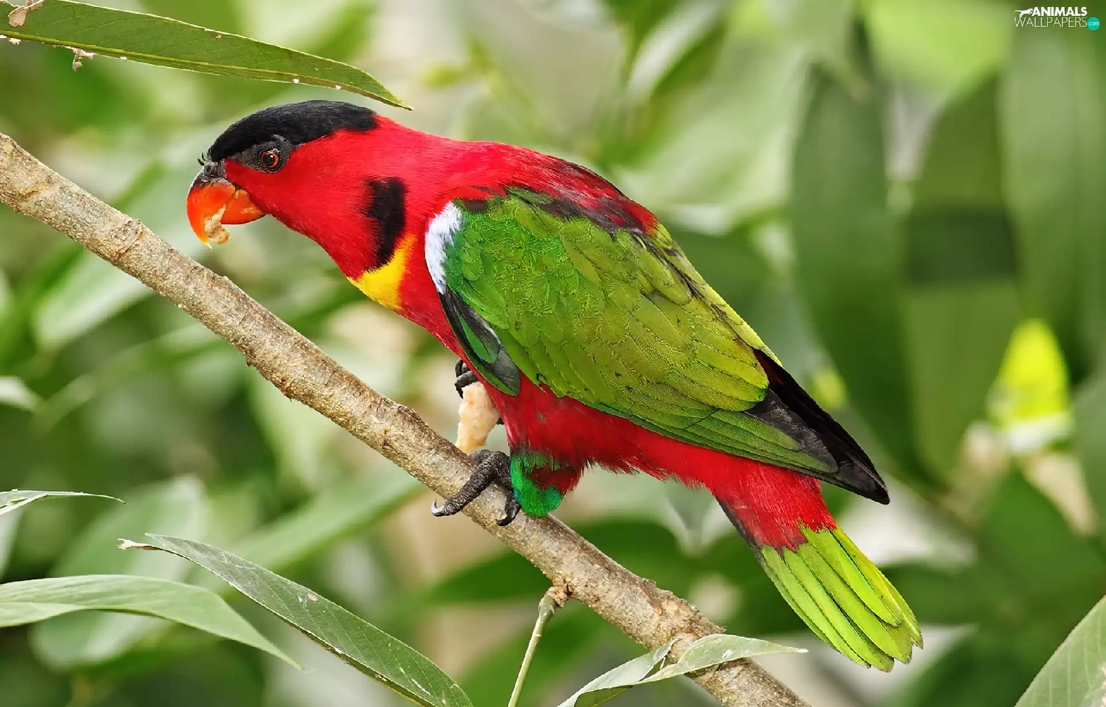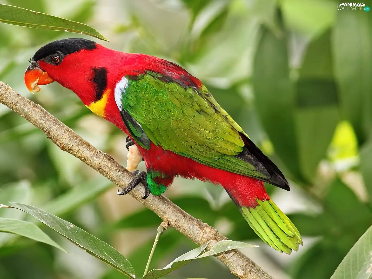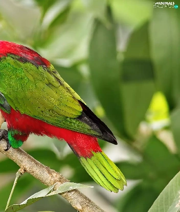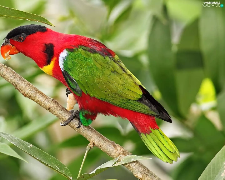 Coloured, twig, leaves, parrot