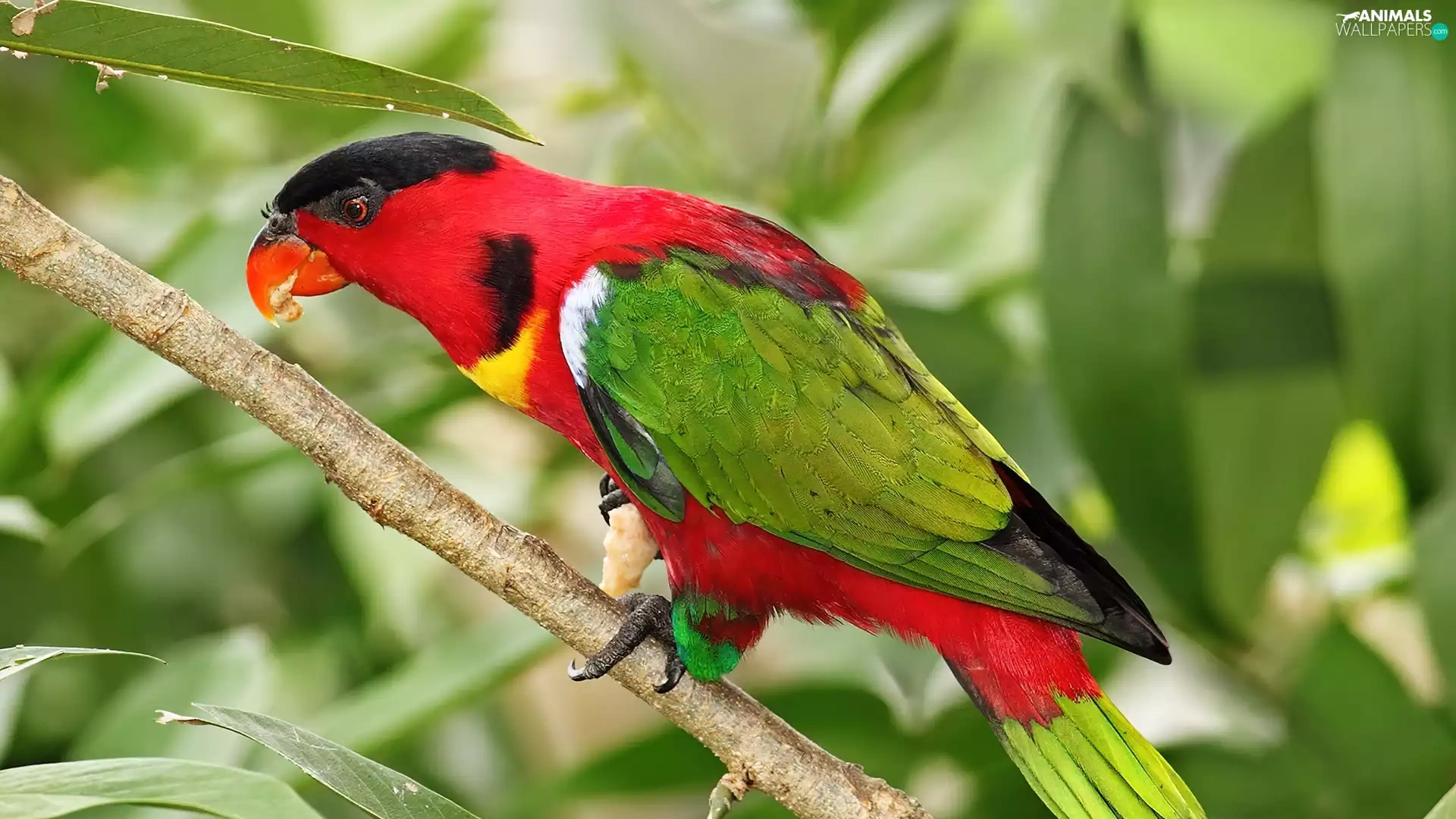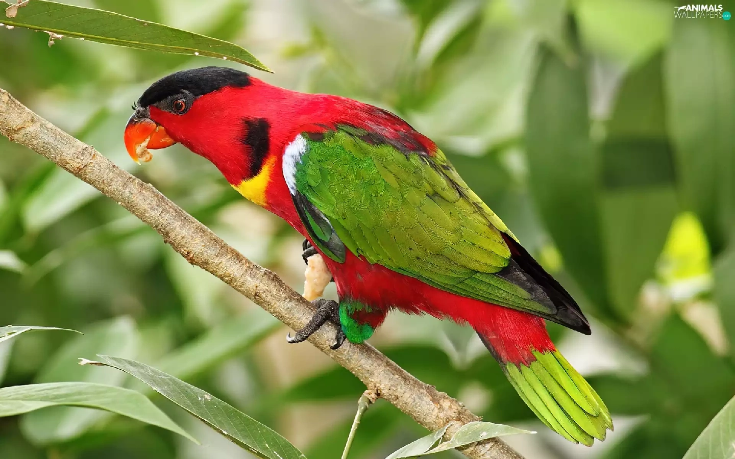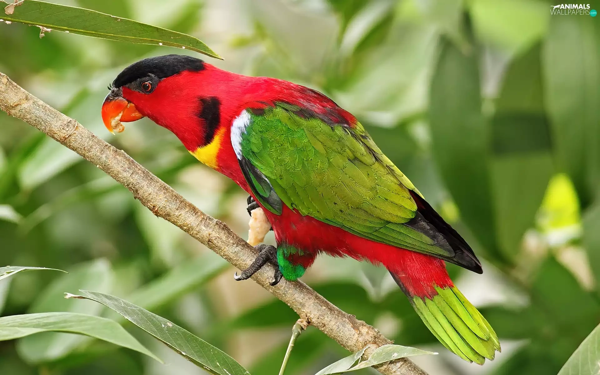 Coloured, twig, leaves, parrot