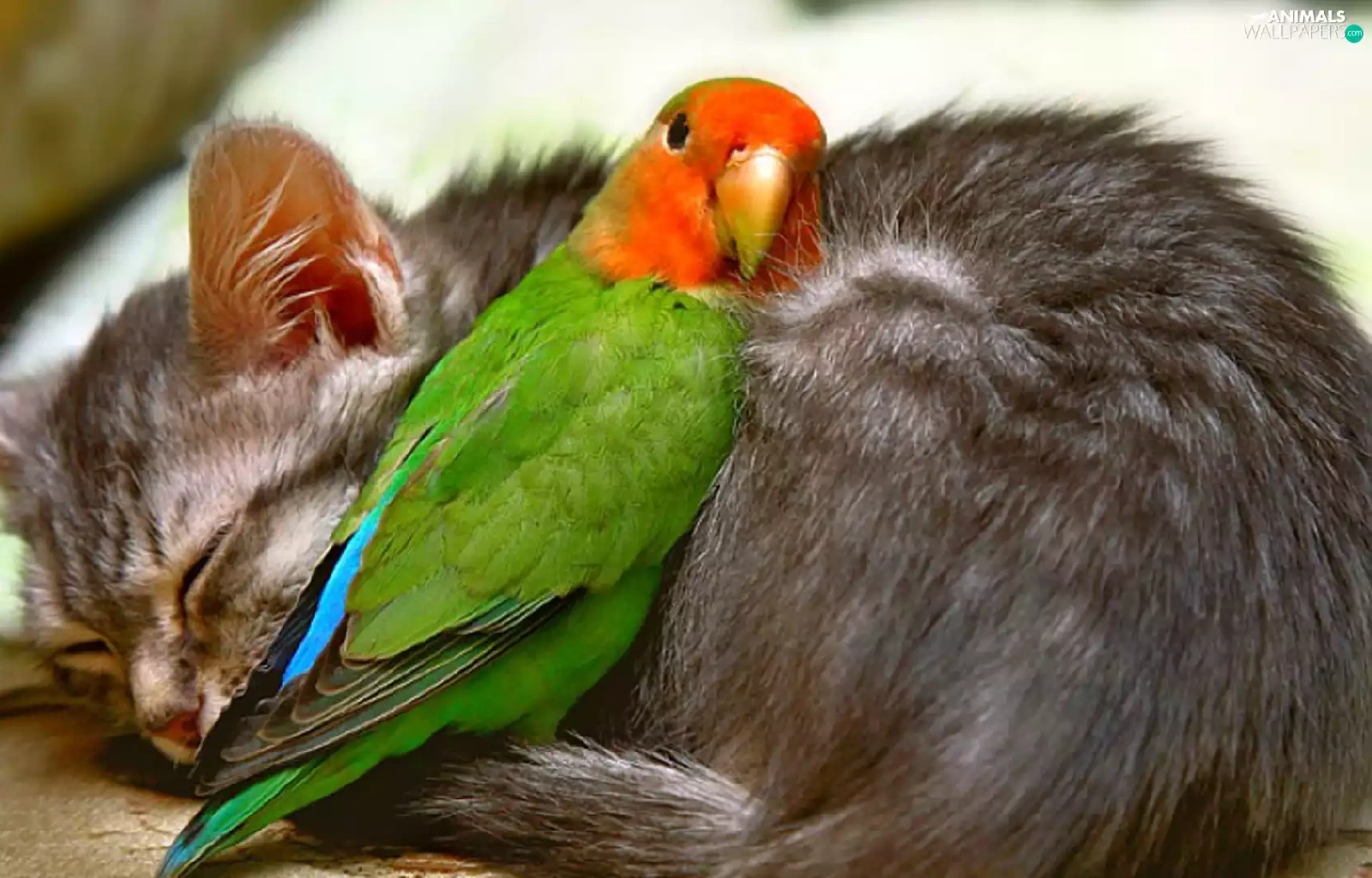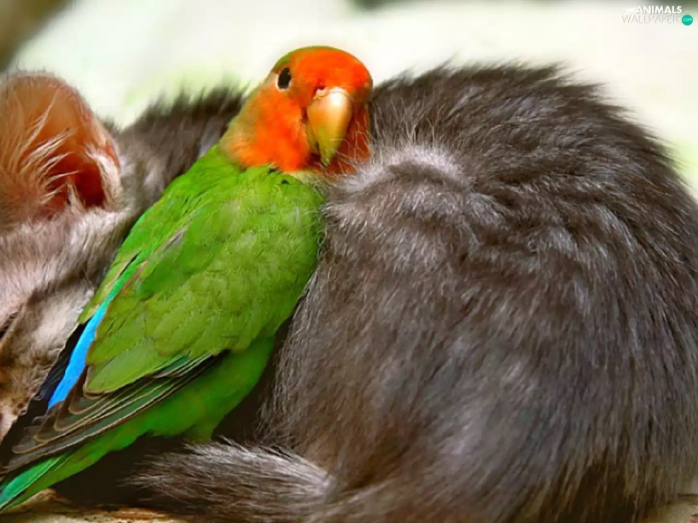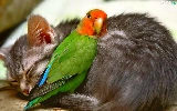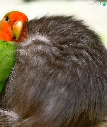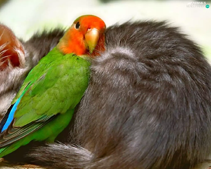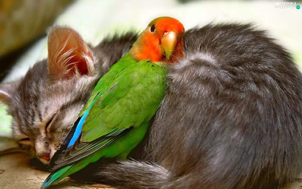 friends, cat, little parrot