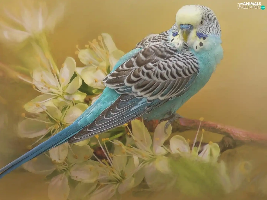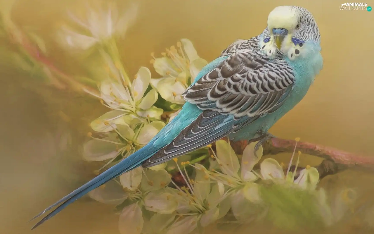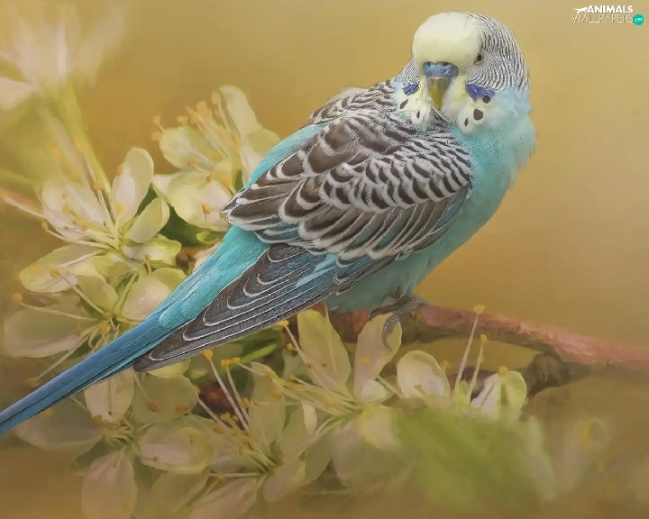 flowery, twig, little parrot, Wavy, parrot
