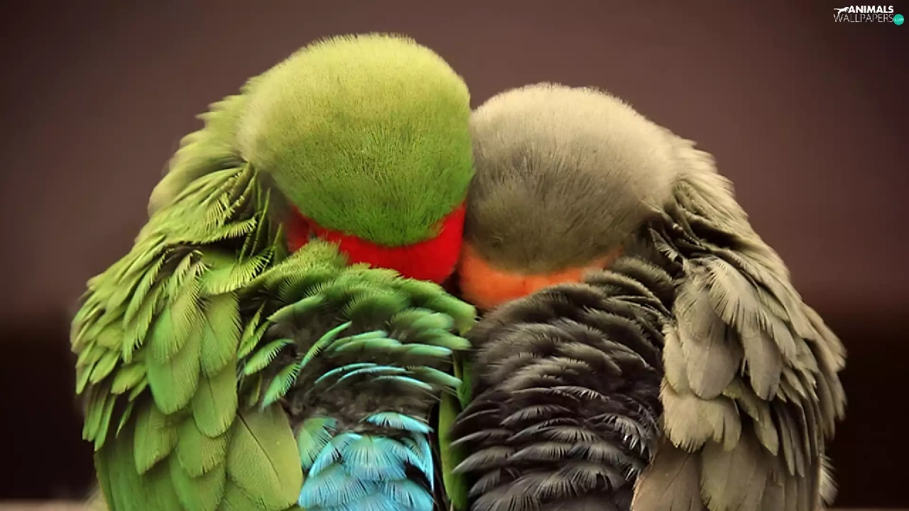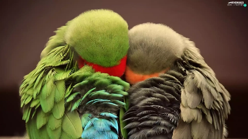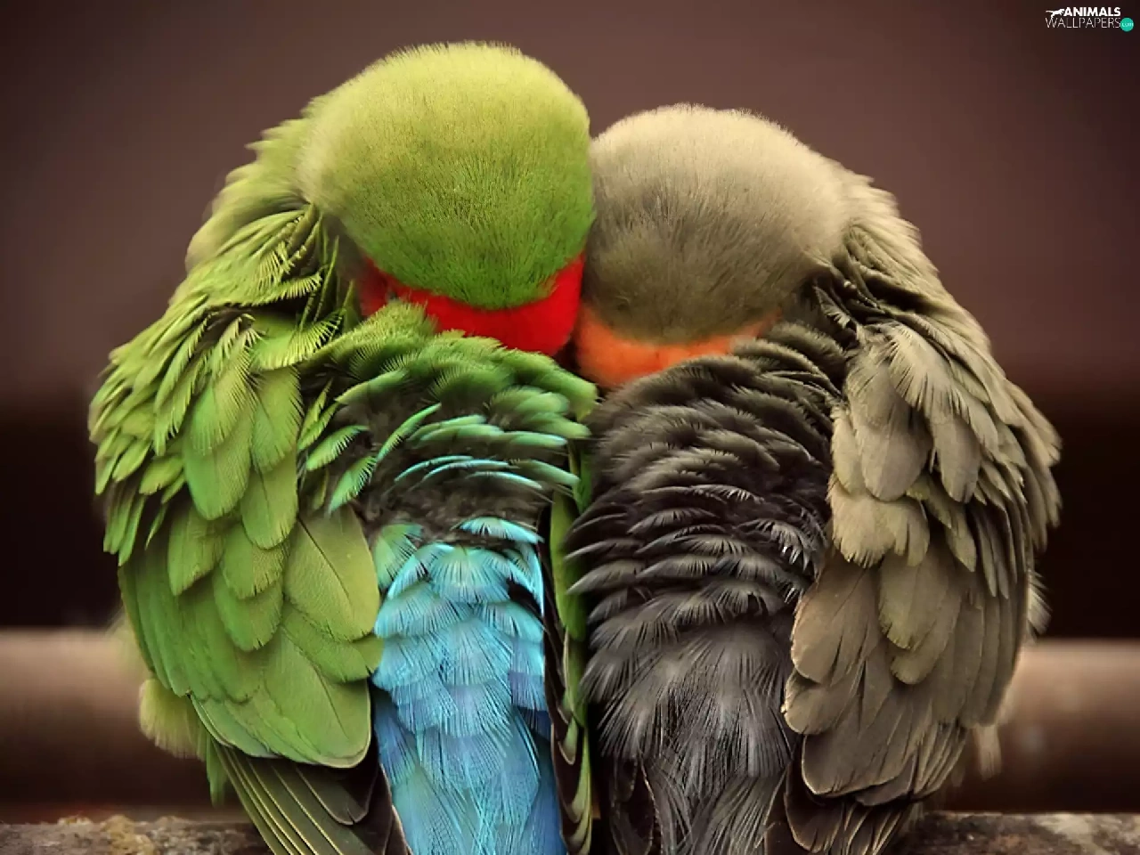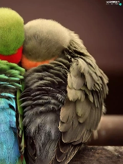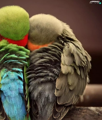 Parrots, Sleeping, cuddled