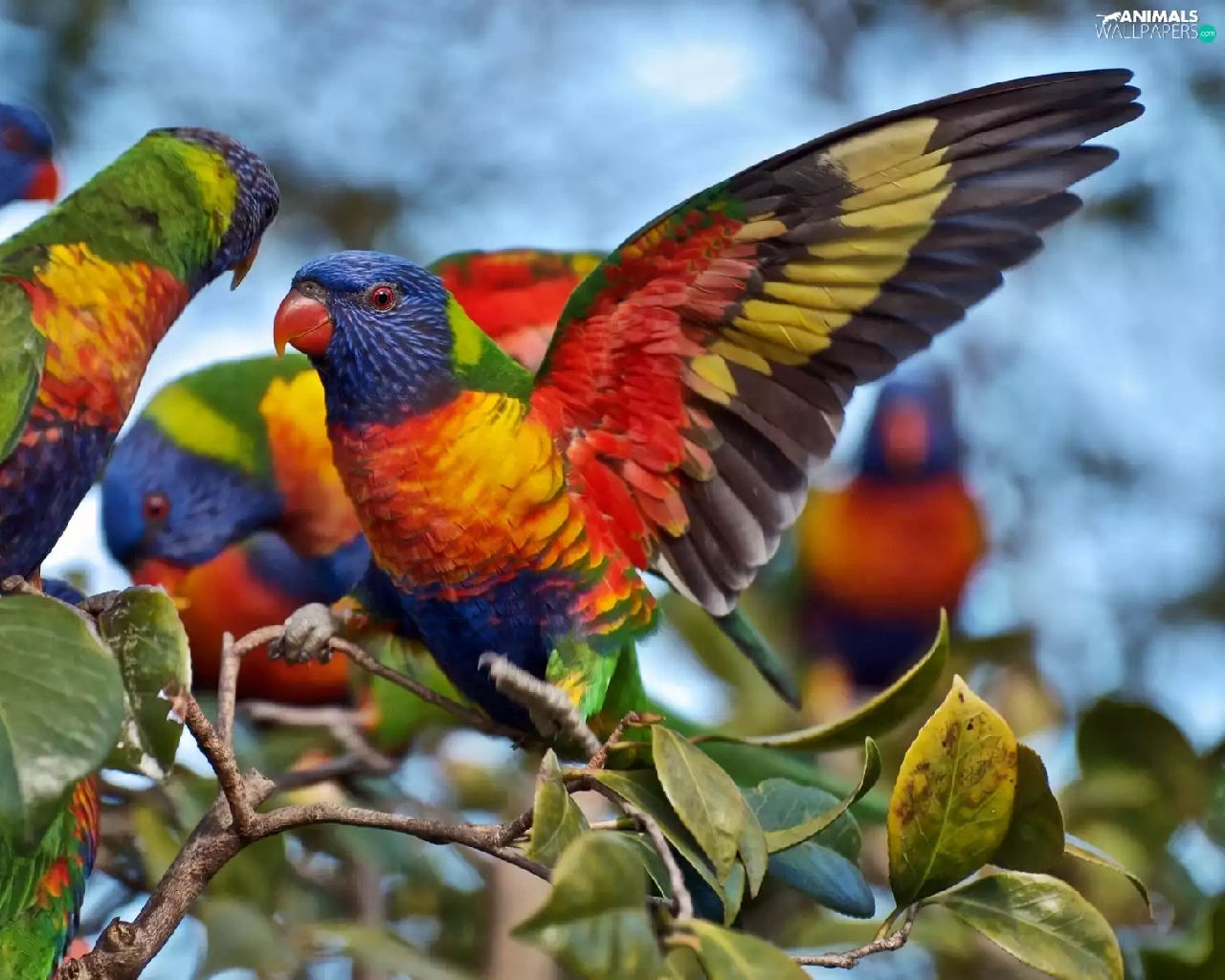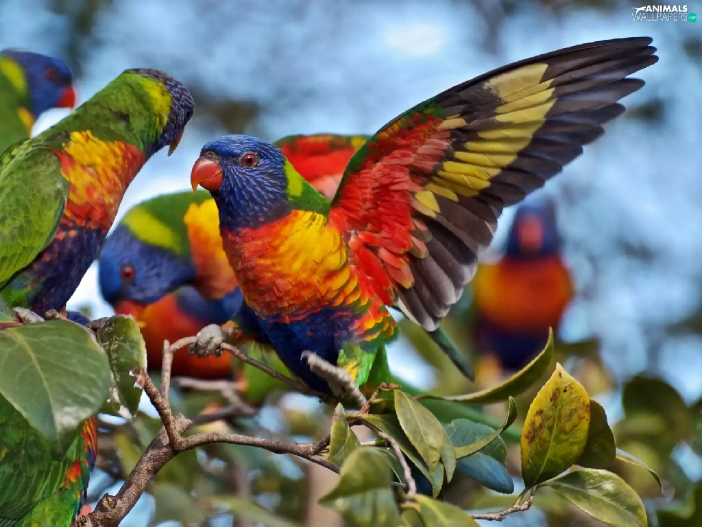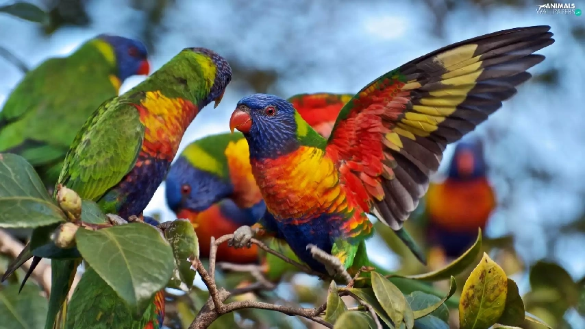 lorikeets Mountain, color, Parrots