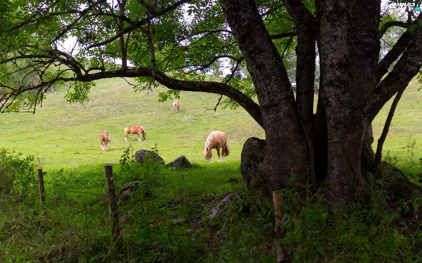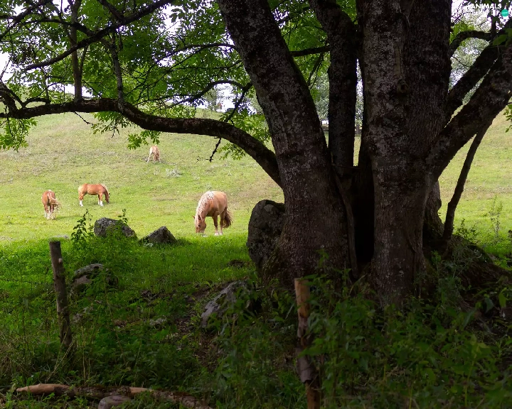 bloodstock, trees, fence, pasture