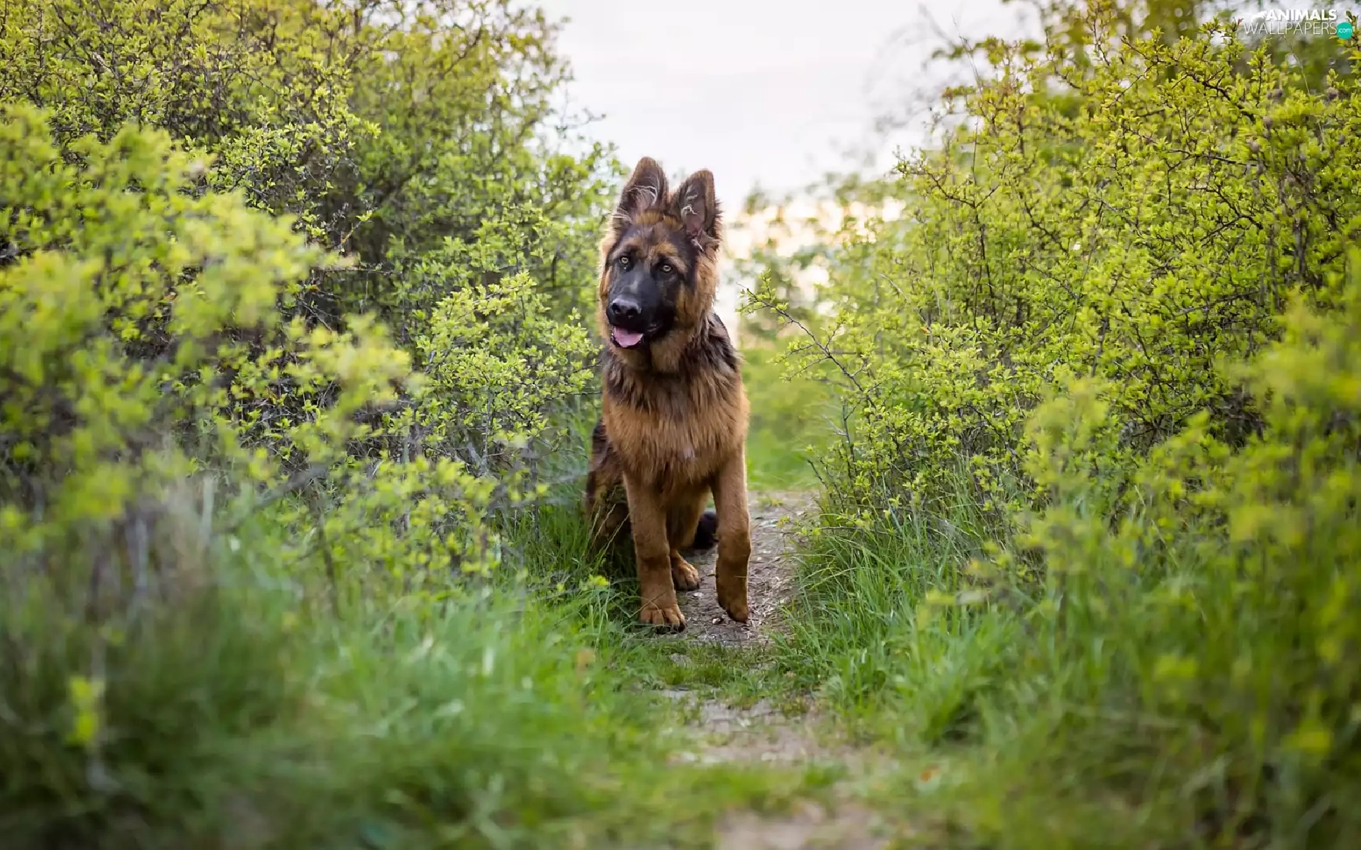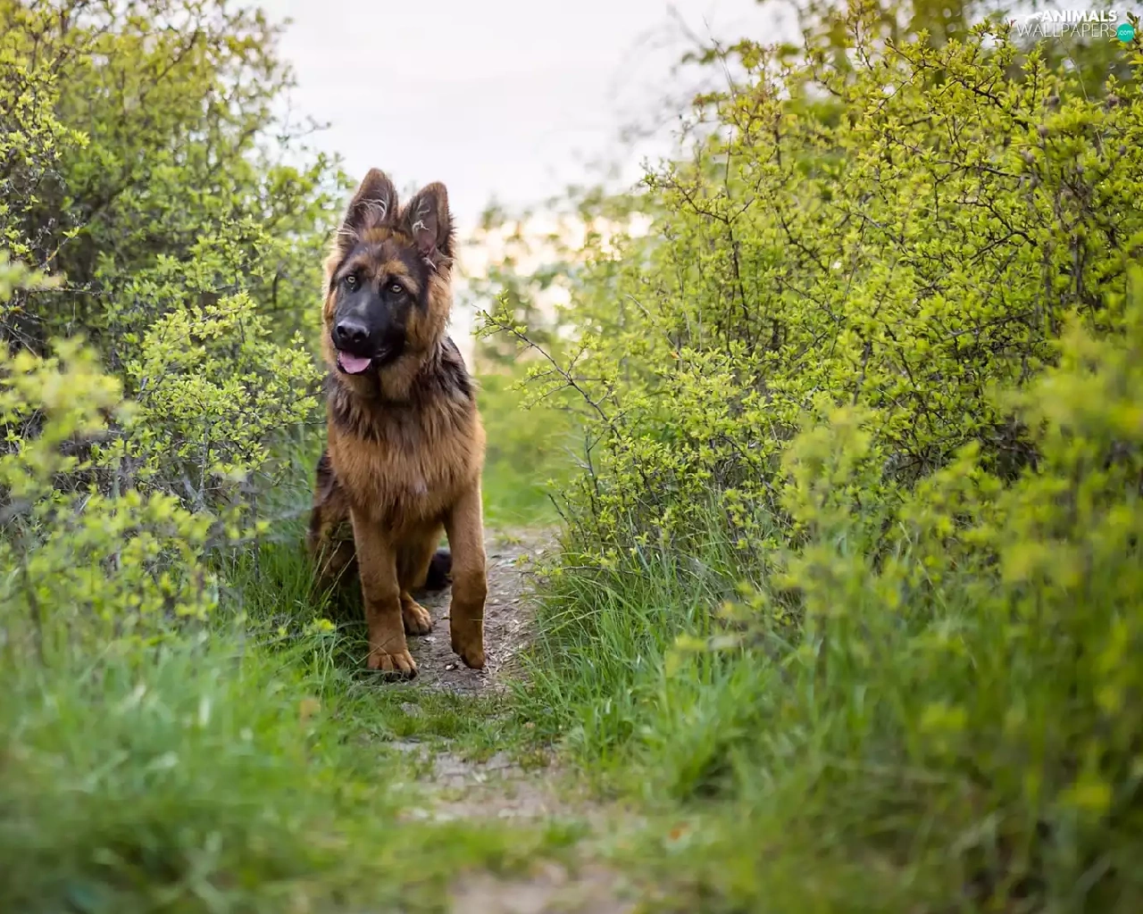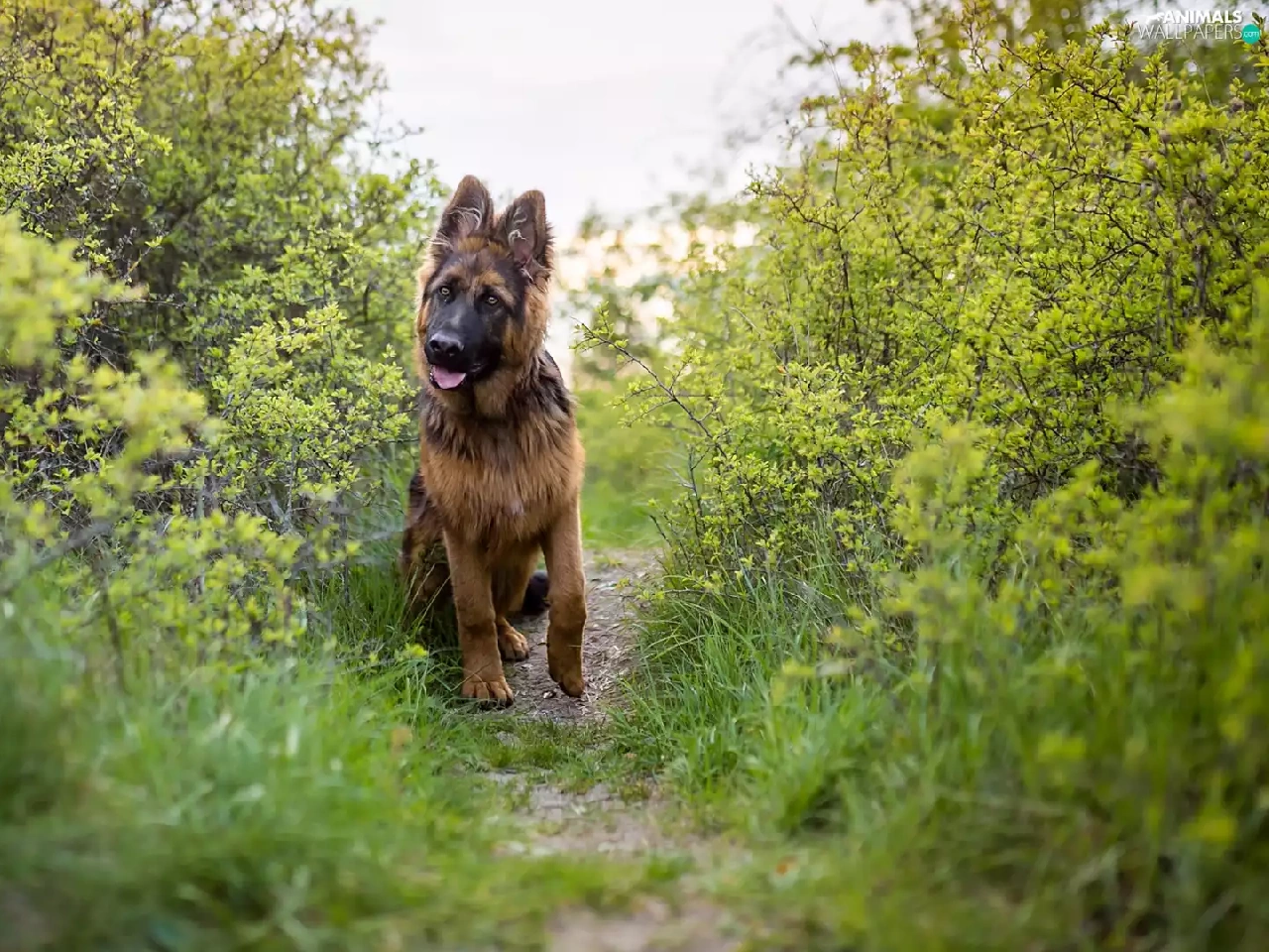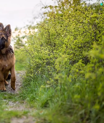 dog, Path, Bush, German Shepherd
