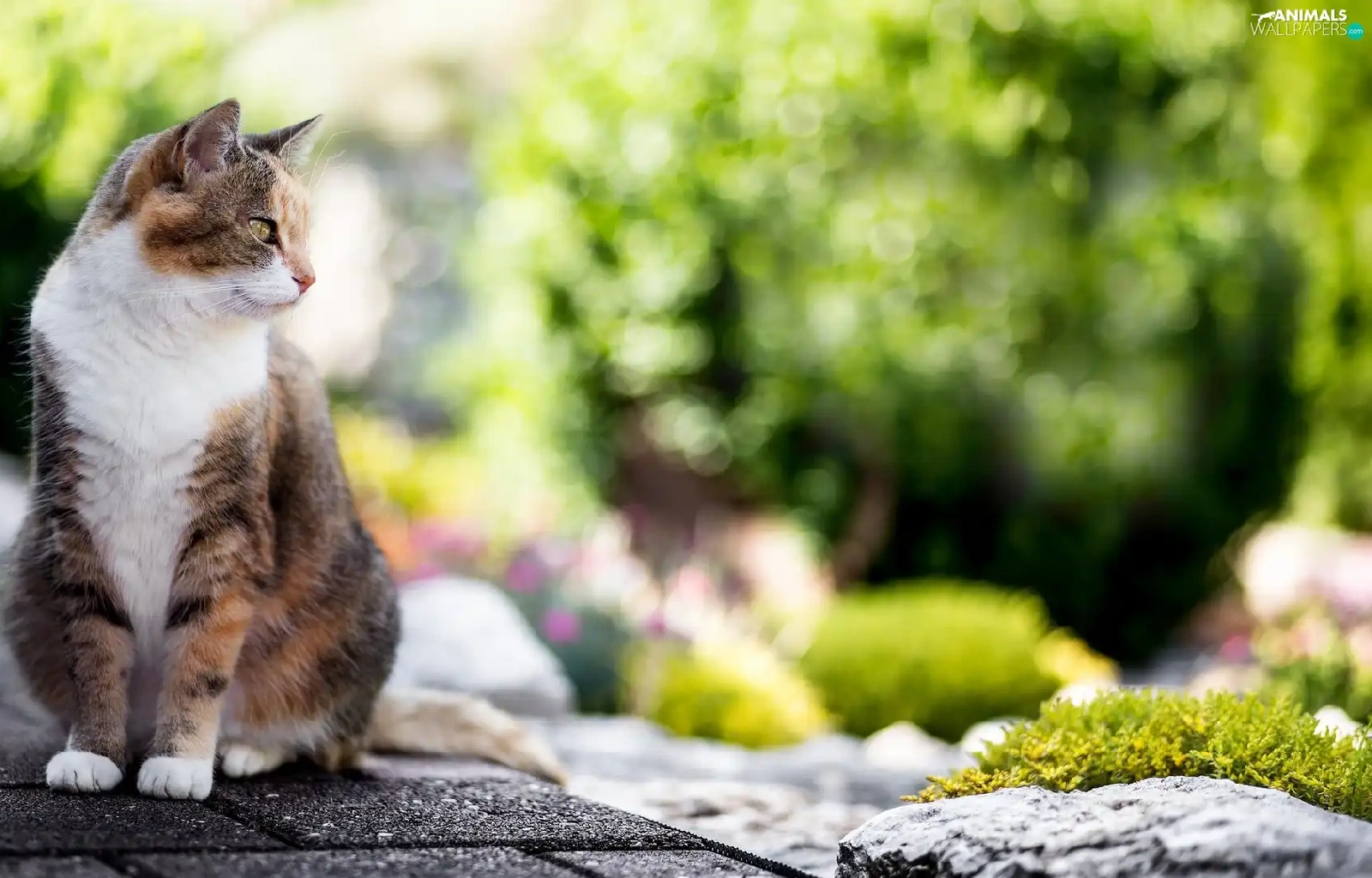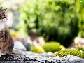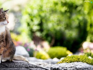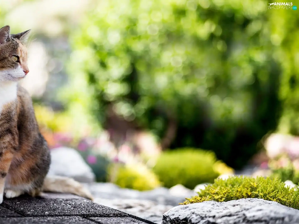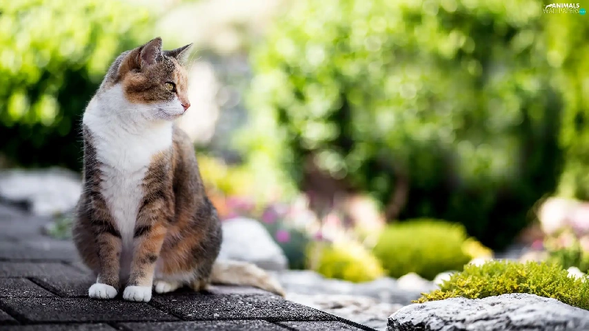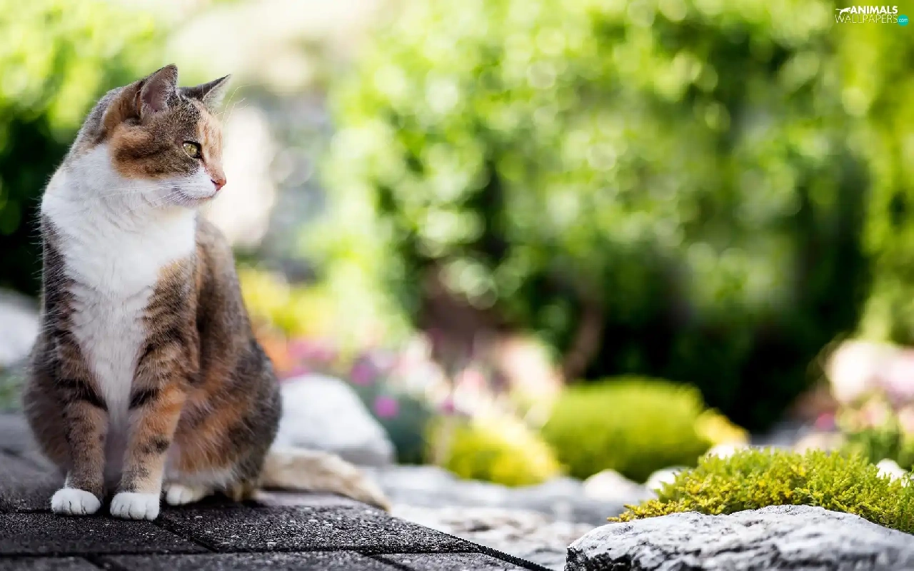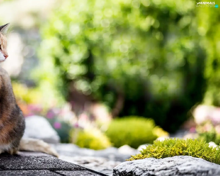 cat, Stone, Bokeh, Pavement