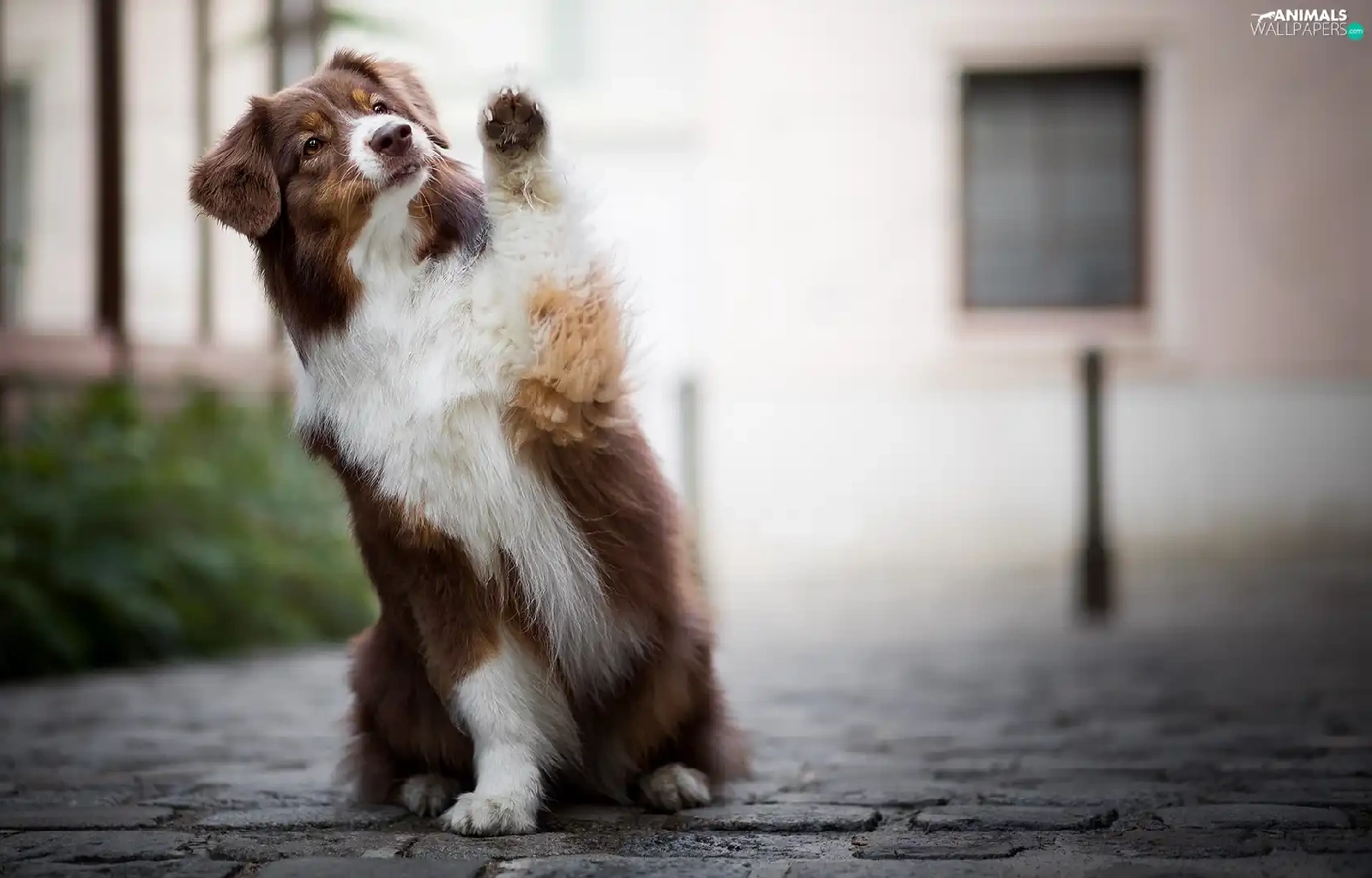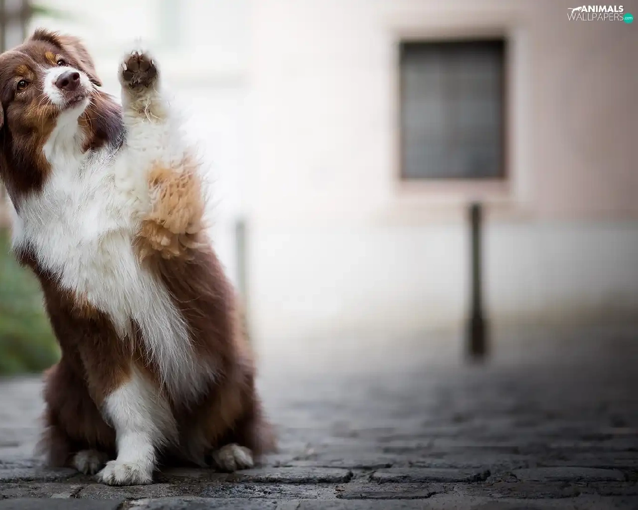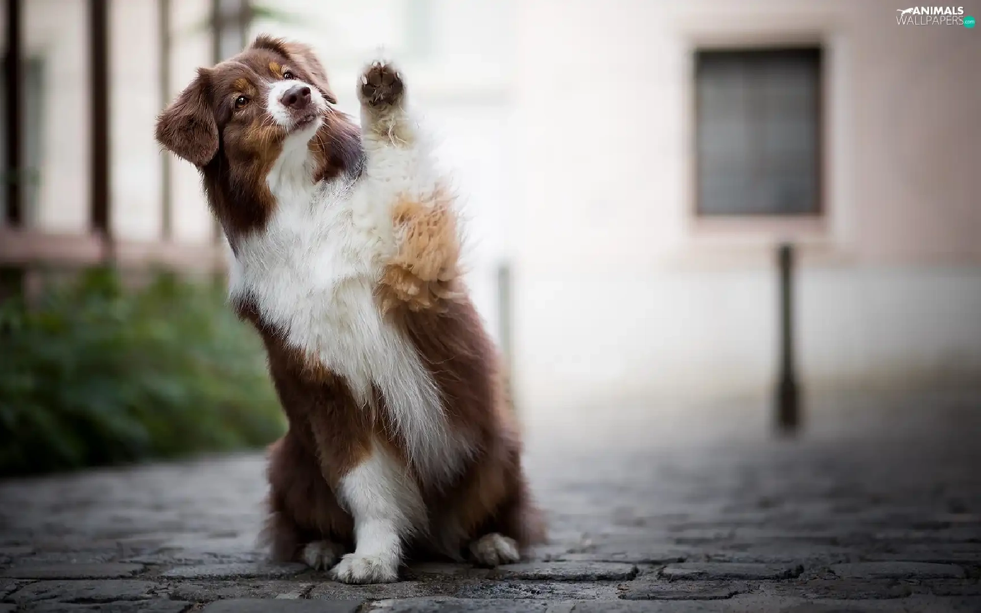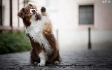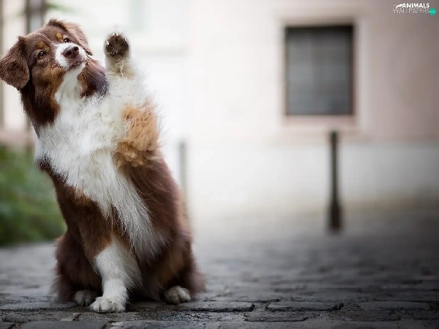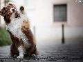 dog, Australian Shepherd, Pavement, Brown and white