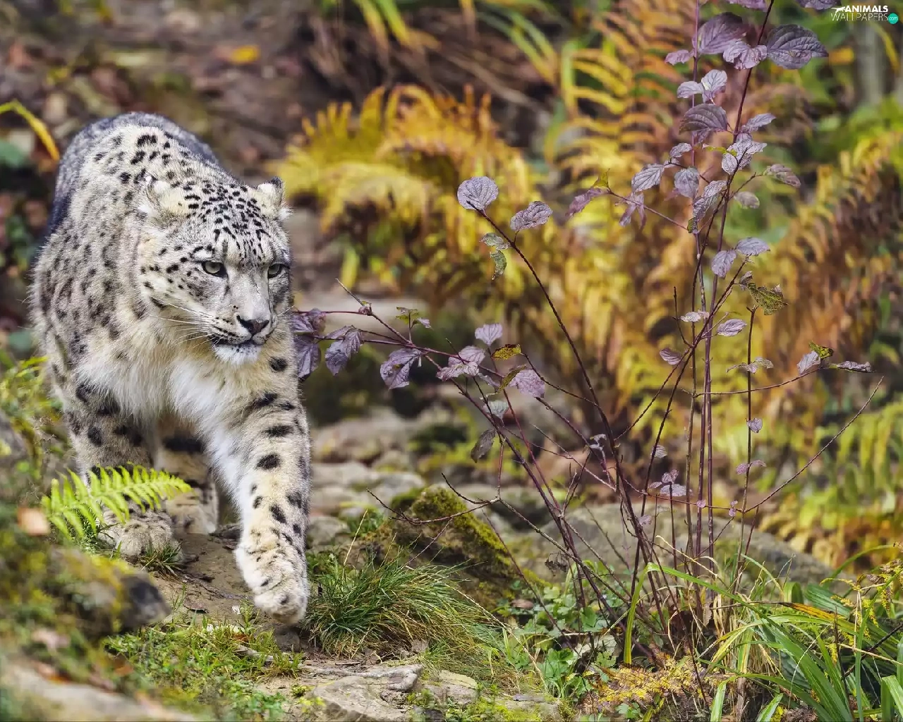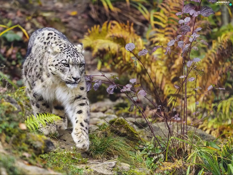 Plants, snow leopard, paw