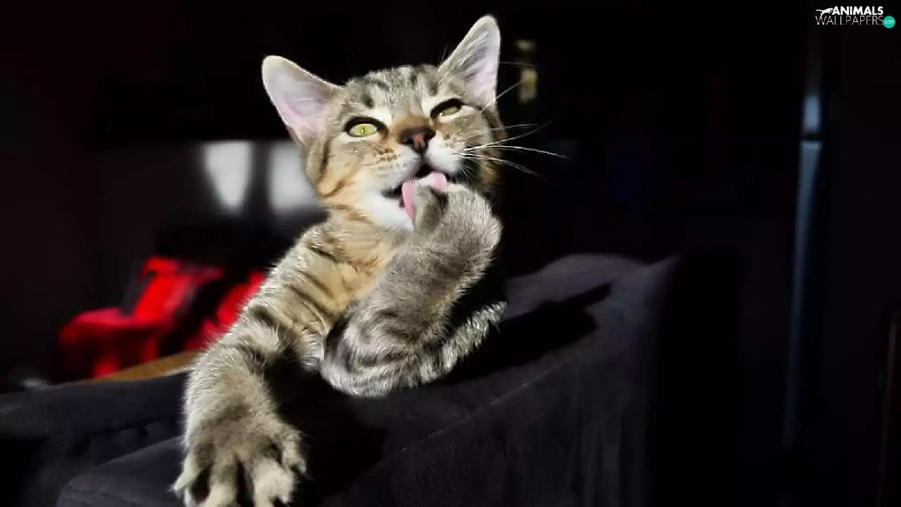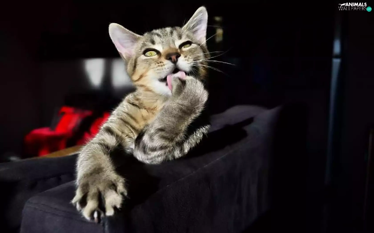 paw, cat, Sofa