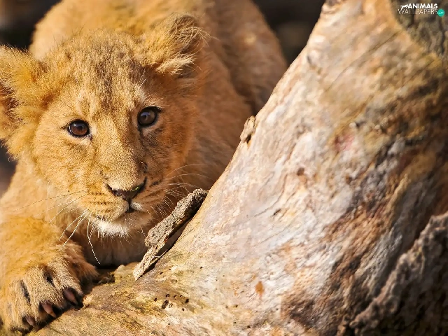 paw, lion, trees