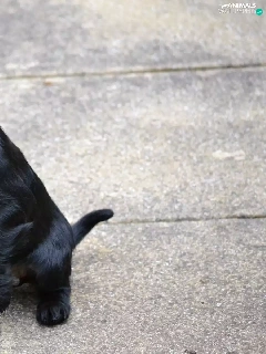 raised, paw, young, Black, dog
