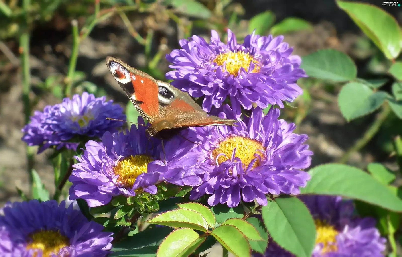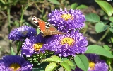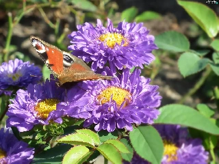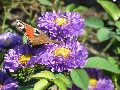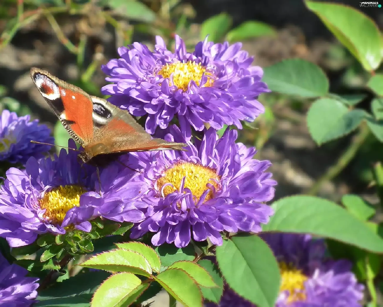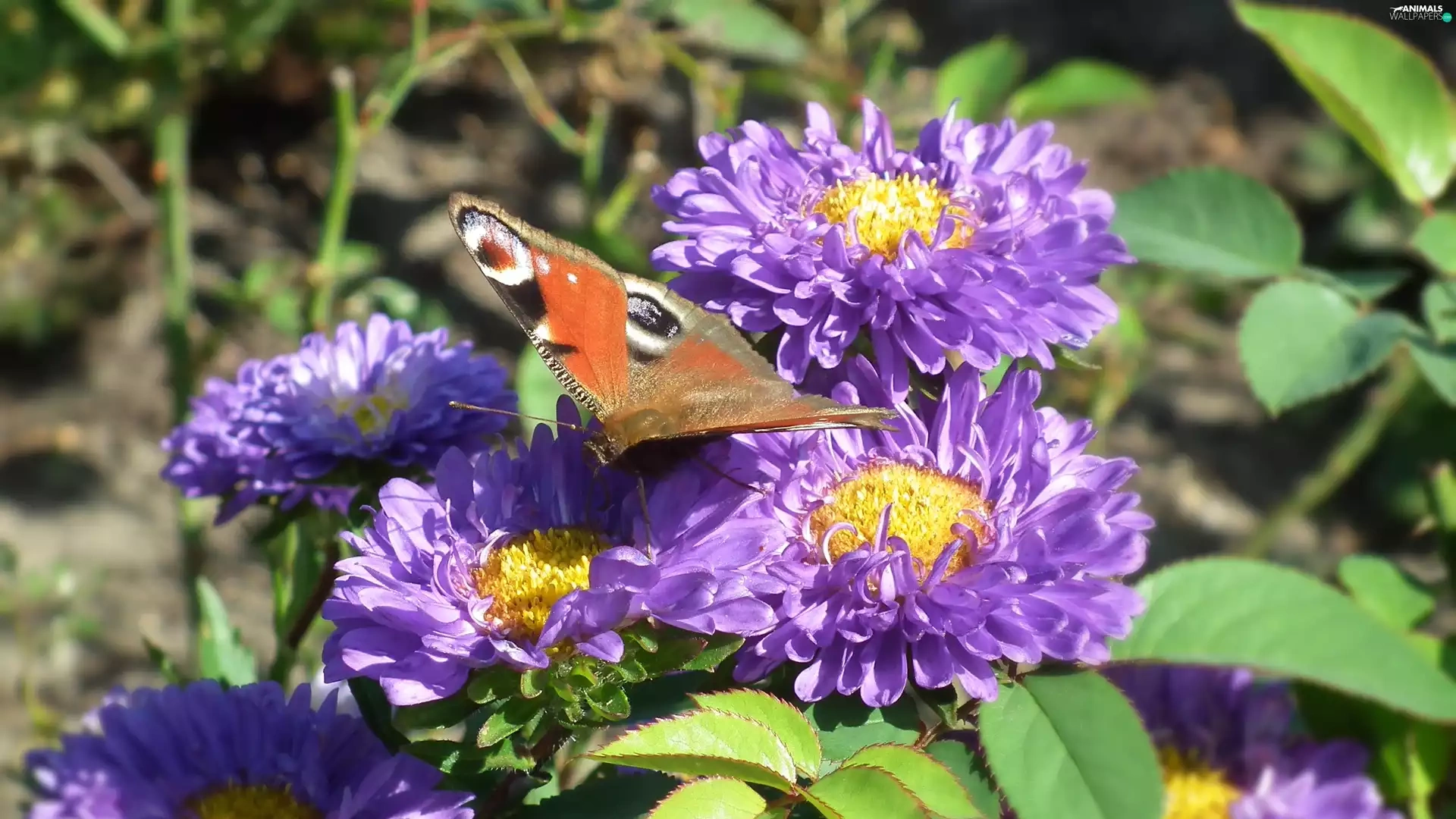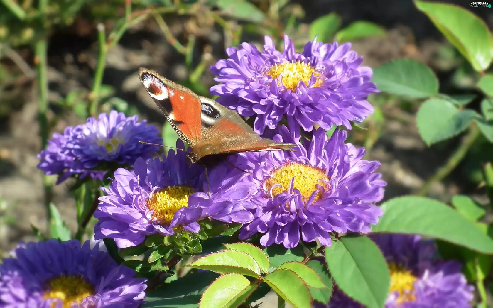 butterfly, Flowers, Astra, Peacock