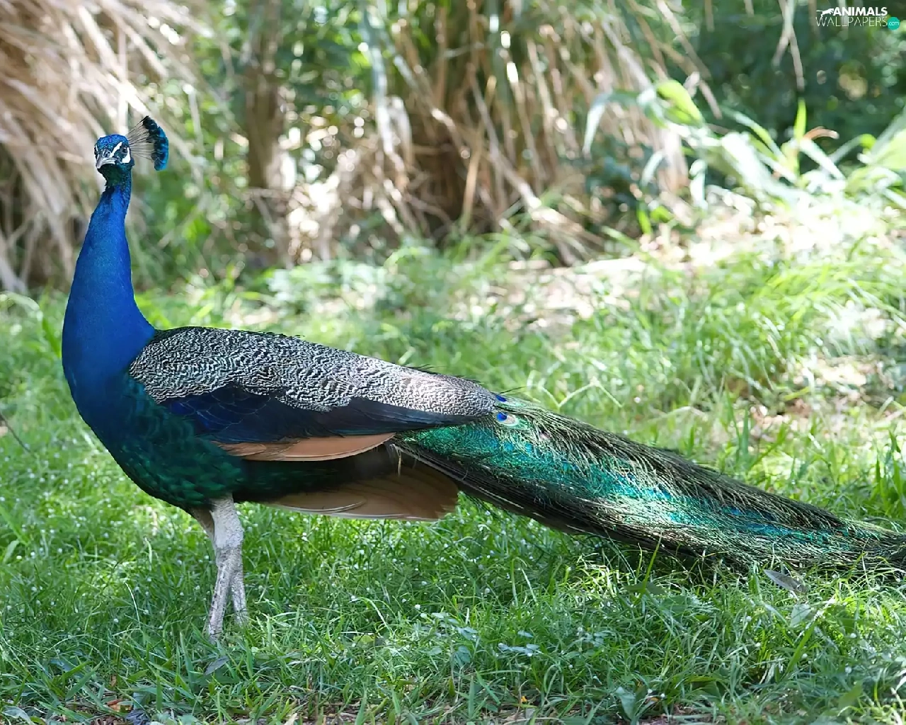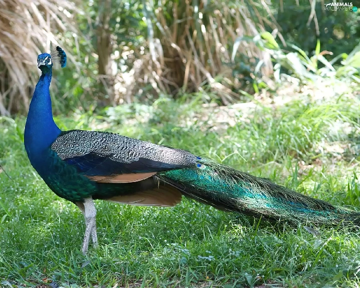 peacock, grass