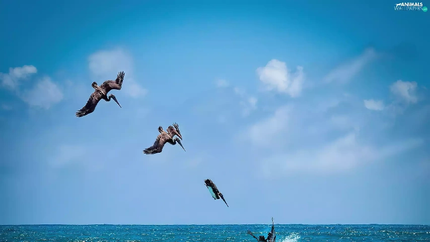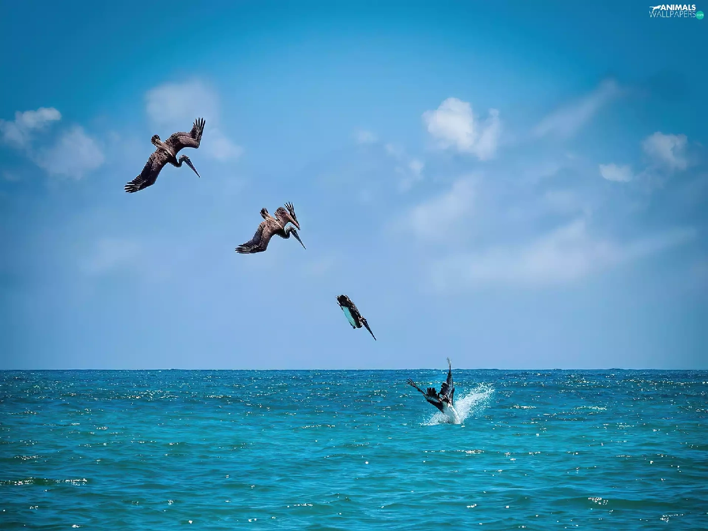 pelicans, sea
