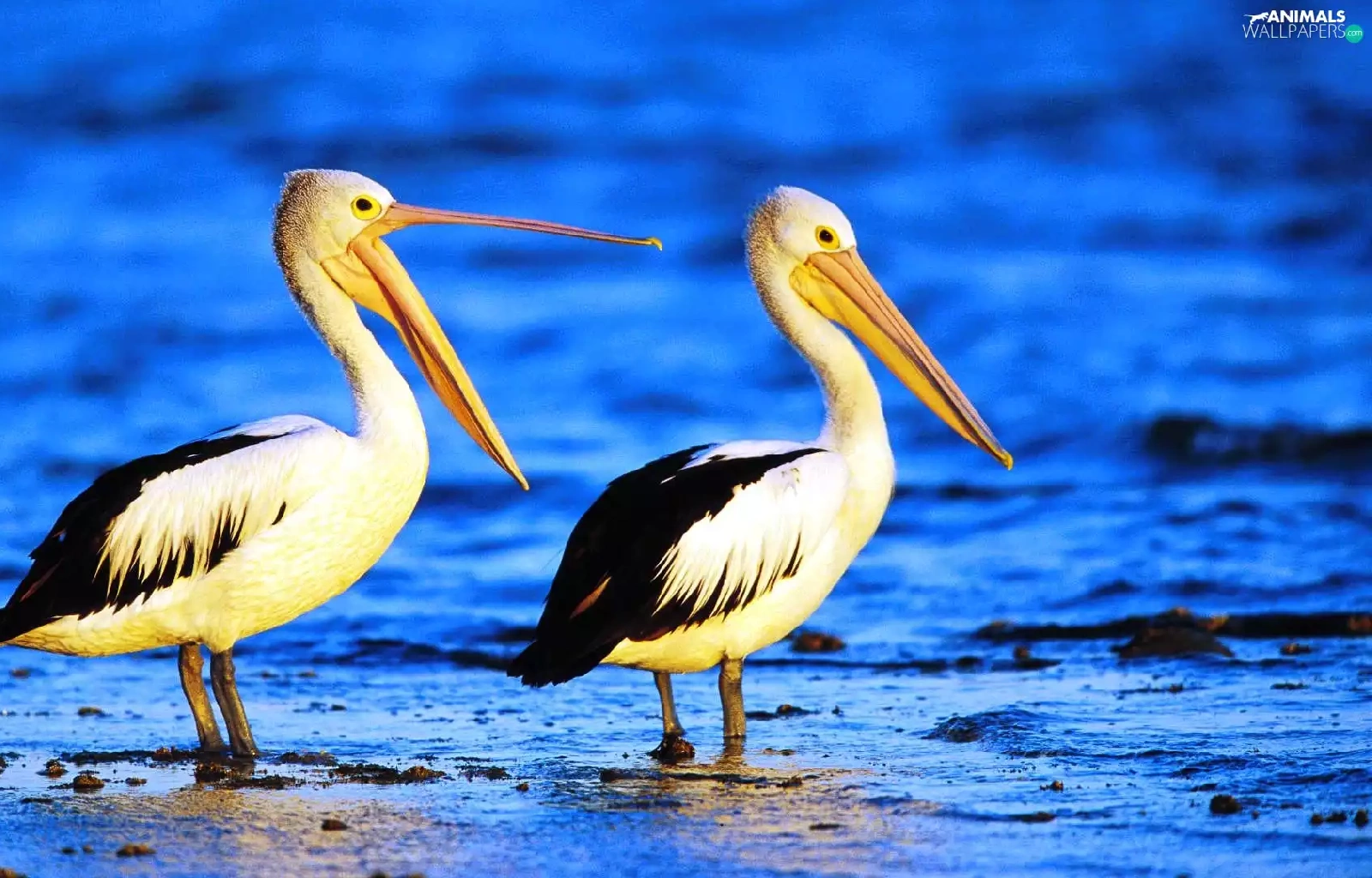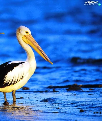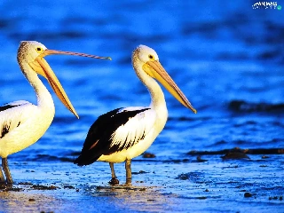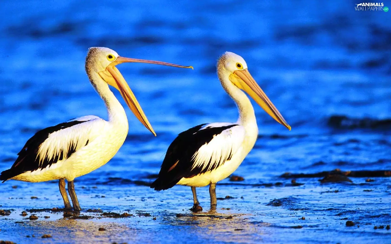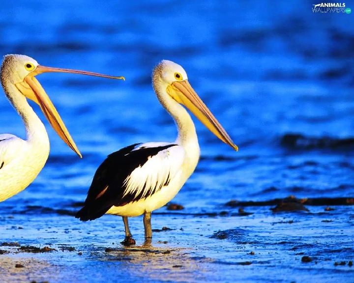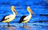 pelicans, water