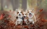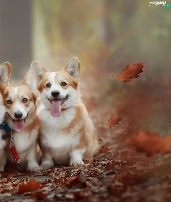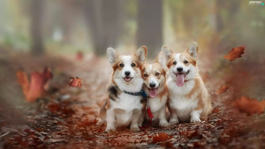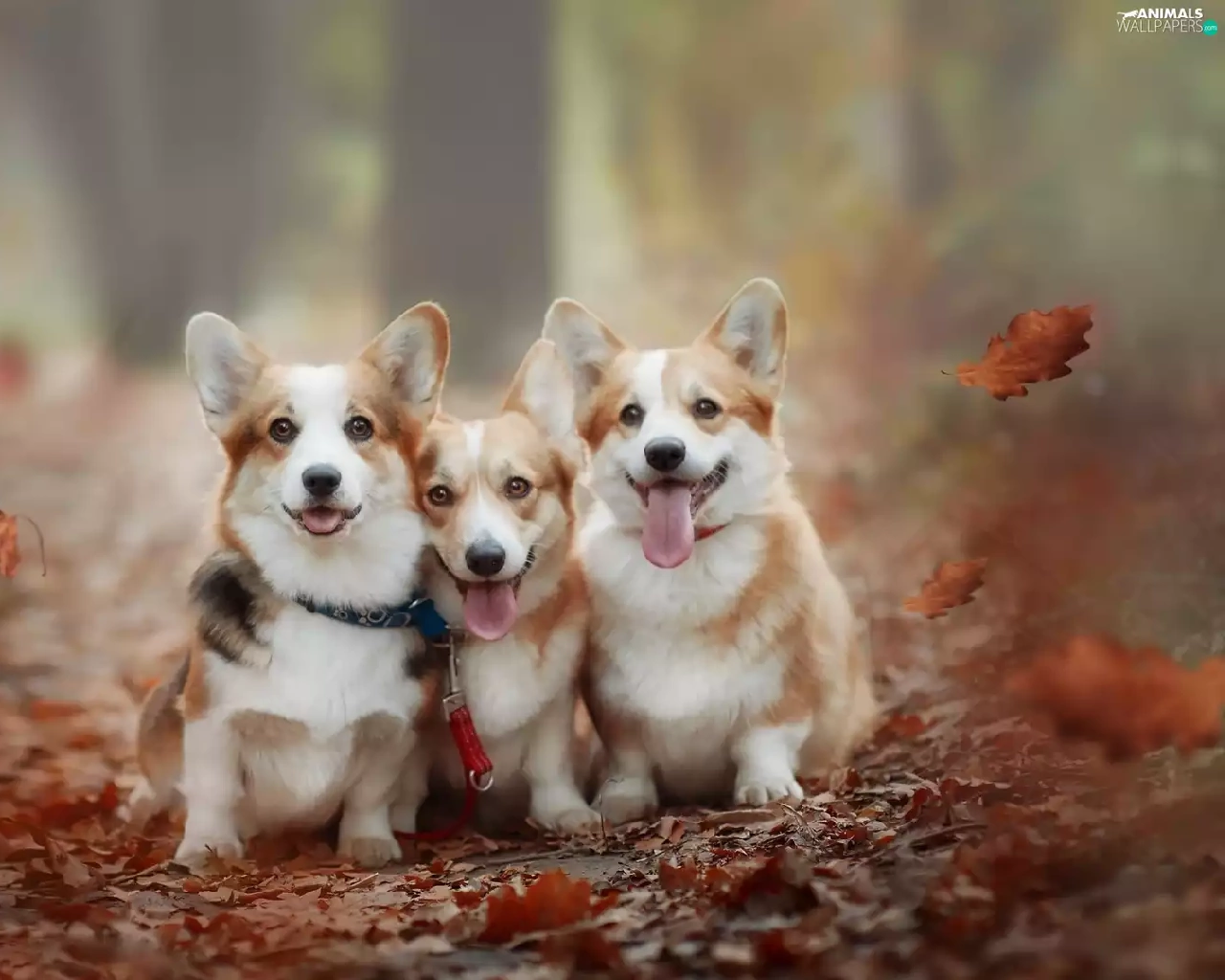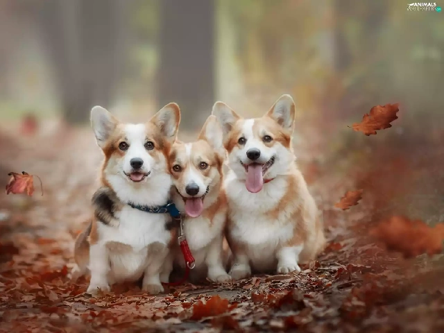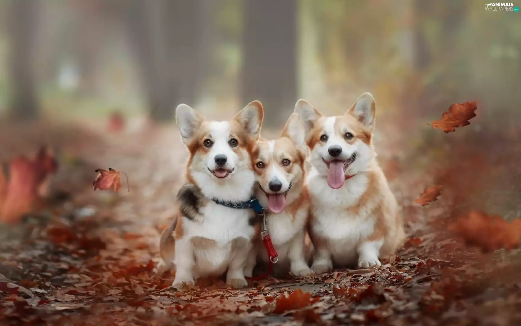 Three, Welsh corgi pembroke, Leaf, Dogs