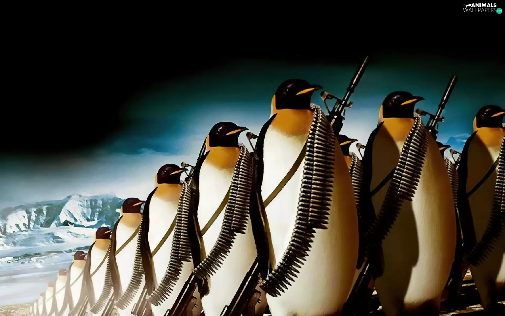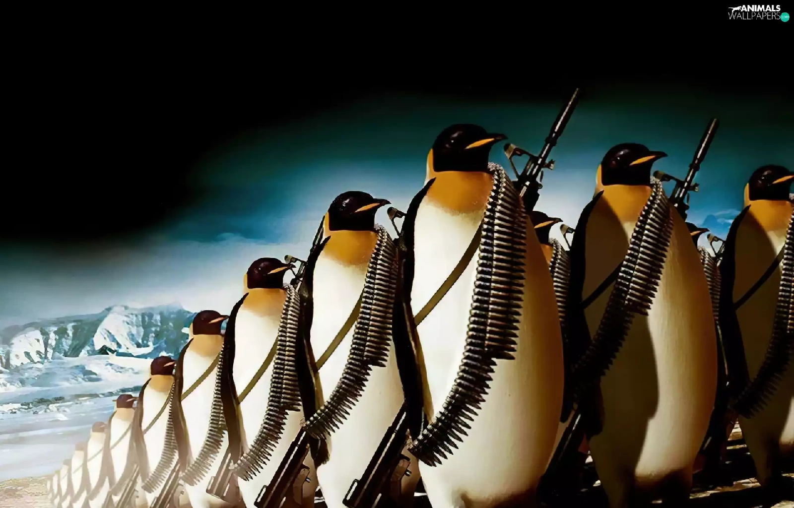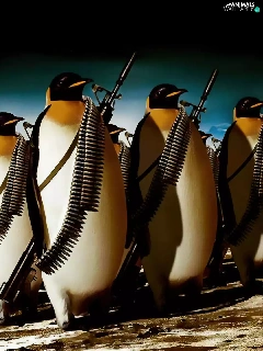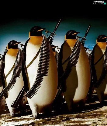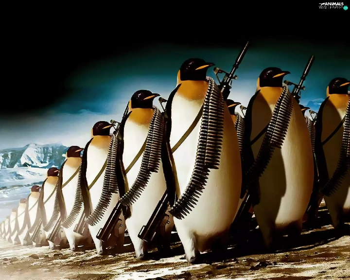 penguin, marching, armed