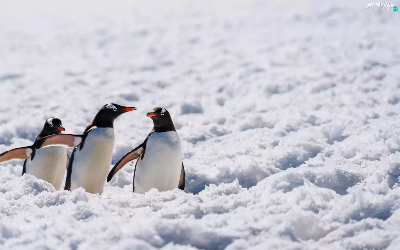 snow, Antarctica, Gentoo penguins