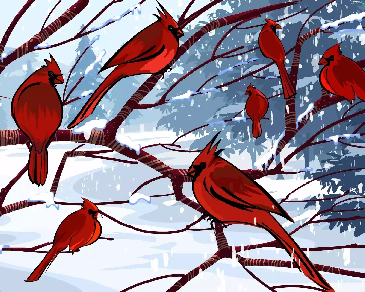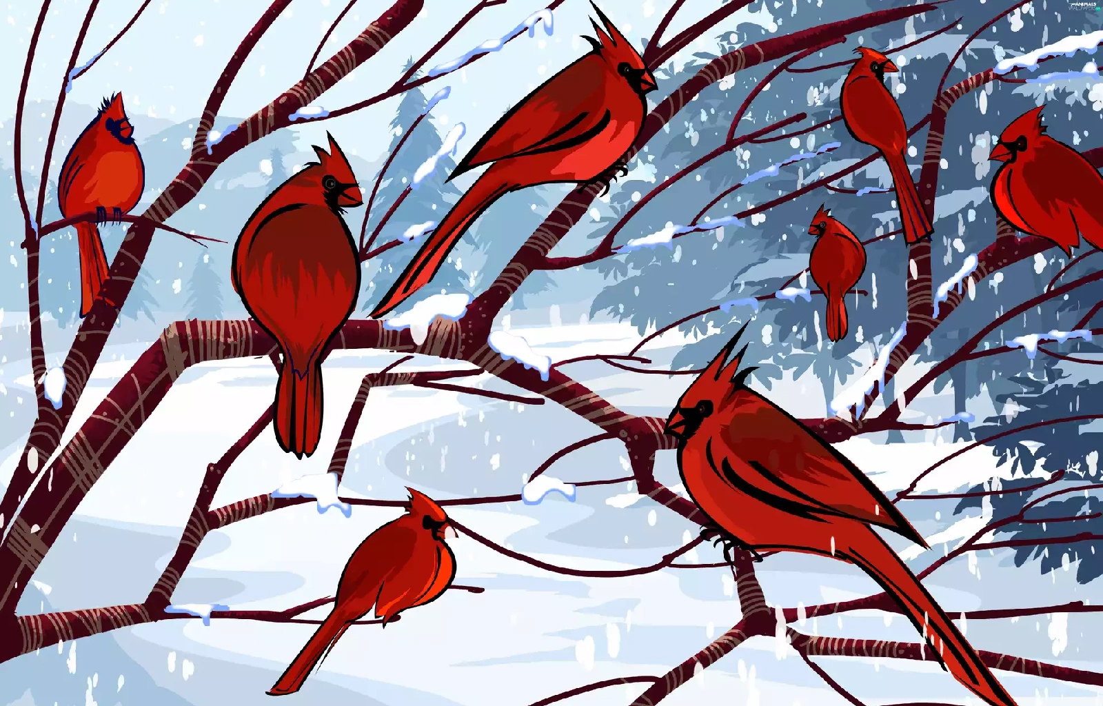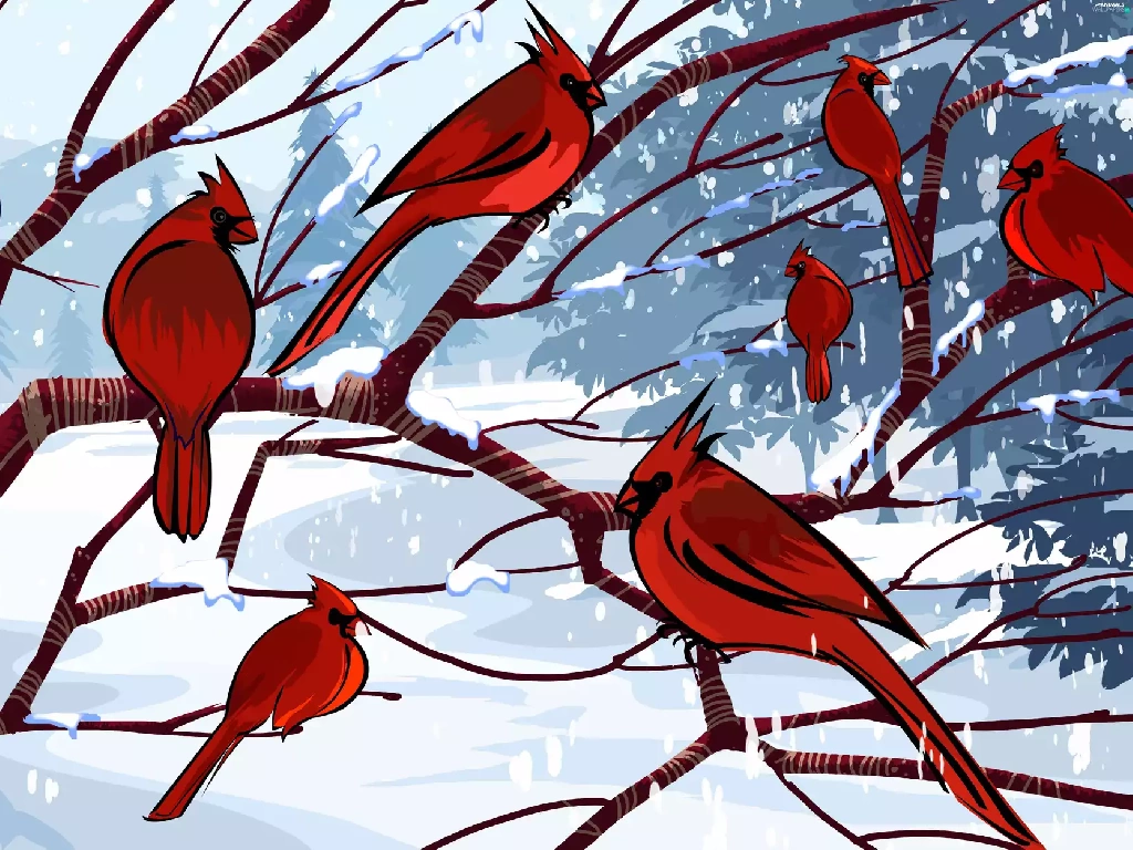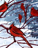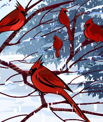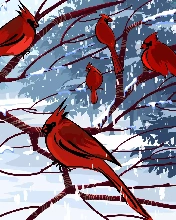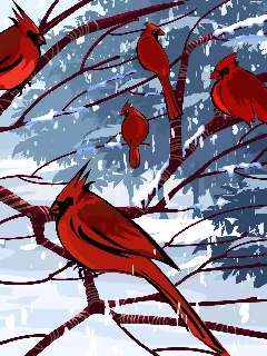 branch pics, Cardinals, winter, birds