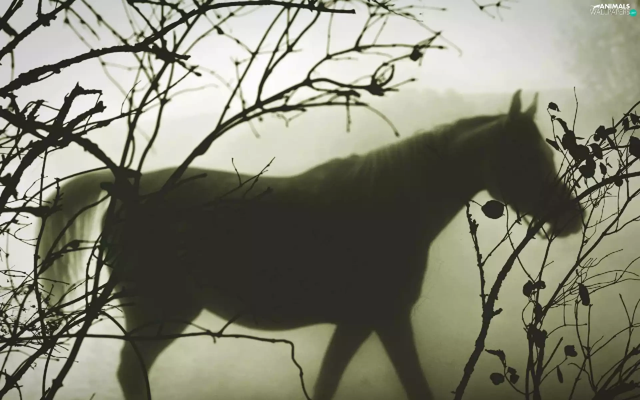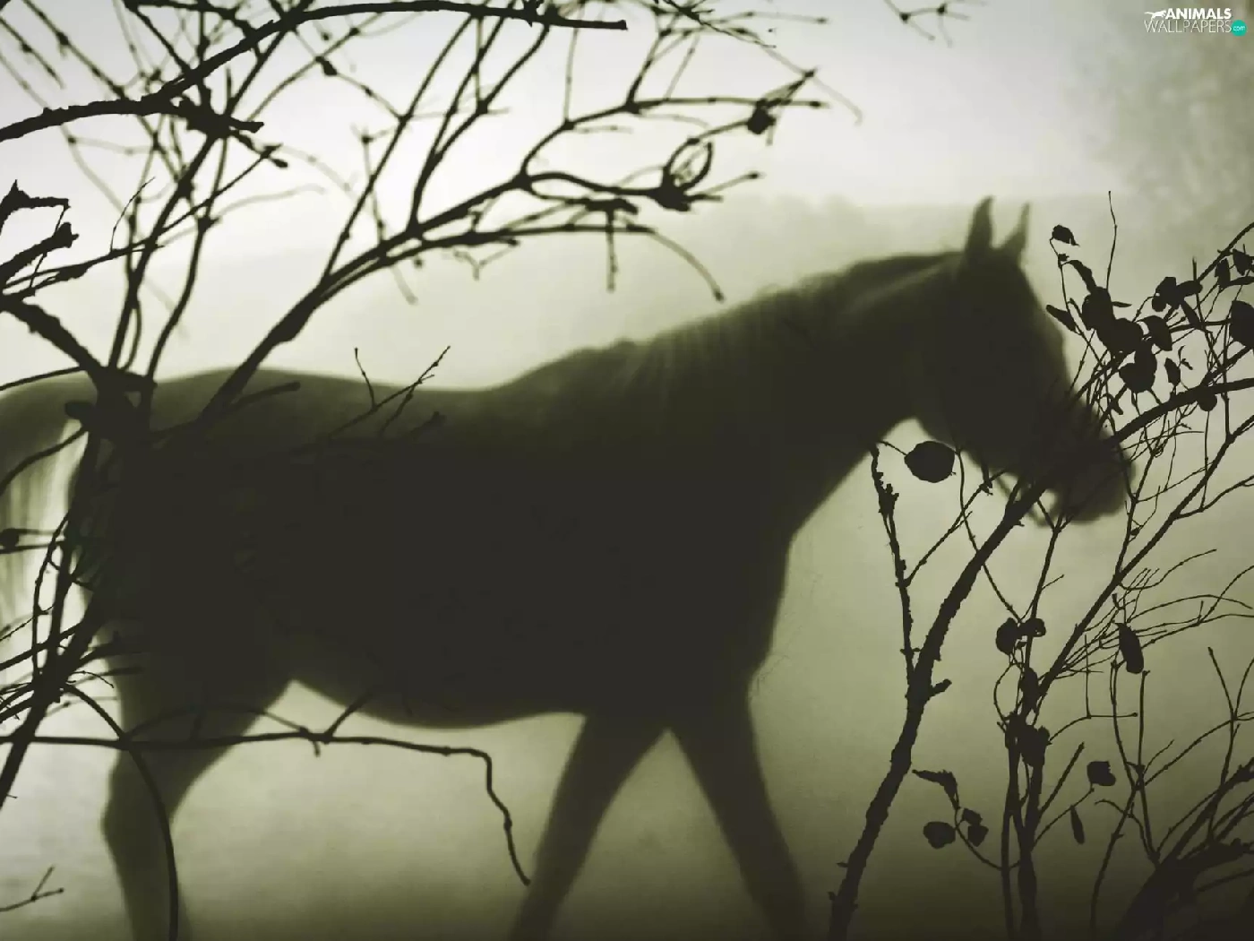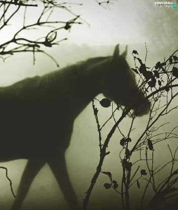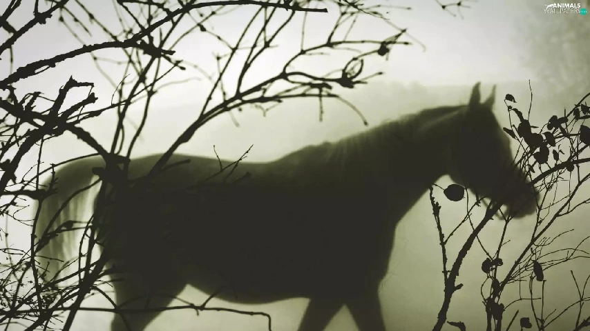 Fog, Horse, branch pics