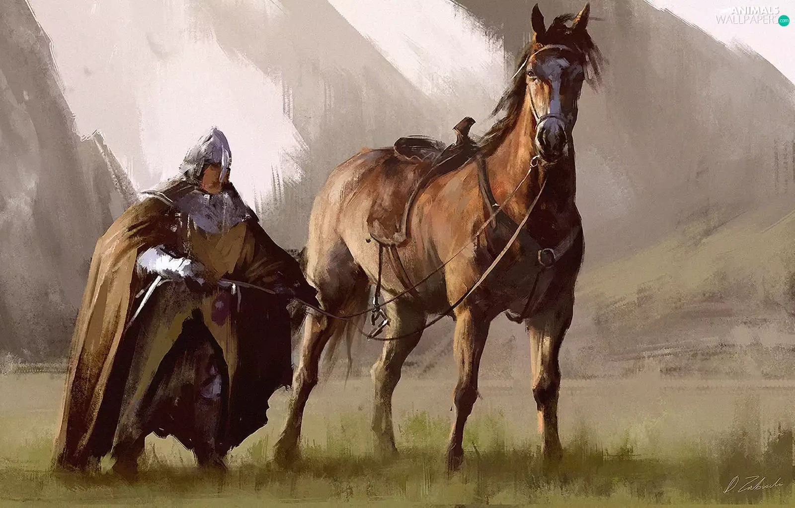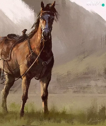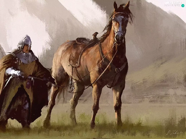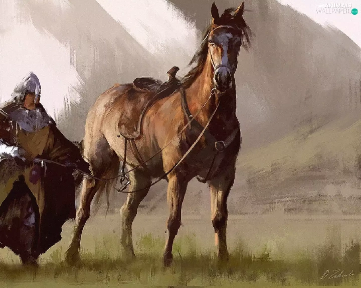 painting, Knight, Horse, picture