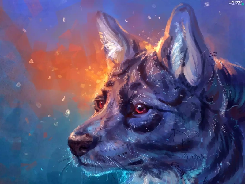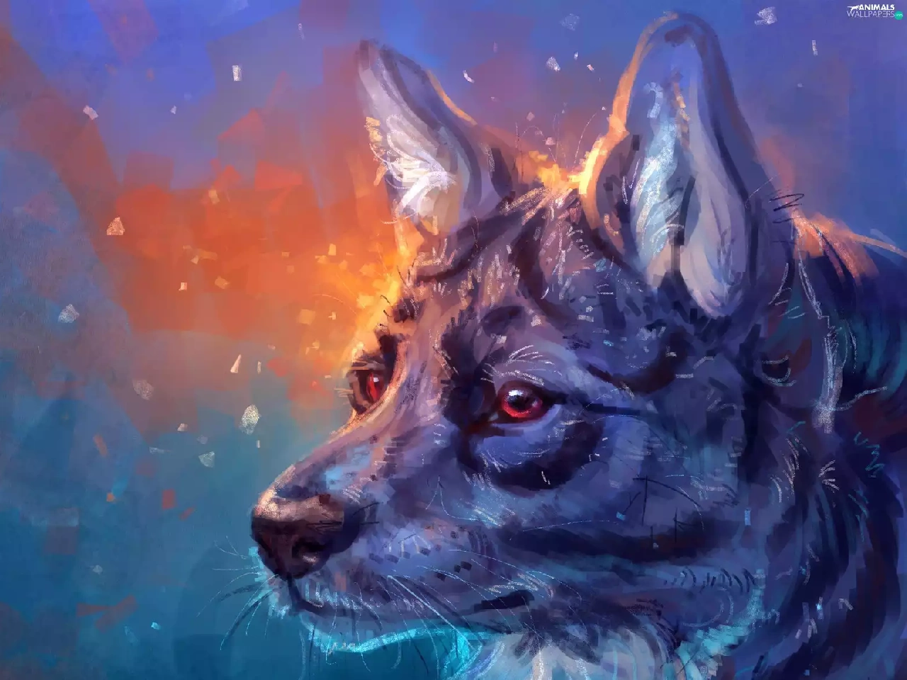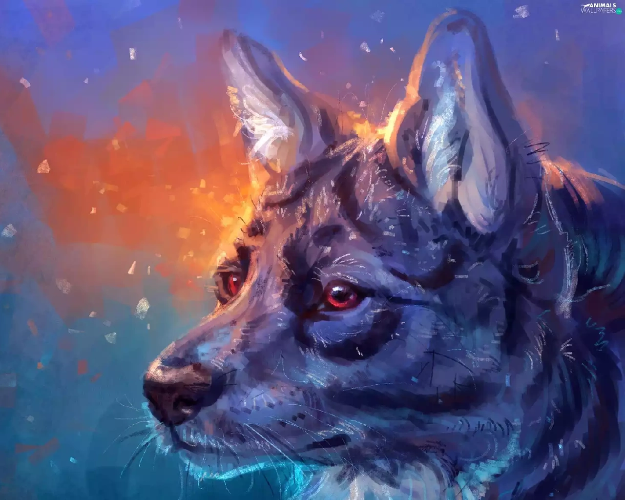 Eyes, picture, Wolf, Red, Head