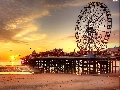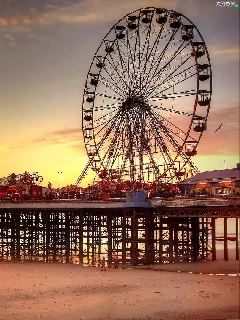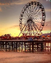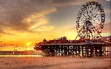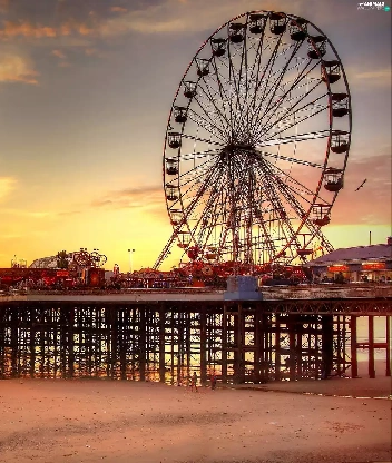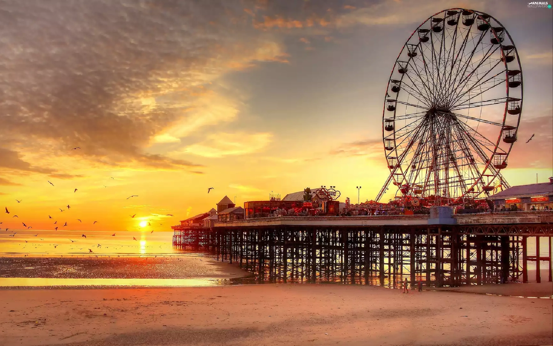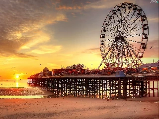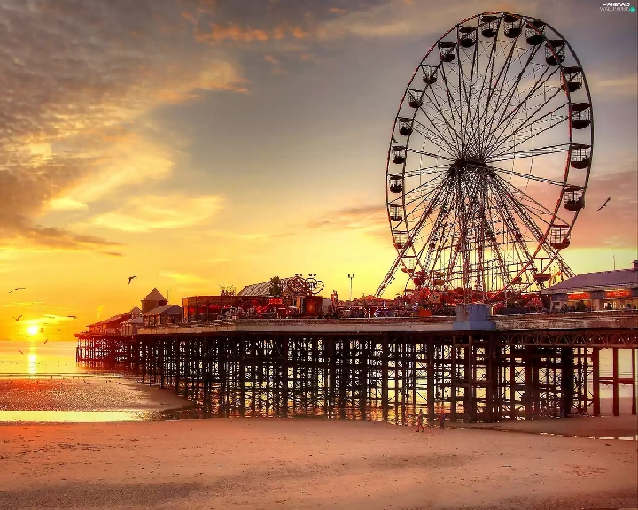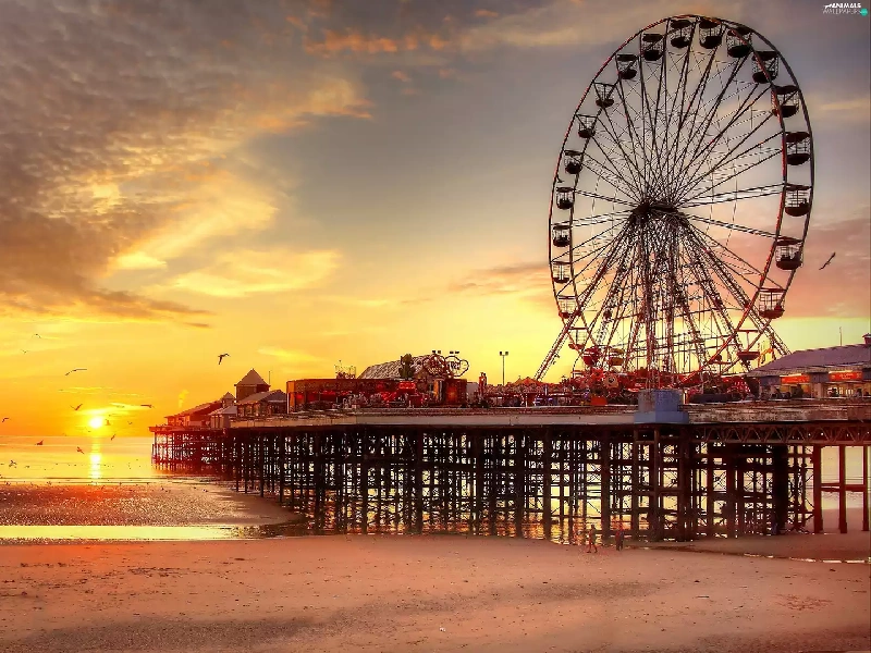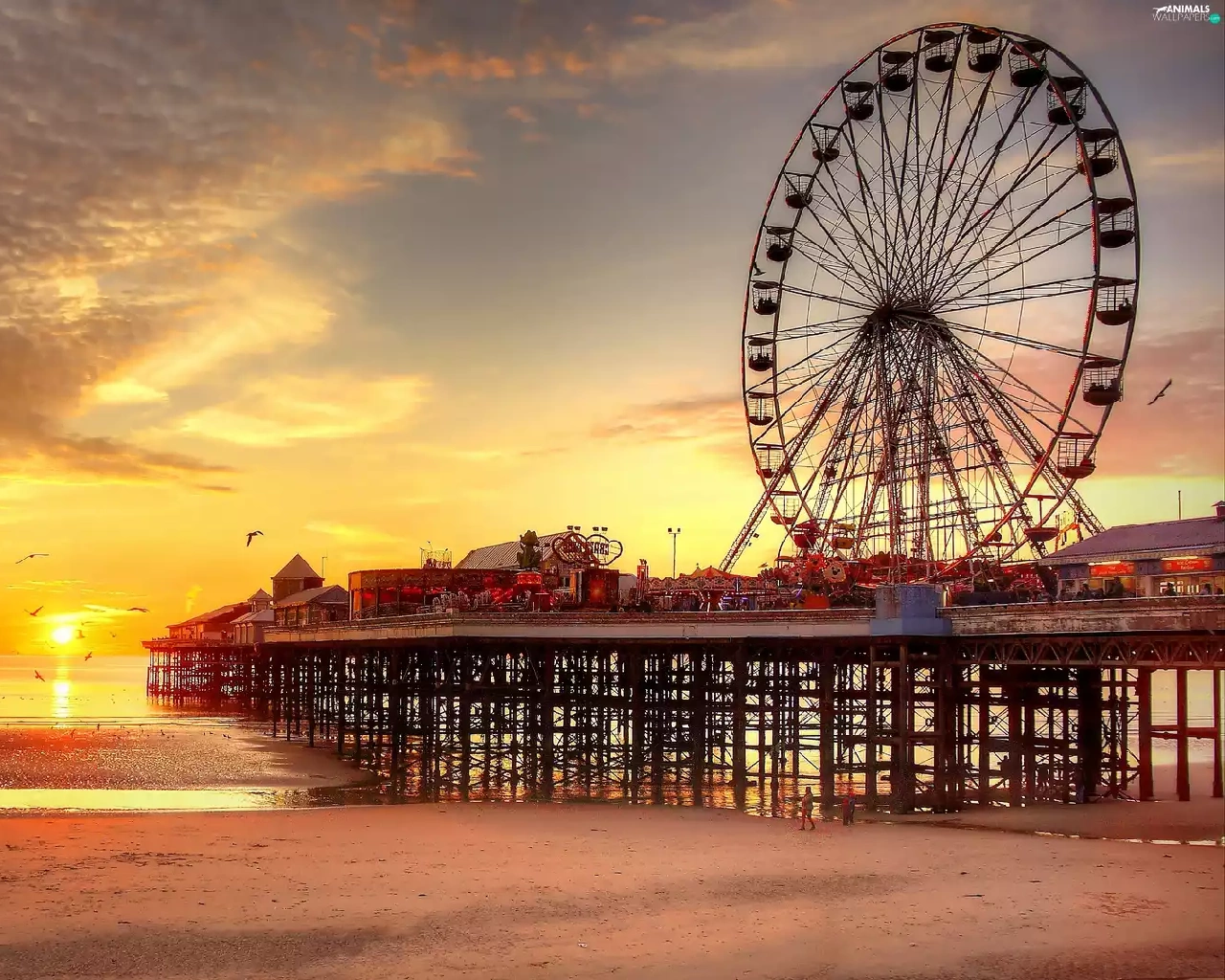 birds, sun, sea, pier, west, Beaches, carousel