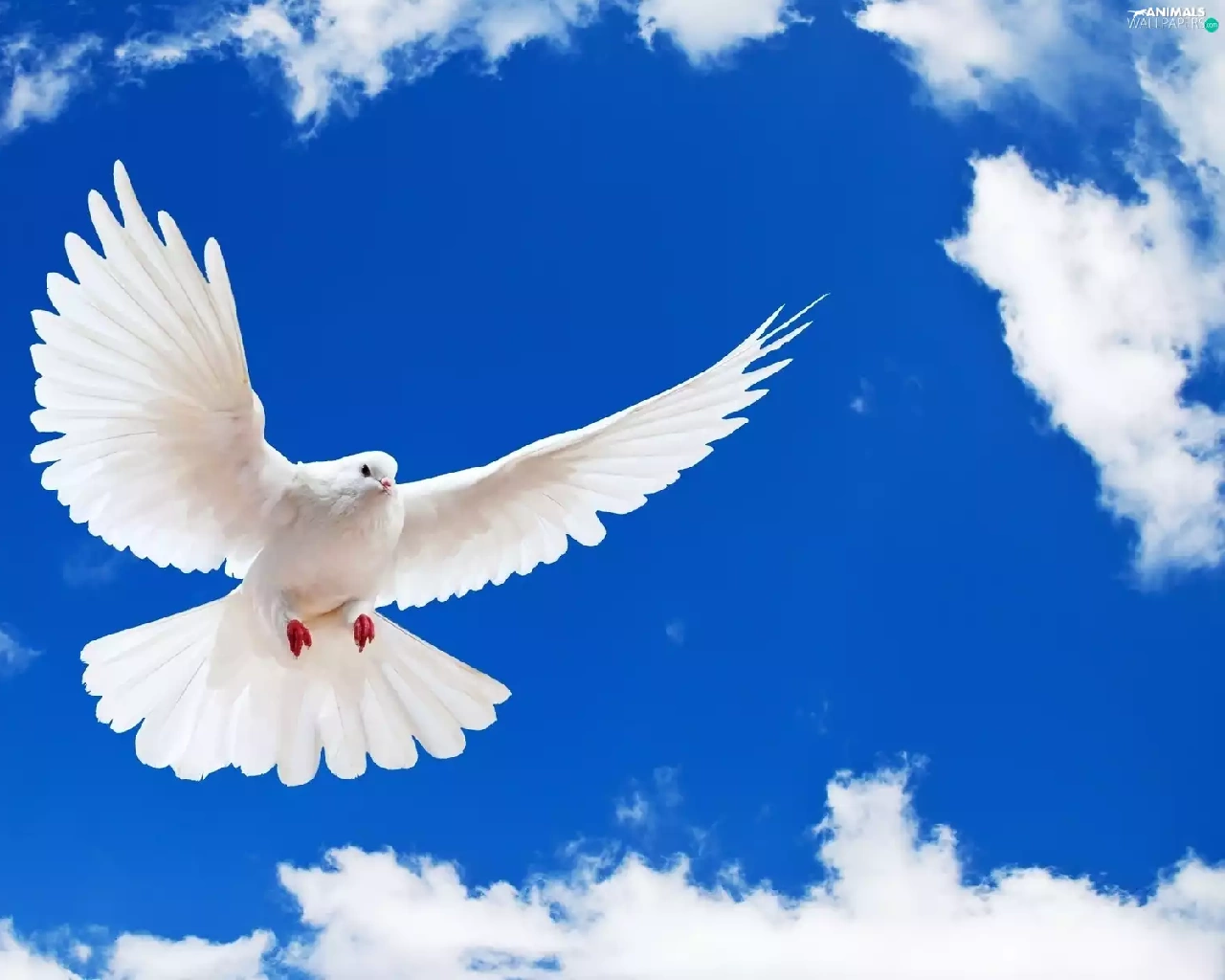 White, Sky, clouds, pigeon
