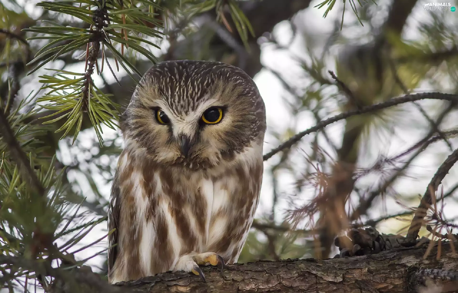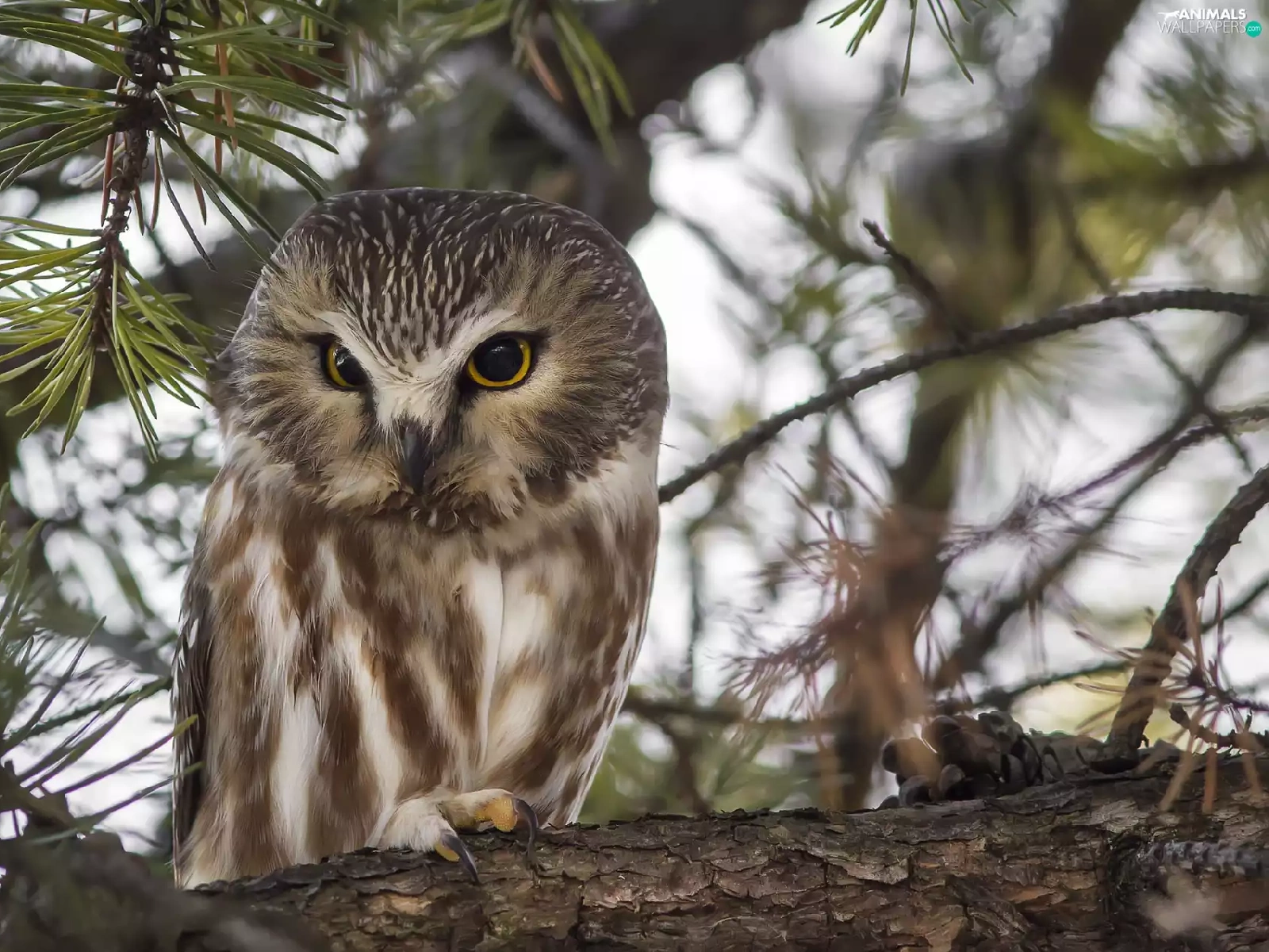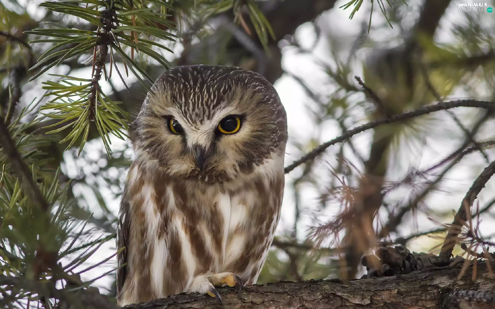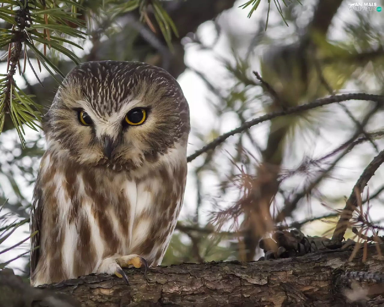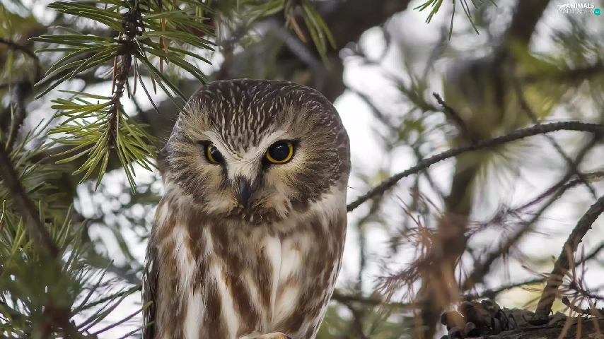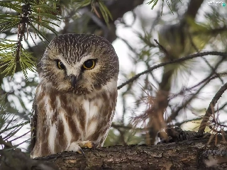 Owl, Bird, trees, pine, branch, owl